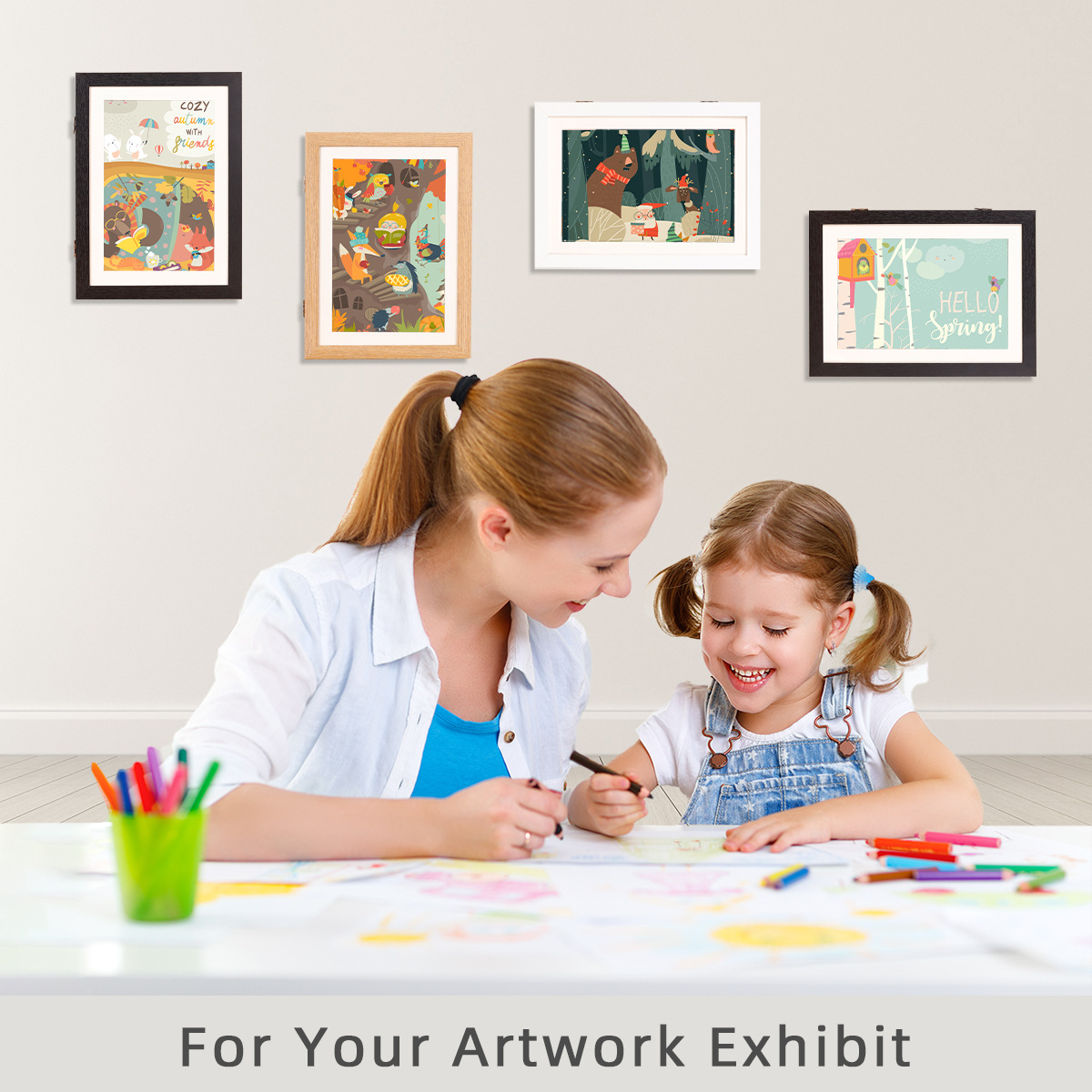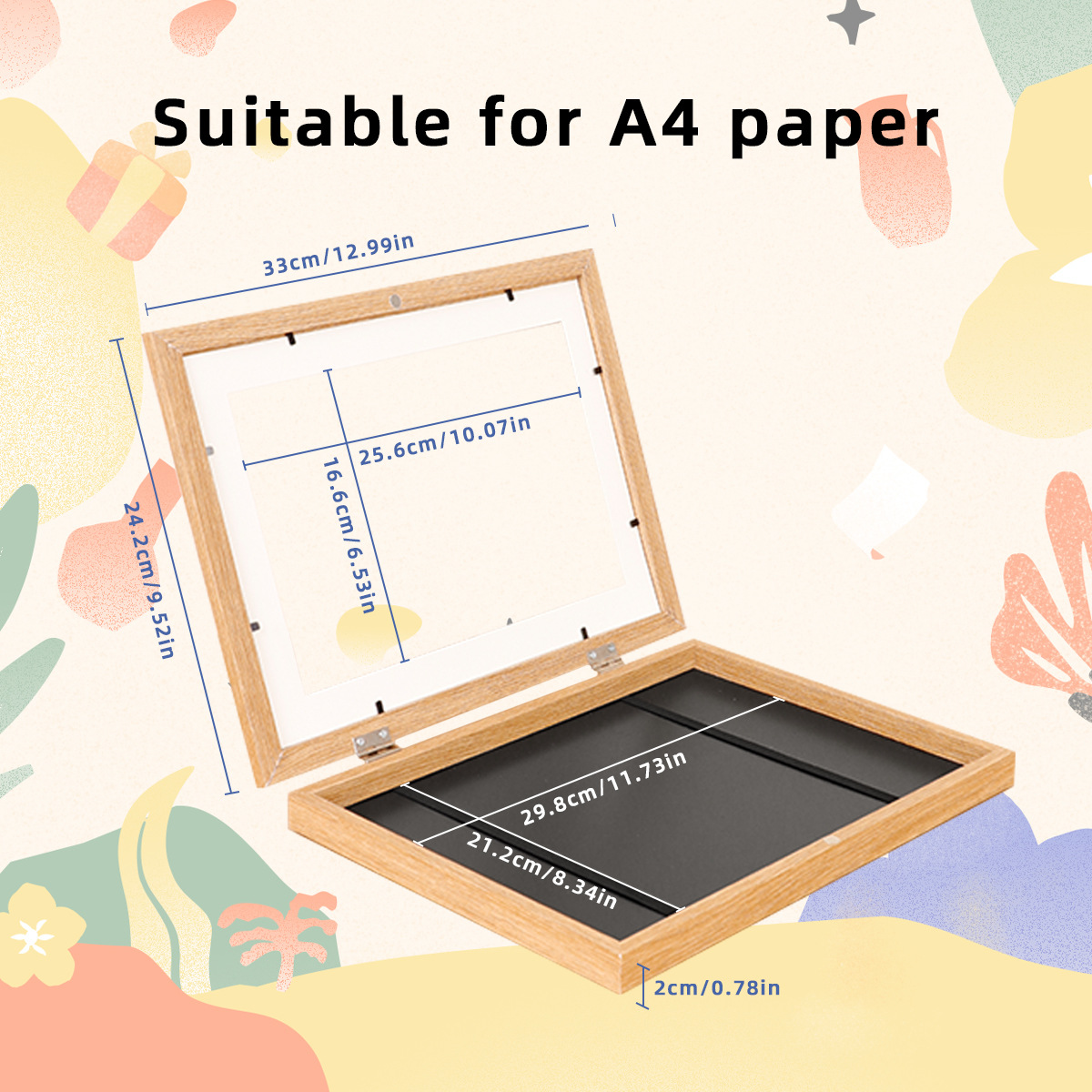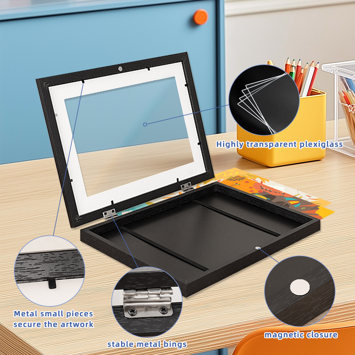 跨境强磁吸A3A4翻盖儿童艺术框艺术作品油画收纳相框可摆可挂创意