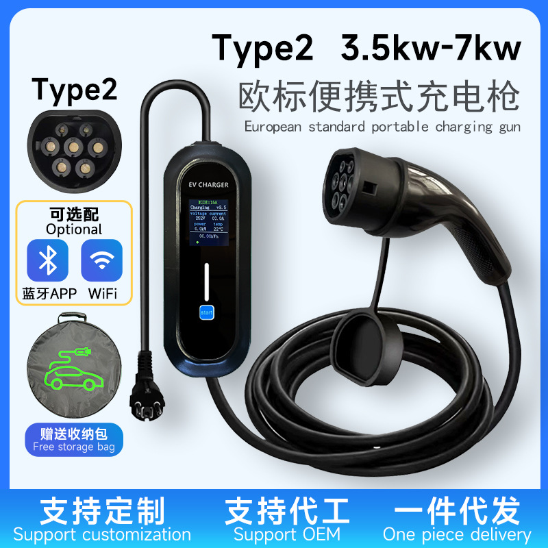 巴西规充电枪葡萄牙语type2 欧标110-220v新能源汽车便携式充电桩
