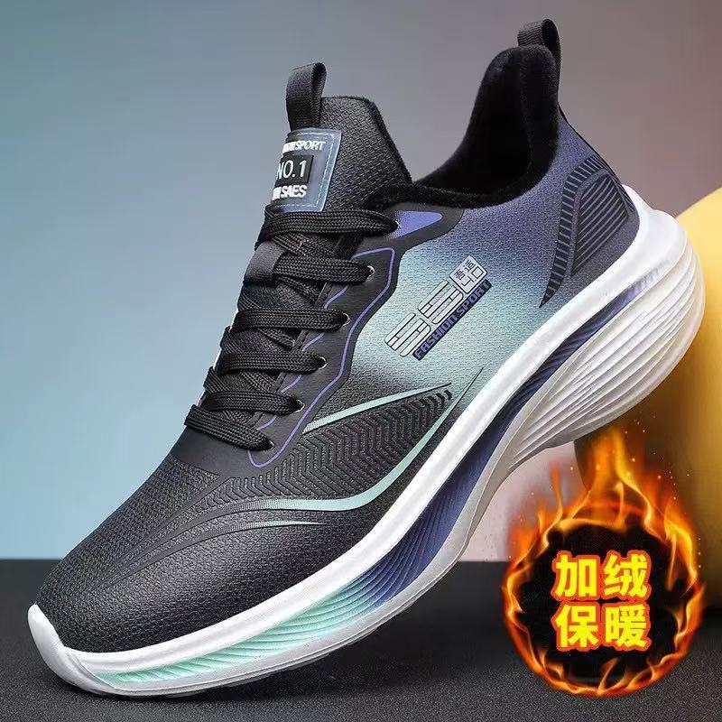 大码男士运动鞋皮面加绒四季款软底舒适轻便跑步鞋耐磨冷粘鞋批发