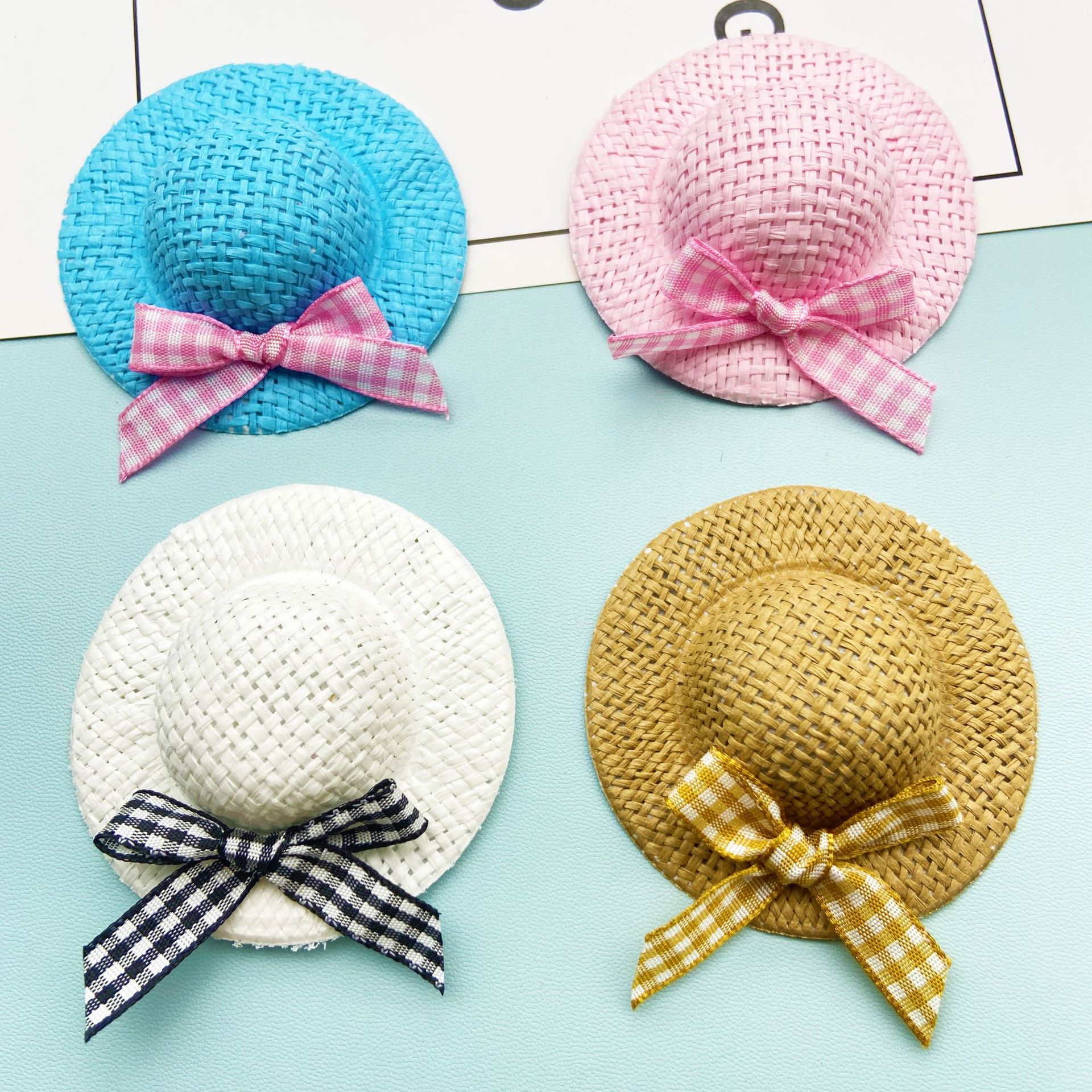 夏日大小编织草帽蝴蝶结饰品配件diy玩偶玩具装饰小黄鸭配饰批发