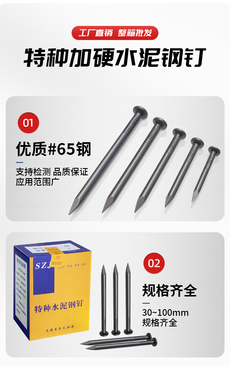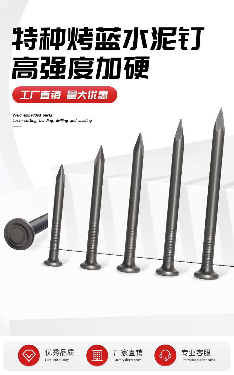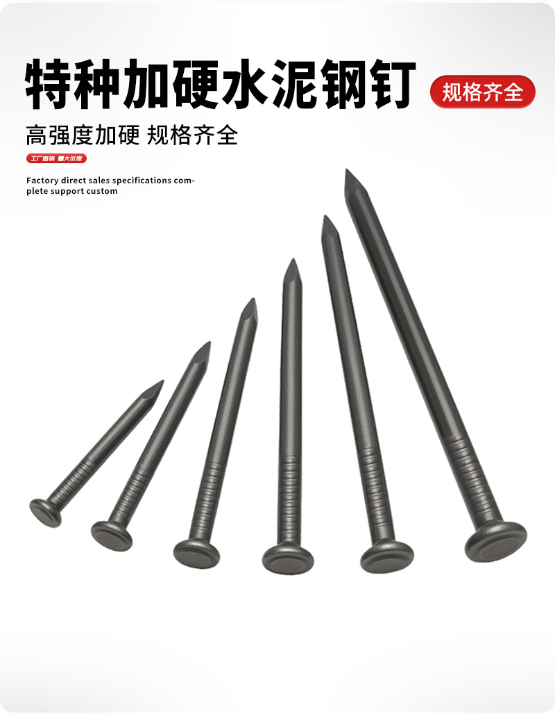 特种水泥钢钉65钢高强度黑色水泥钢钉加硬混凝土铁钉圆钉木工洋钉