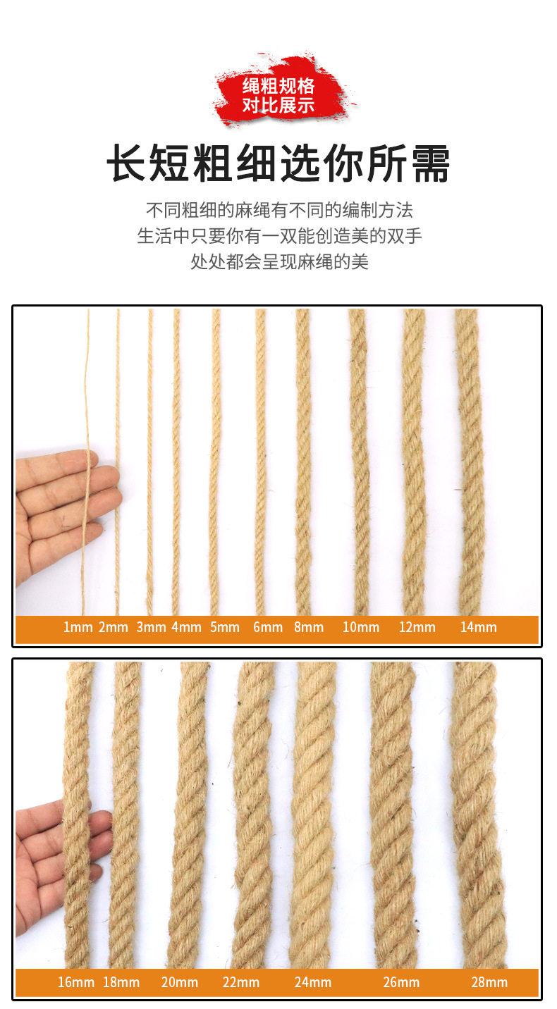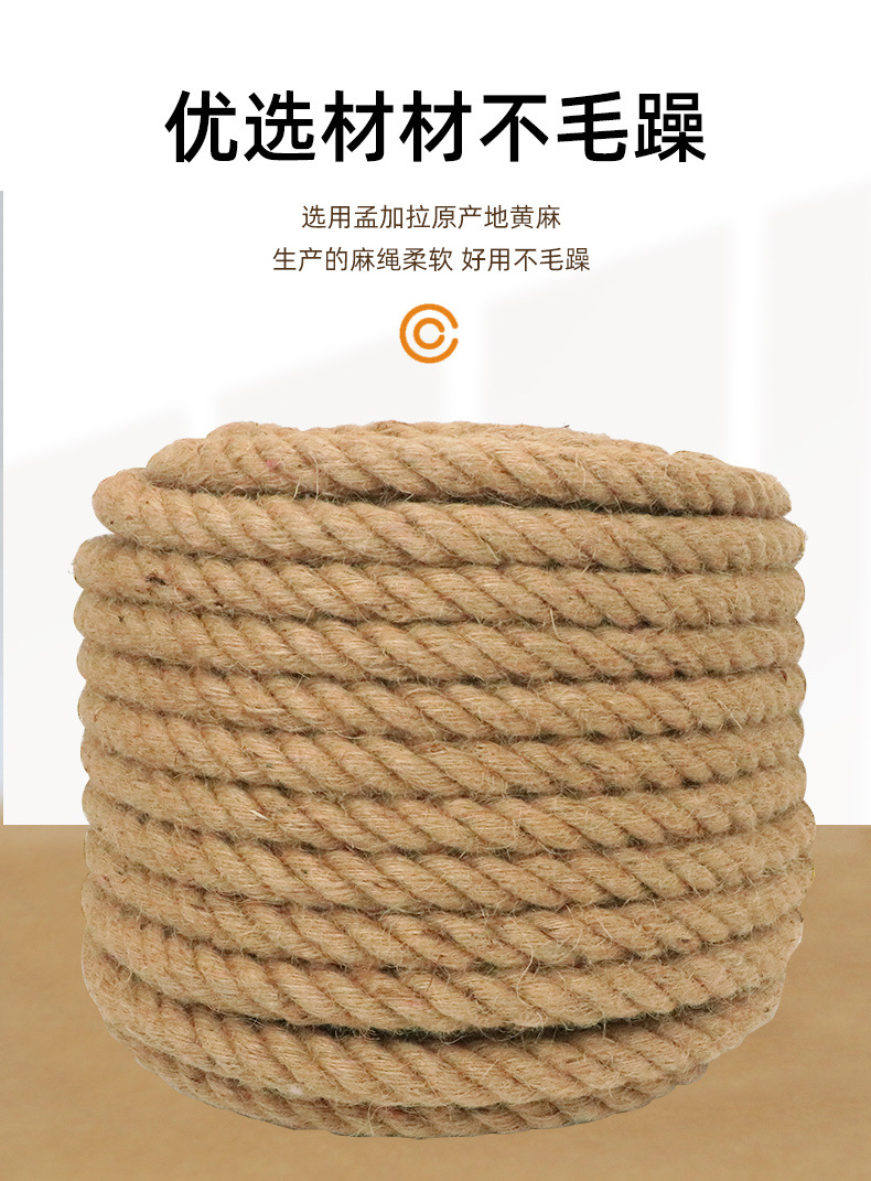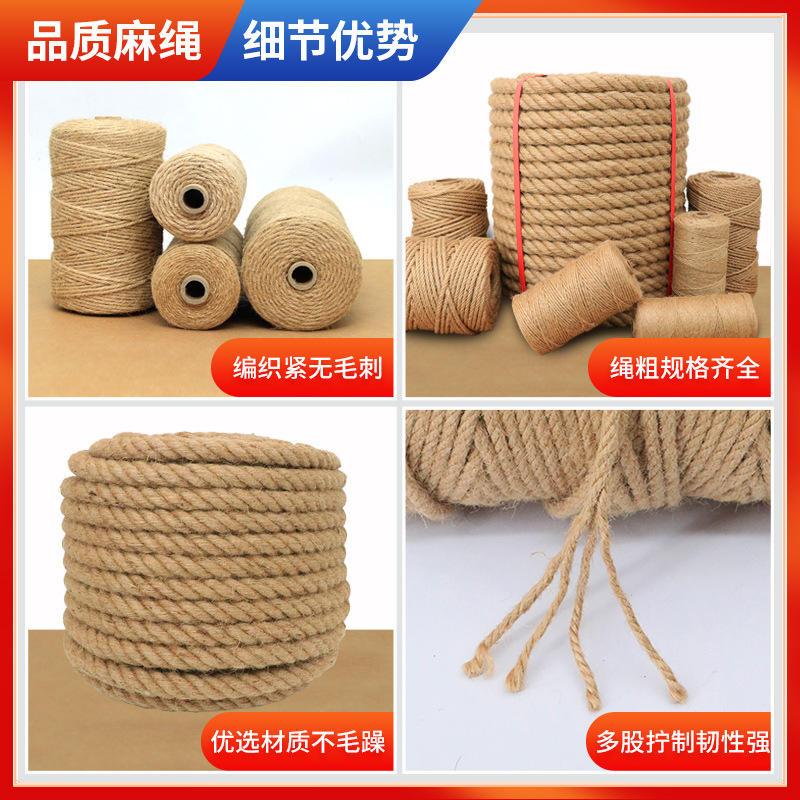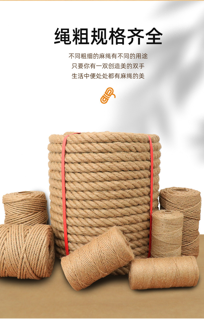 黄麻绳 手工编织DIY复古装饰粗麻绳捆绑拔河绳猫爬架缠绕粗细麻绳