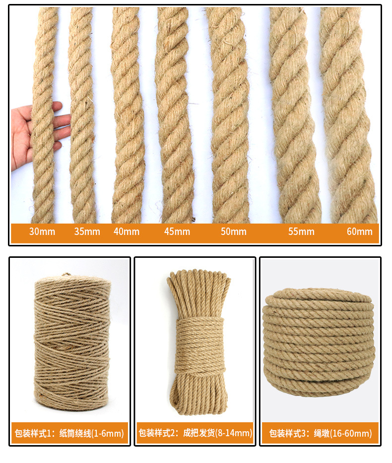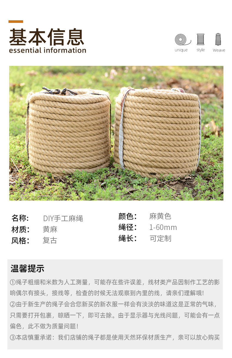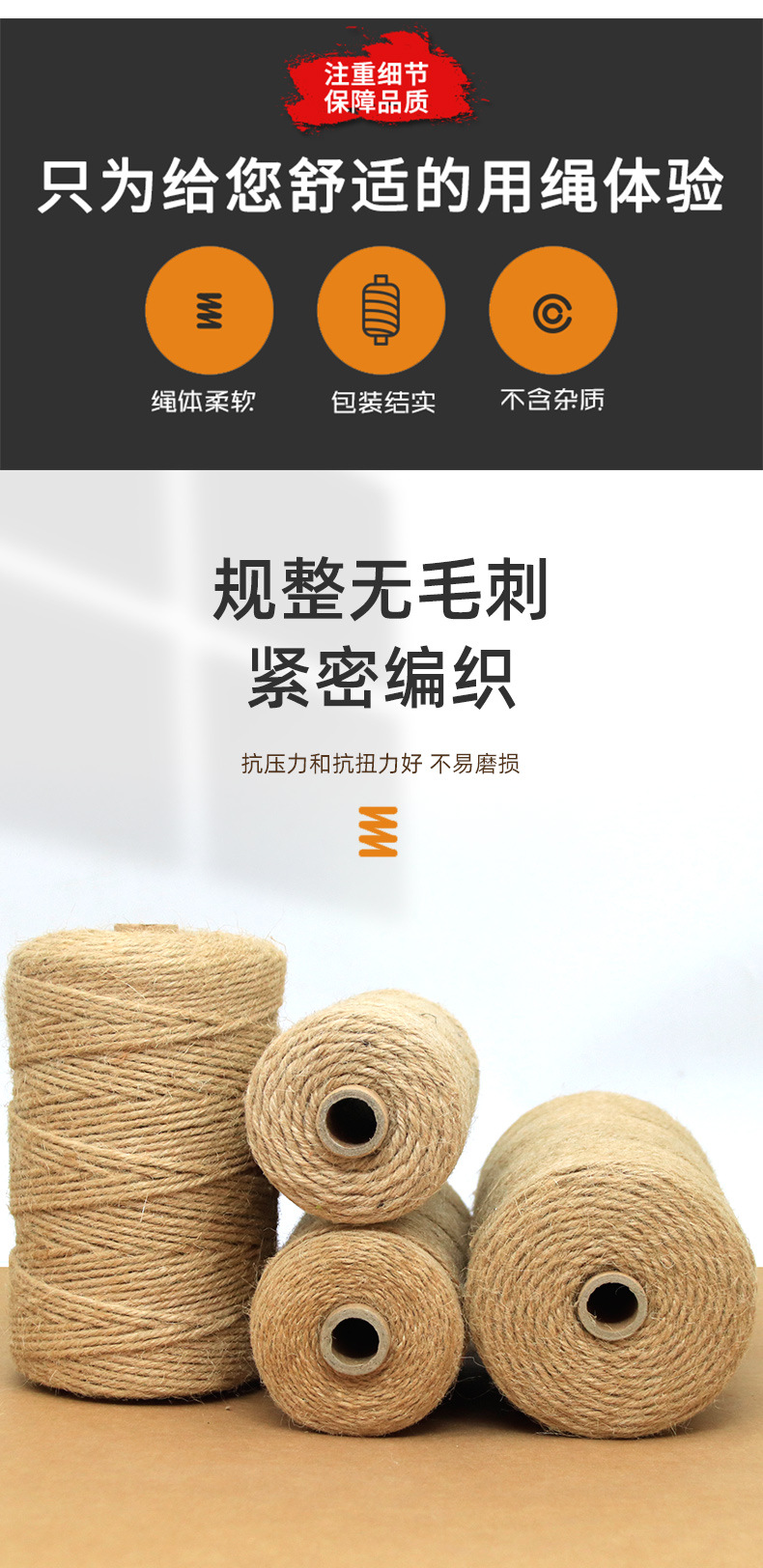 黄麻绳 手工编织DIY复古装饰粗麻绳捆绑拔河绳猫爬架缠绕粗细麻绳
