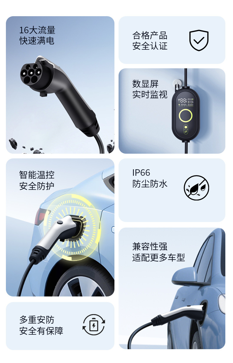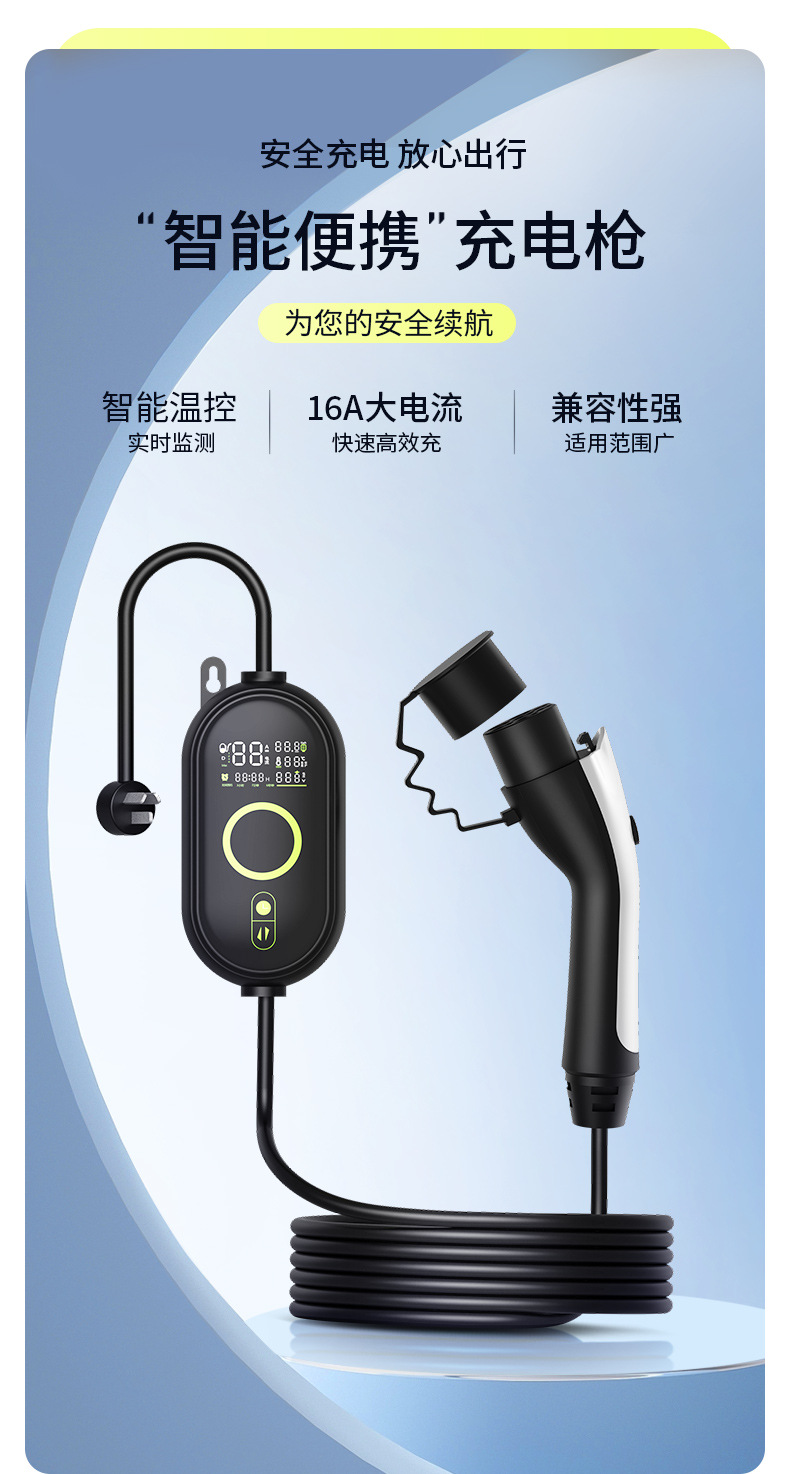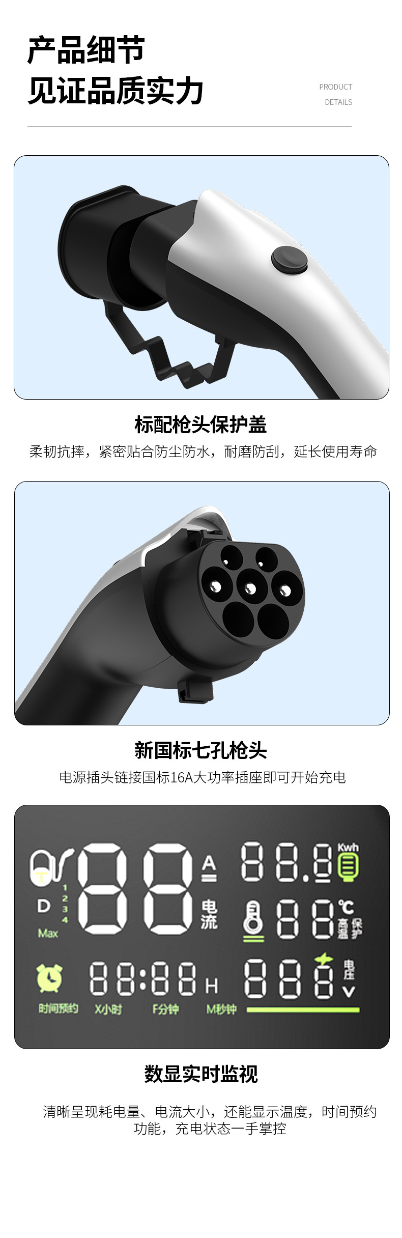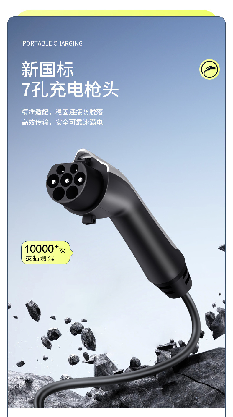 新能源充电枪电动汽车充电桩16A3.5kW/7kW便携式随车充免接地通用