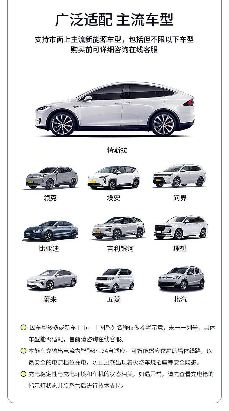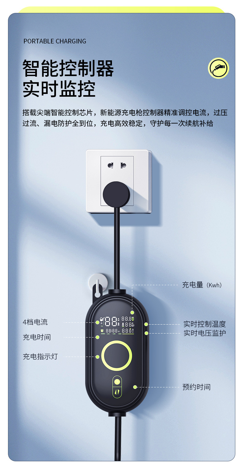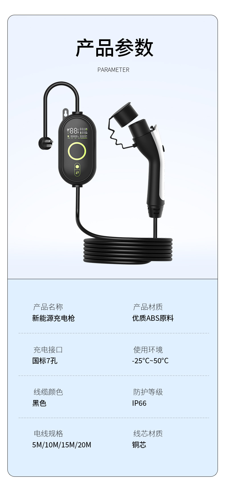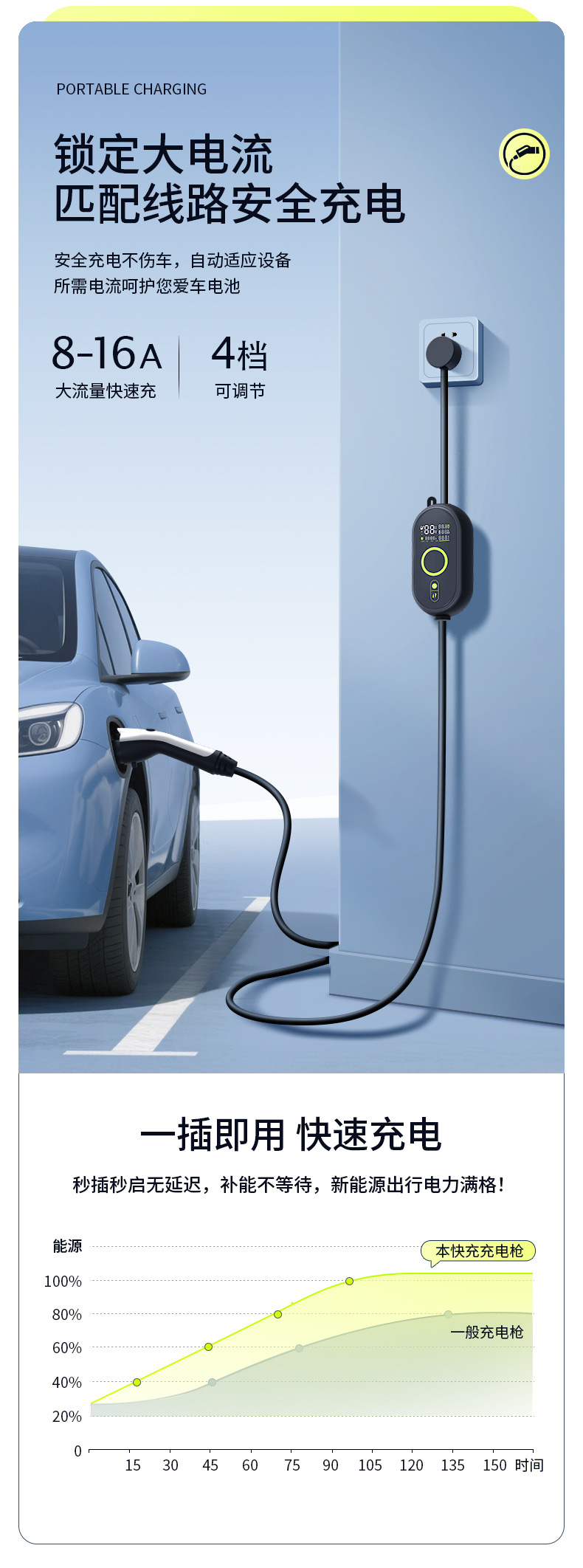 新能源充电枪电动汽车充电桩16A3.5kW/7kW便携式随车充免接地通用