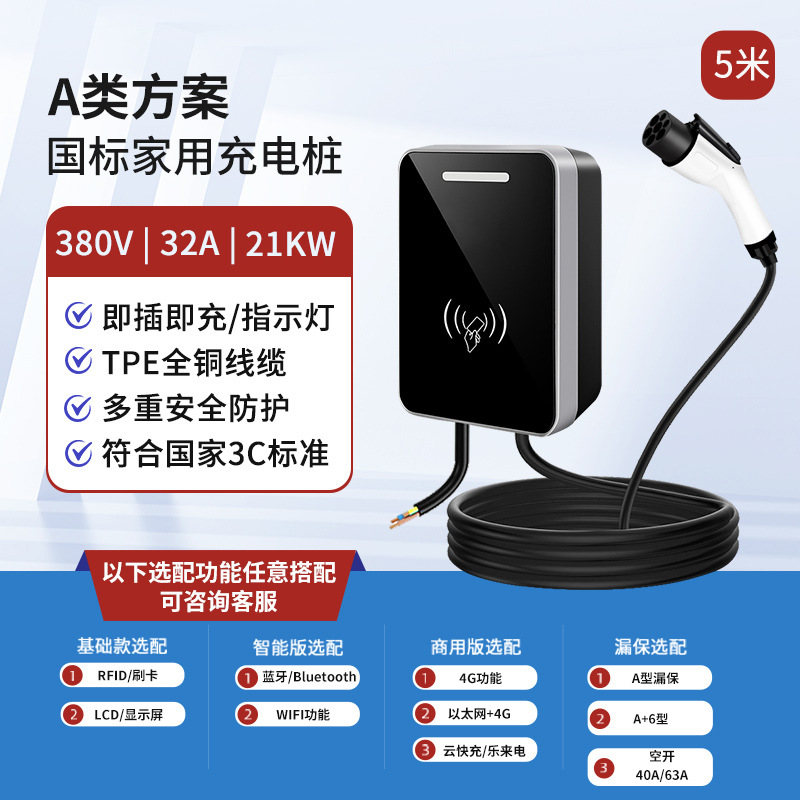 新能源电动汽车充电桩厂家7KW交流32A快充特斯拉充电枪便携式家用