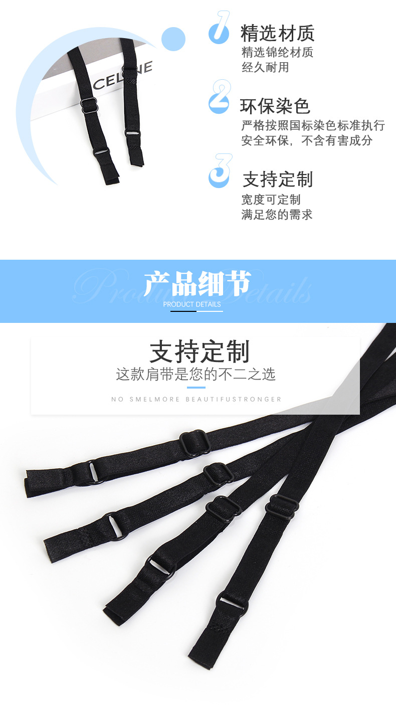 锦纶高弹光面松紧多规格成品调节内衣肩带加长穿环加工娃衣美背