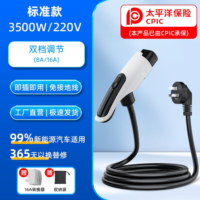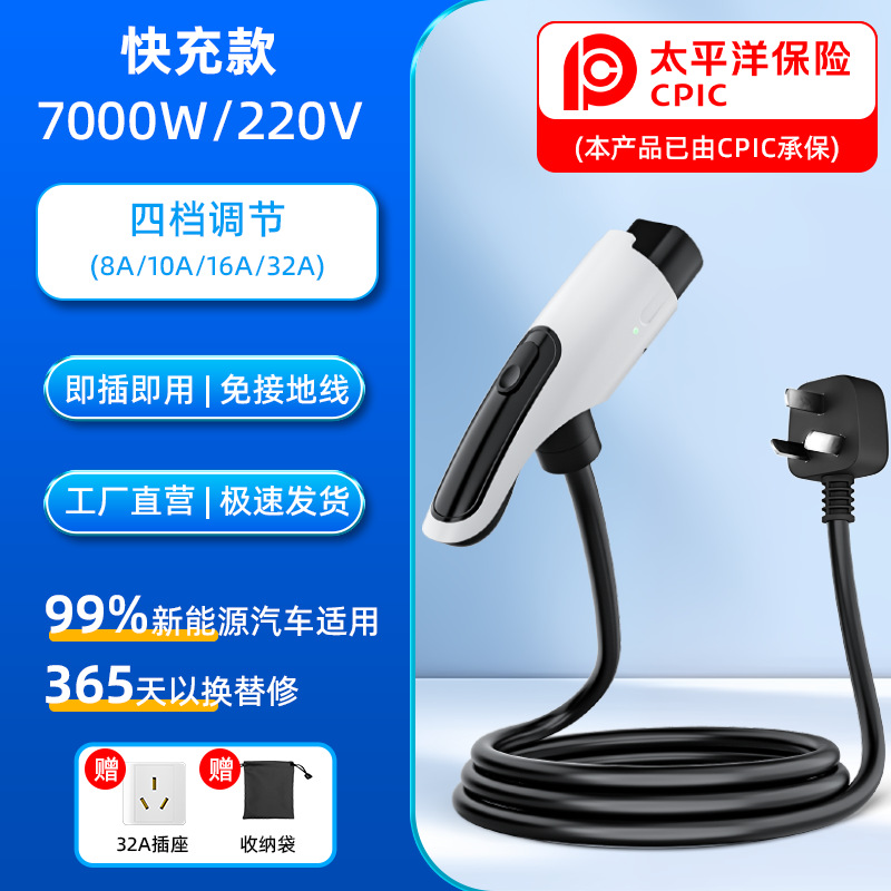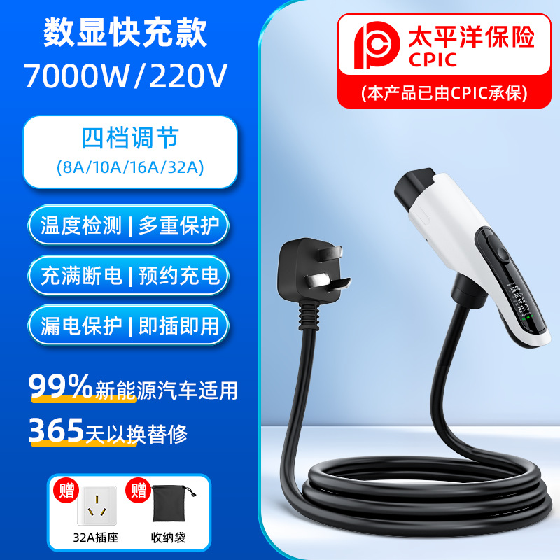 T3新能源电动汽车免接地充电枪3.5/7KW便携式带数显家用枪充电桩