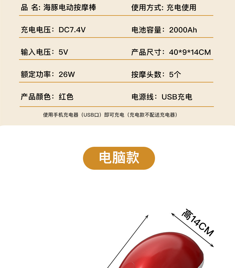 海豚按摩器电动按摩棒肩颈椎腰背腿部多功能送爸妈礼物老人按摩仪