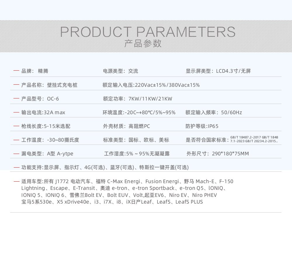 新能源汽车充电桩交流充电桩7KW充电桩家用商用充电桩充电枪