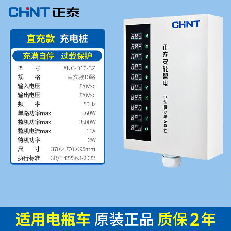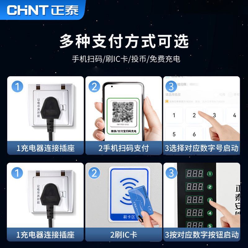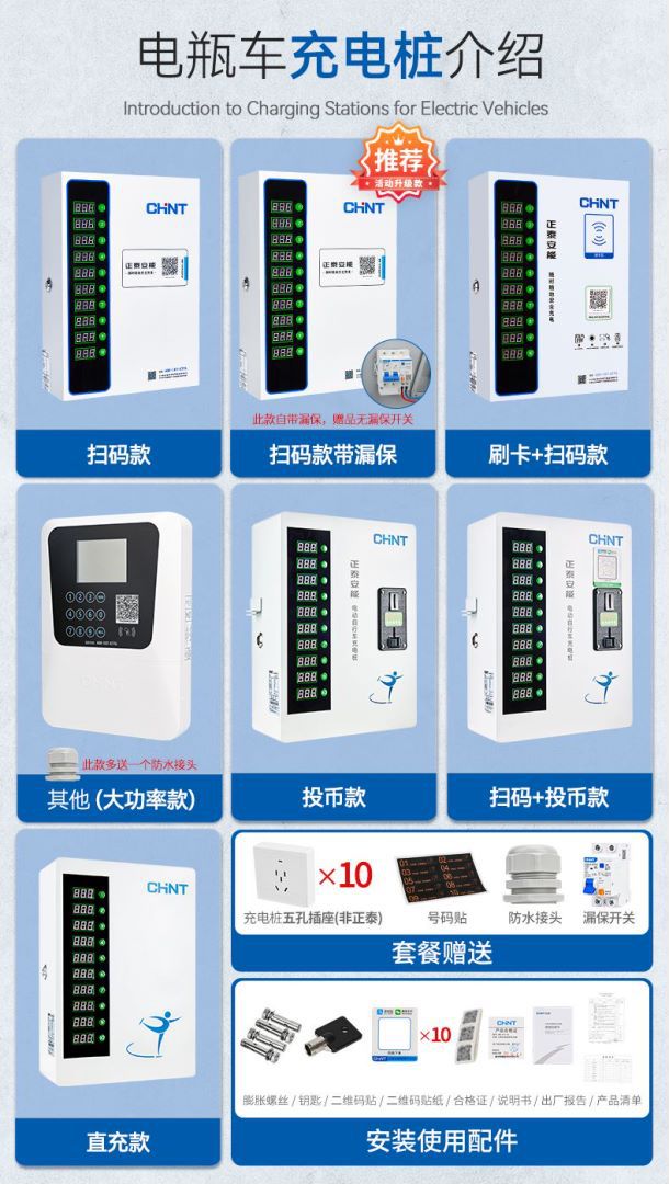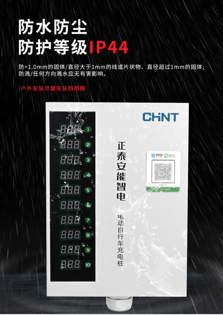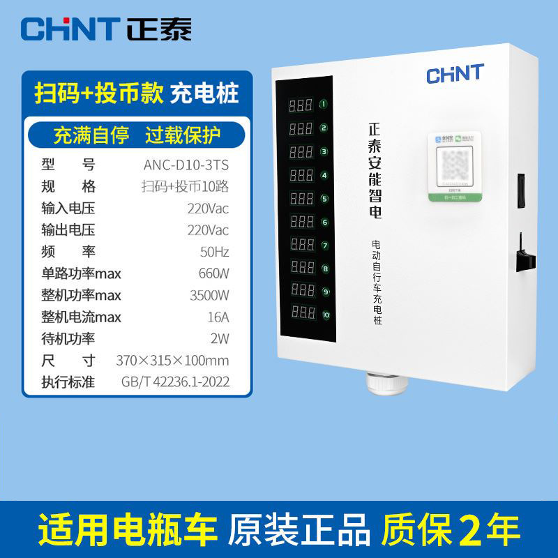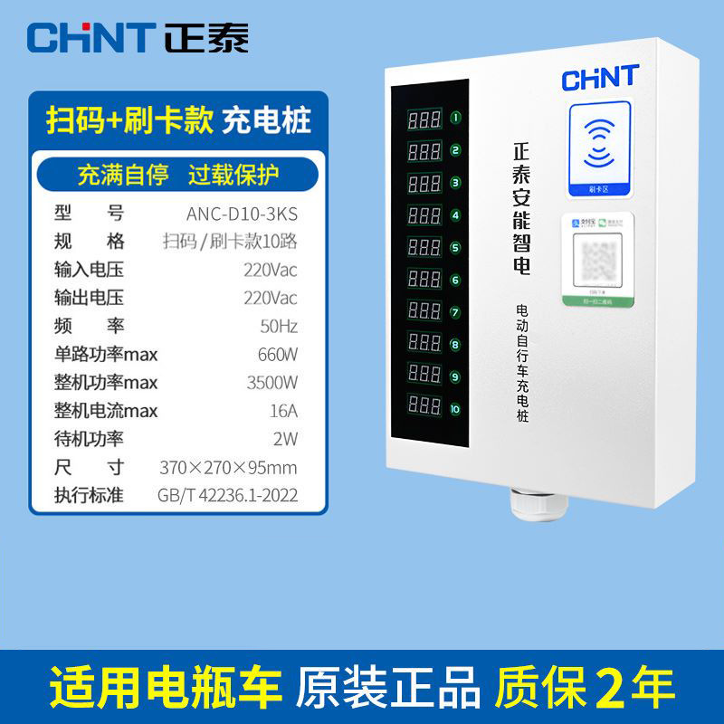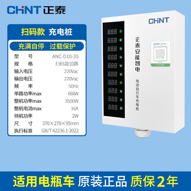 正泰大功率电瓶车充电桩小区220V交流电10排数字按键白智电充电桩