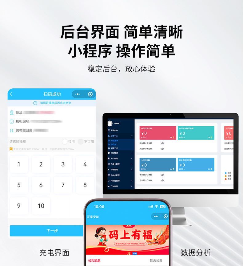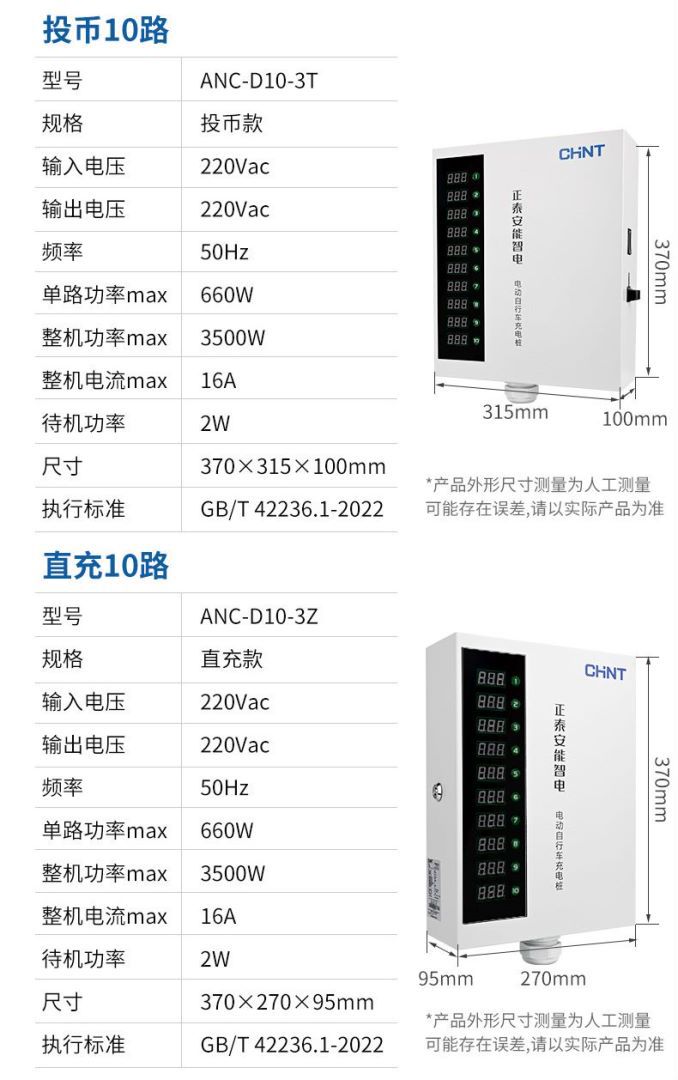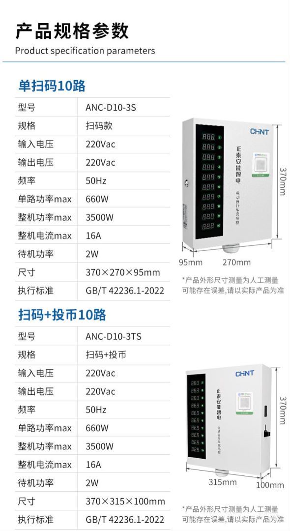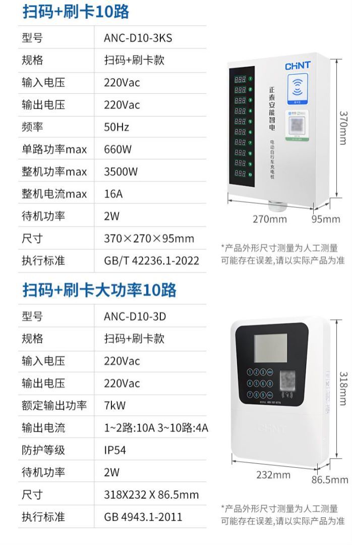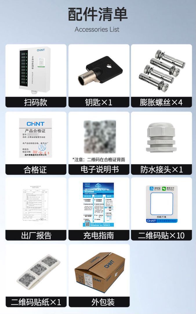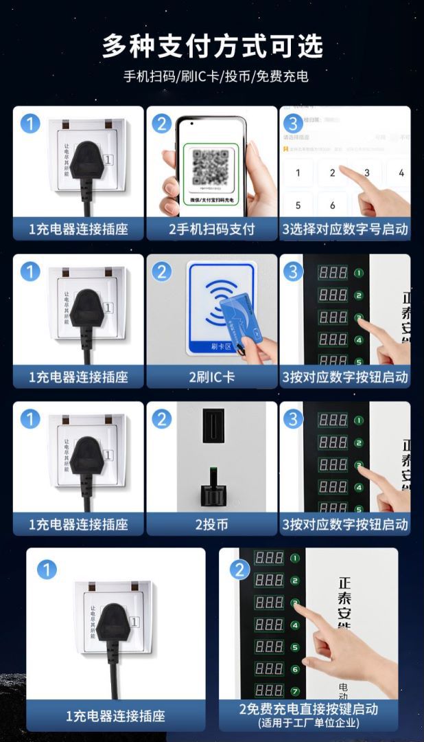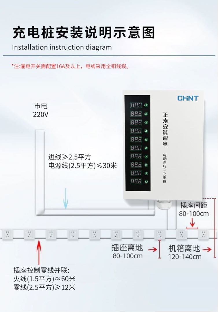 正泰大功率电瓶车充电桩小区220V交流电10排数字按键白智电充电桩