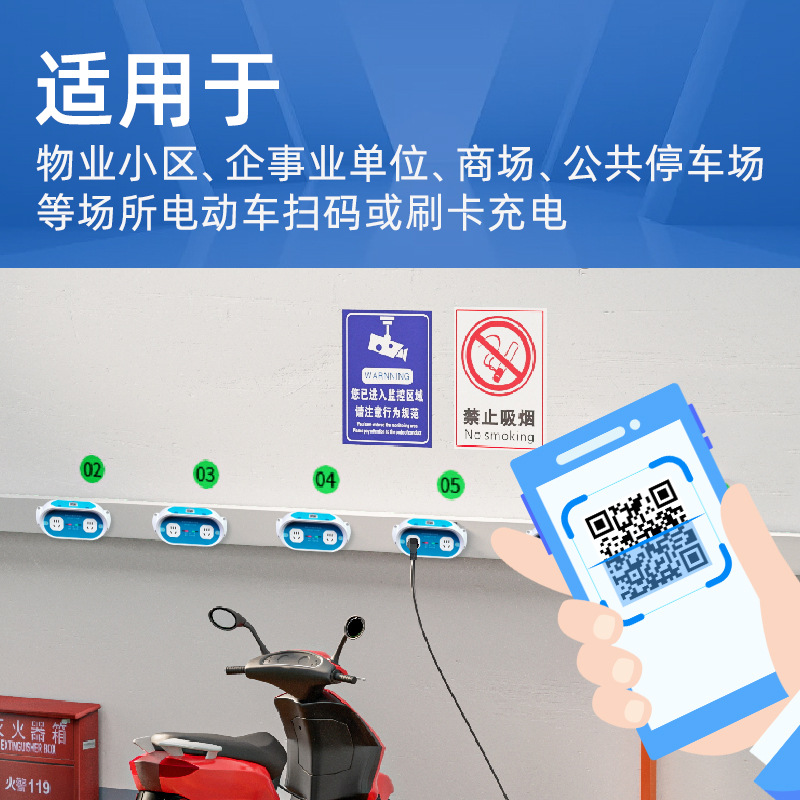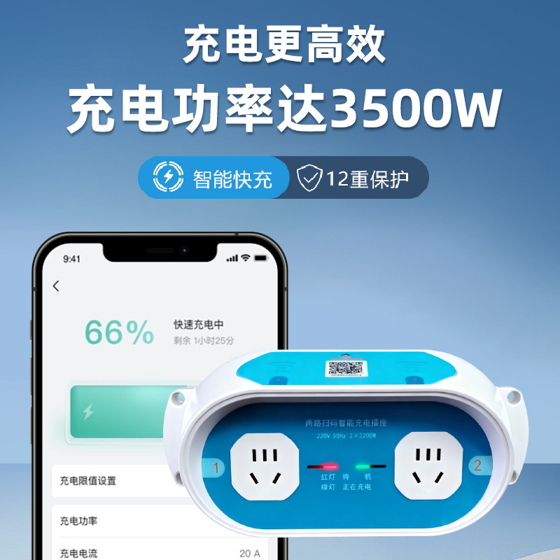 两路电动车智能充电插座充电桩商用扫码加刷卡支付充满自动断电