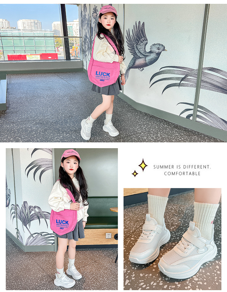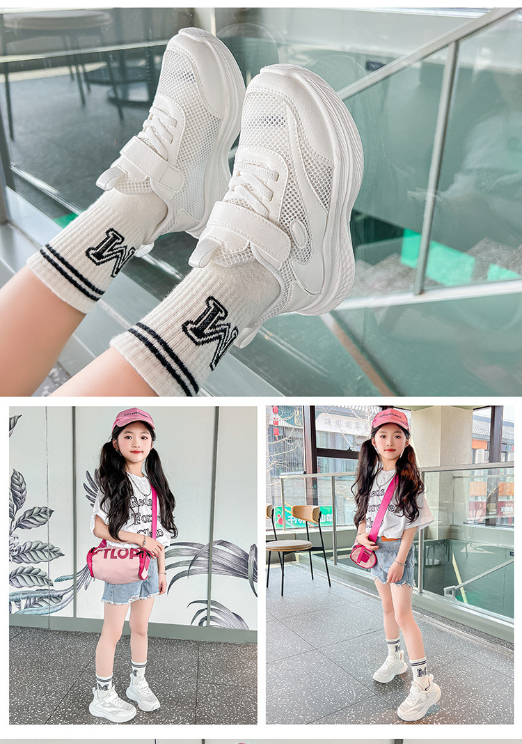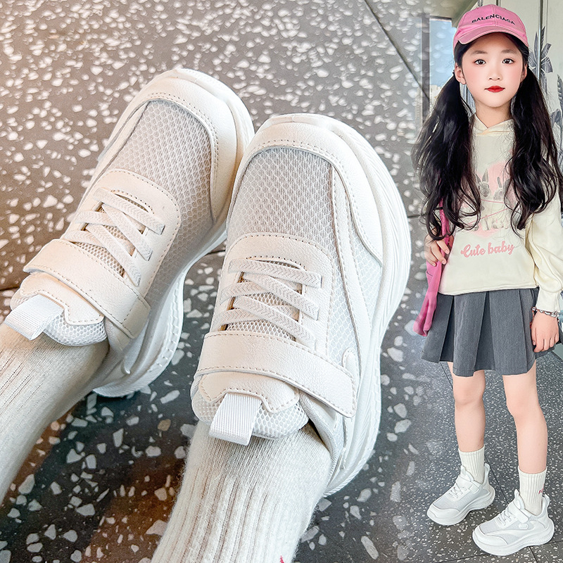 儿童小白鞋网面透气女童运动鞋防滑春秋新款双网软底男童鞋跑步鞋