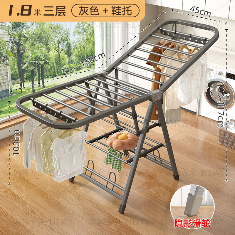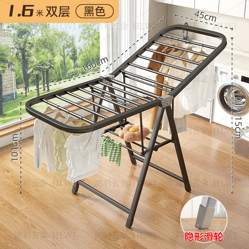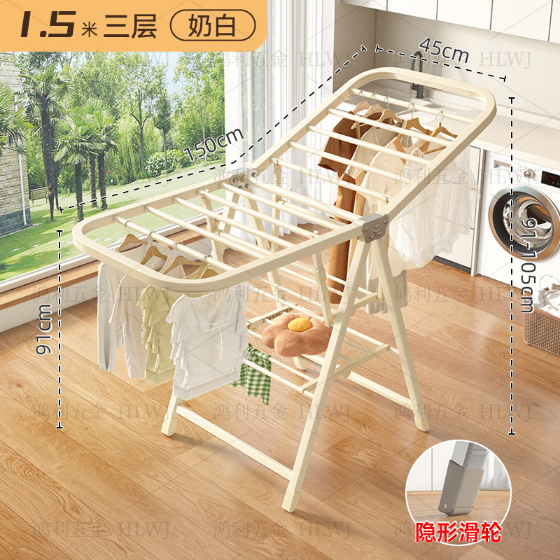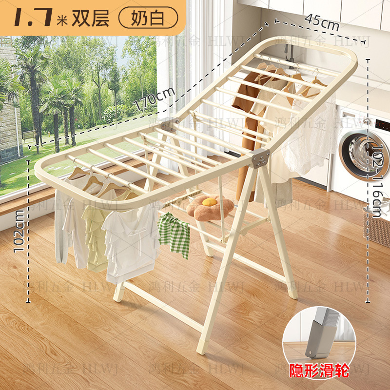加厚晾衣架落地可折叠立式家用阳台室内挂衣帽架出租屋凉晒被子杆