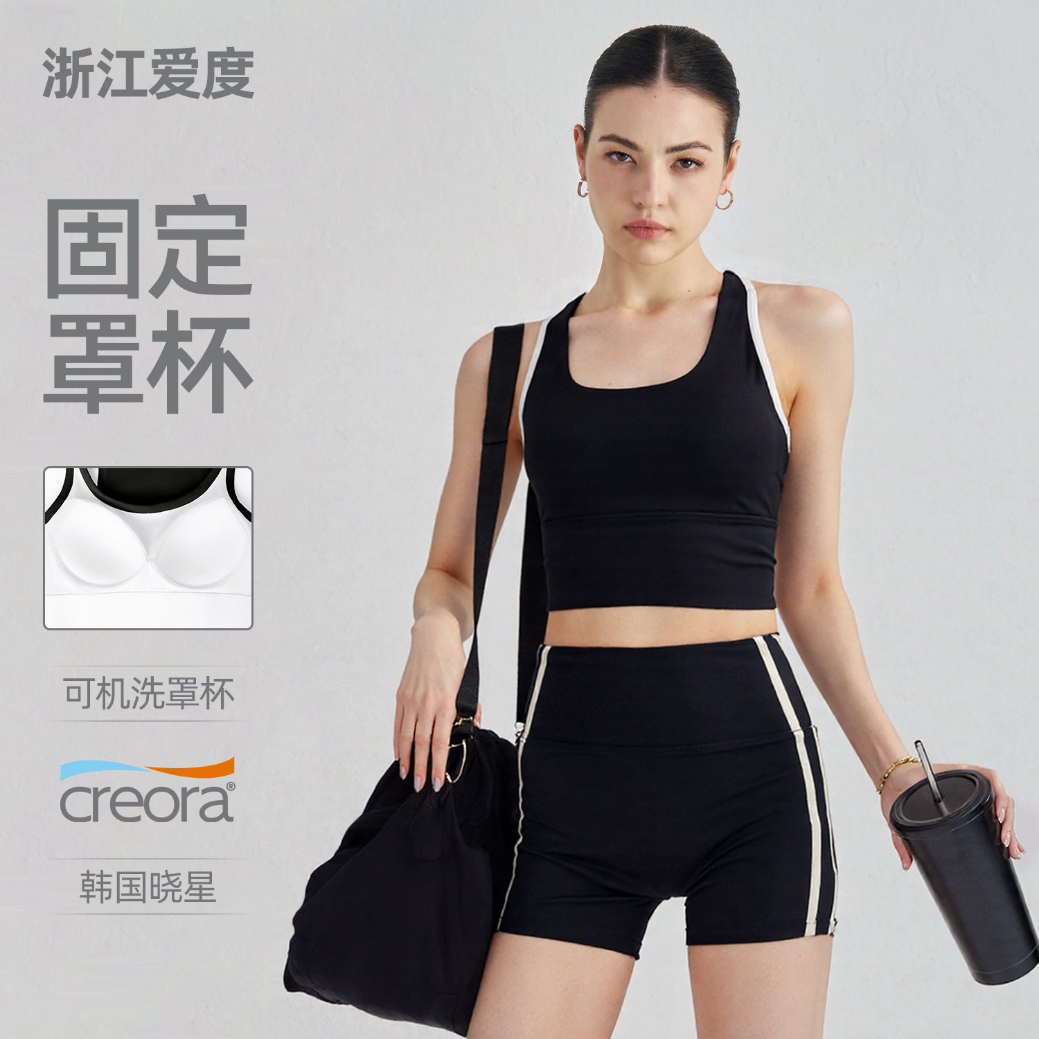 爱度NU固定杯运动内衣瑜伽服上衣工字美背瑜伽背心带胸垫健身文胸