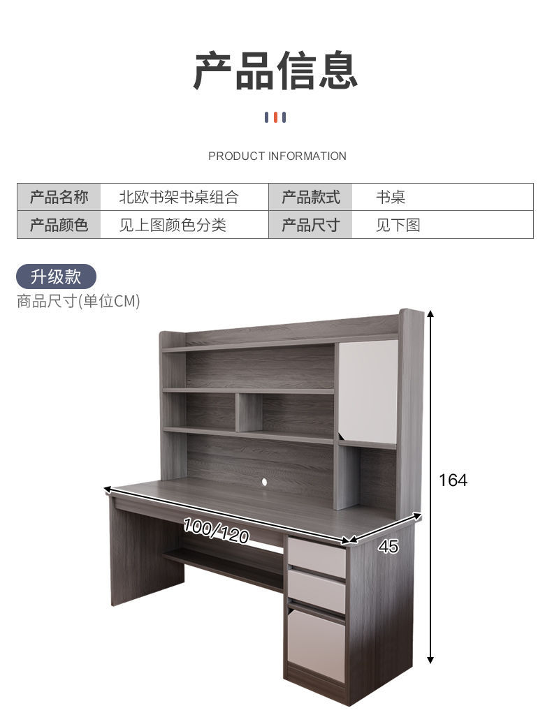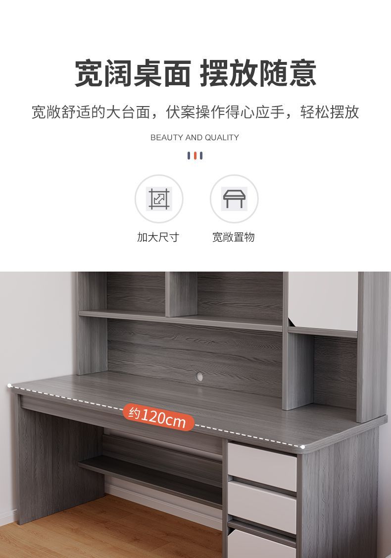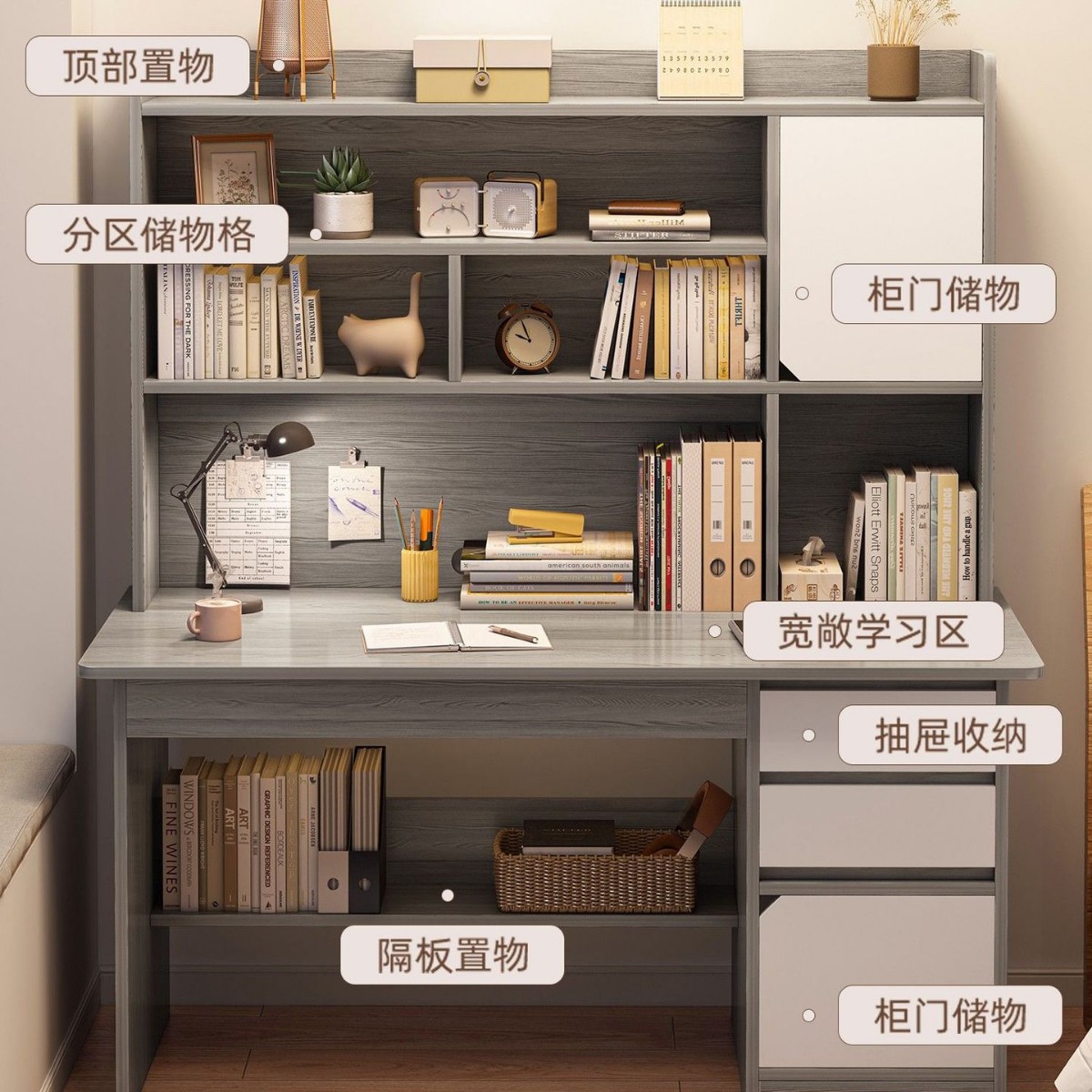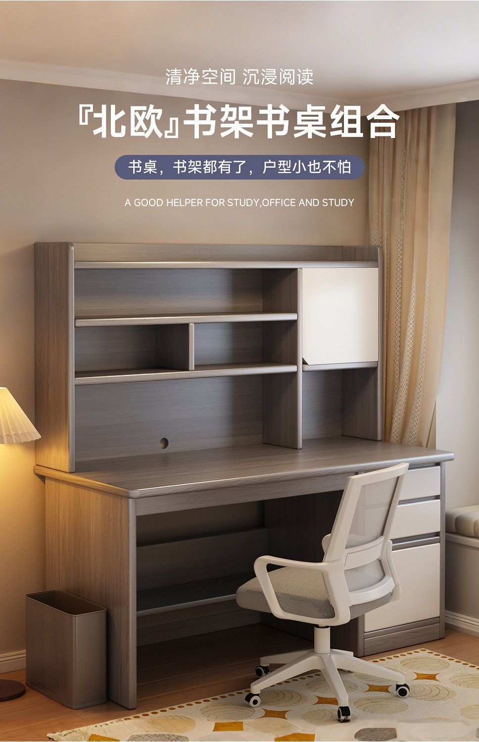 书桌书架一体写字桌学生卧室家用小学习电脑桌子简易出租屋办公桌