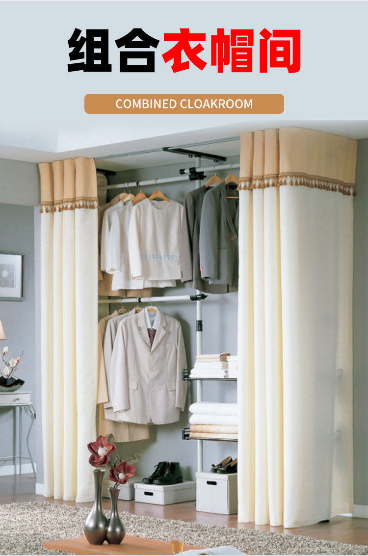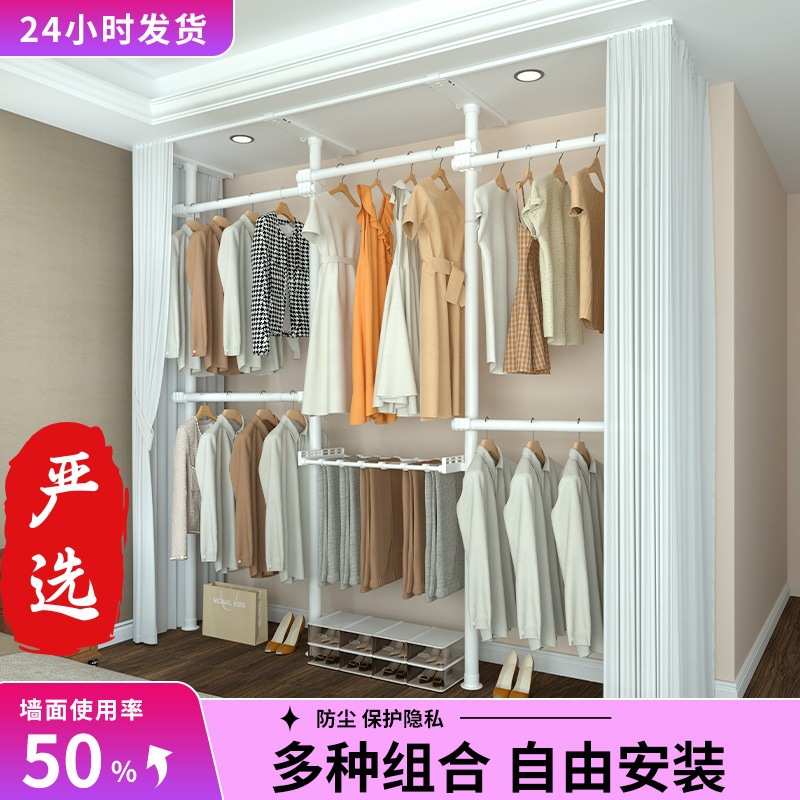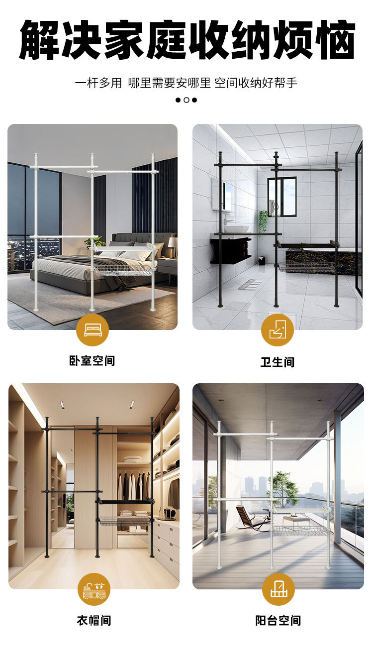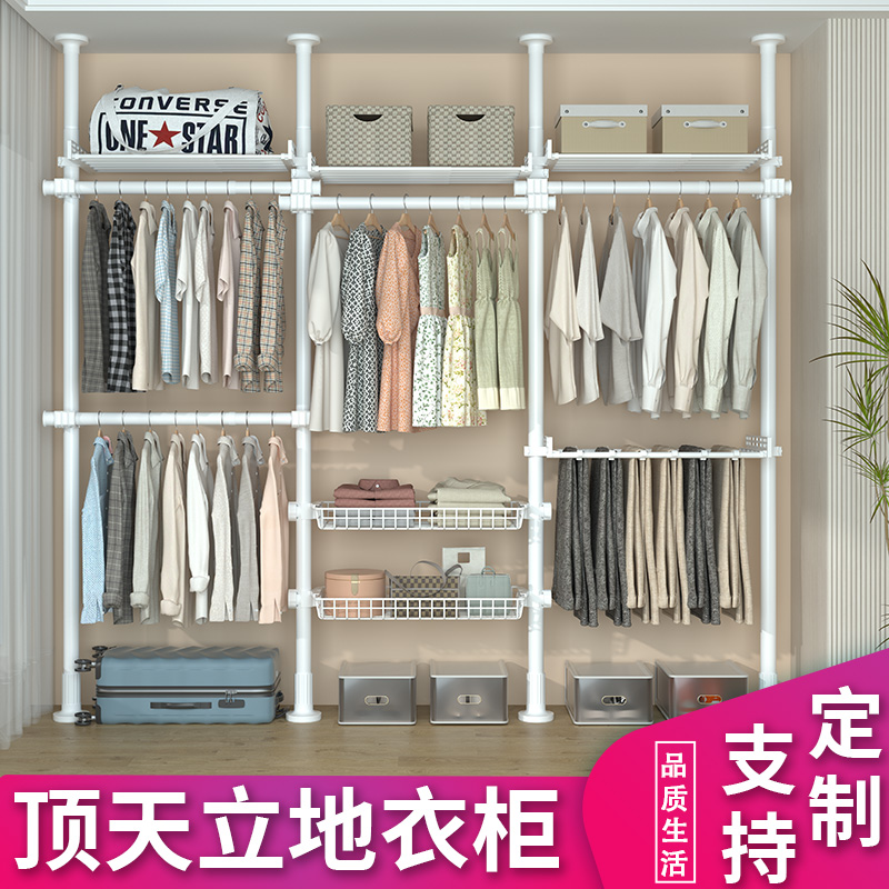 严选38mm加粗厚顶天立地挂衣架落地宿舍租房出租屋组装衣柜 挂衣