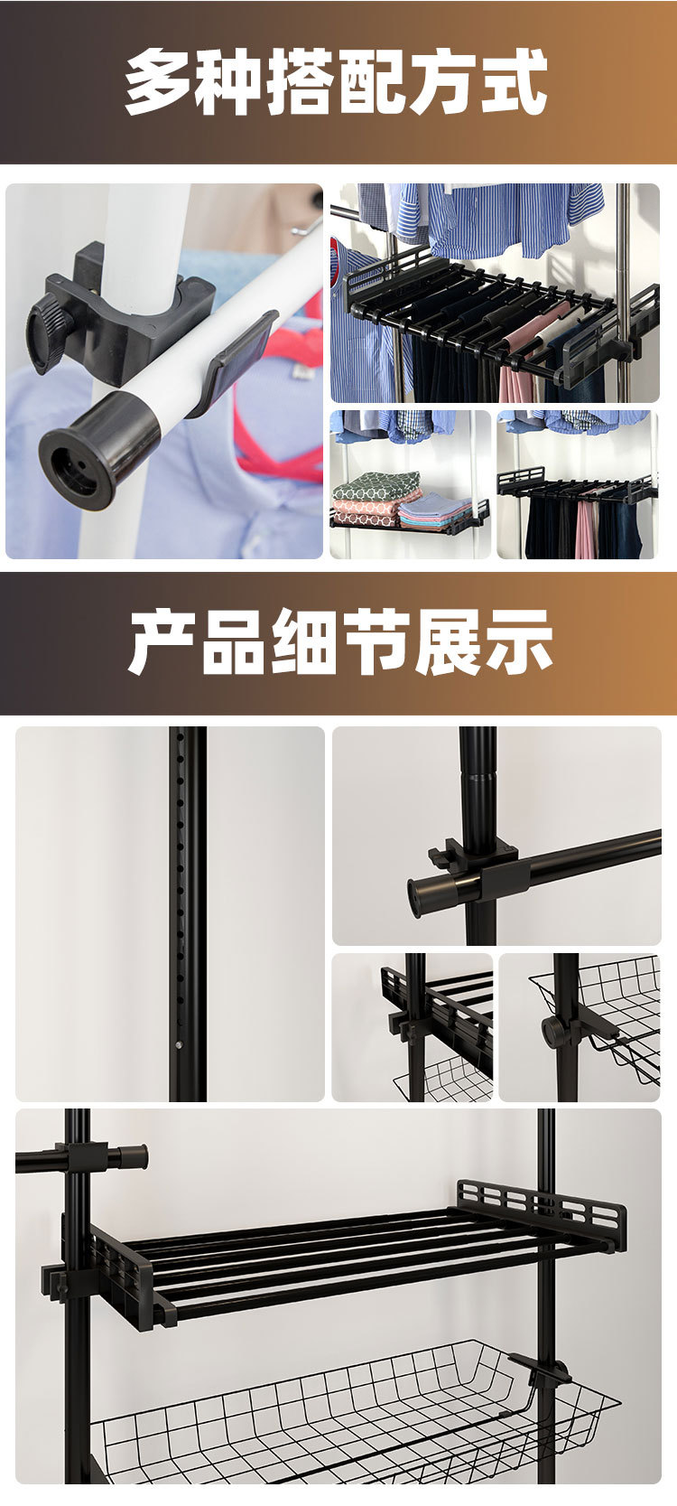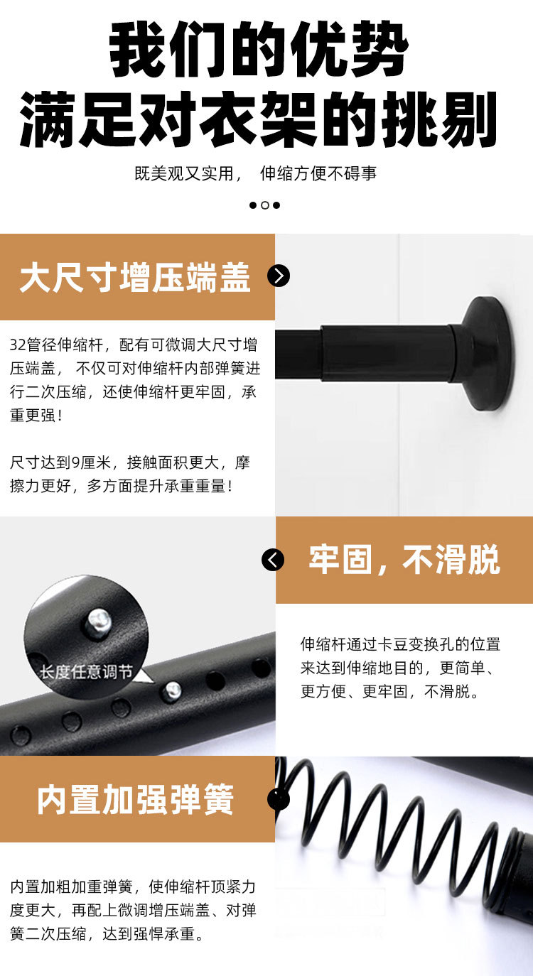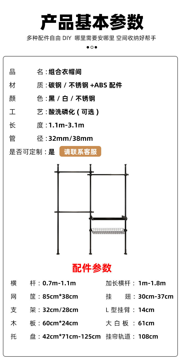 严选38mm加粗厚顶天立地挂衣架落地宿舍租房出租屋组装衣柜 挂衣