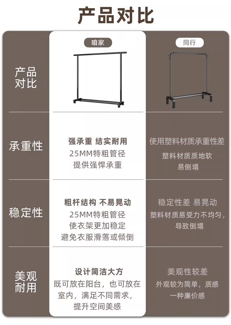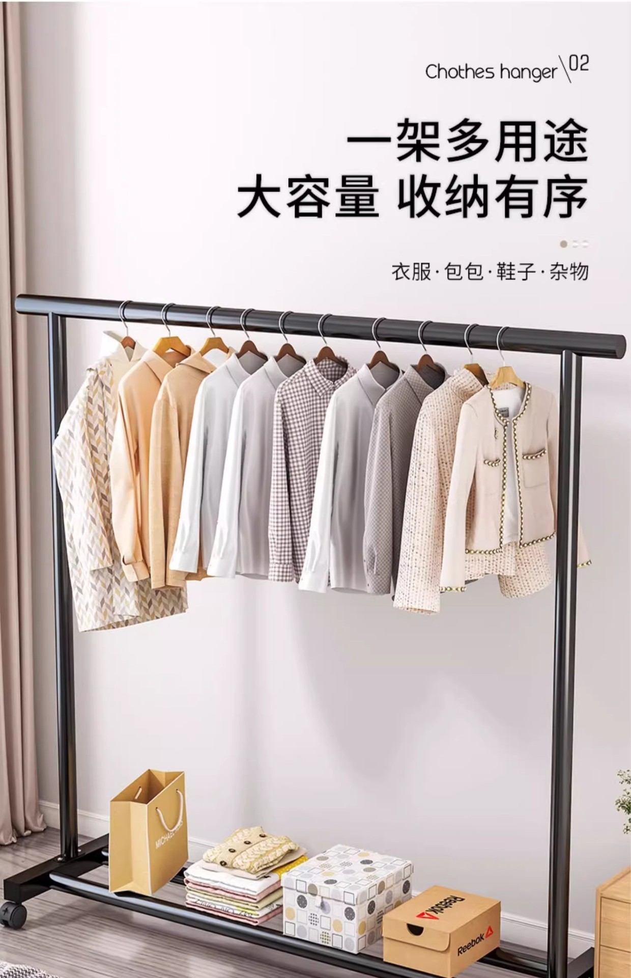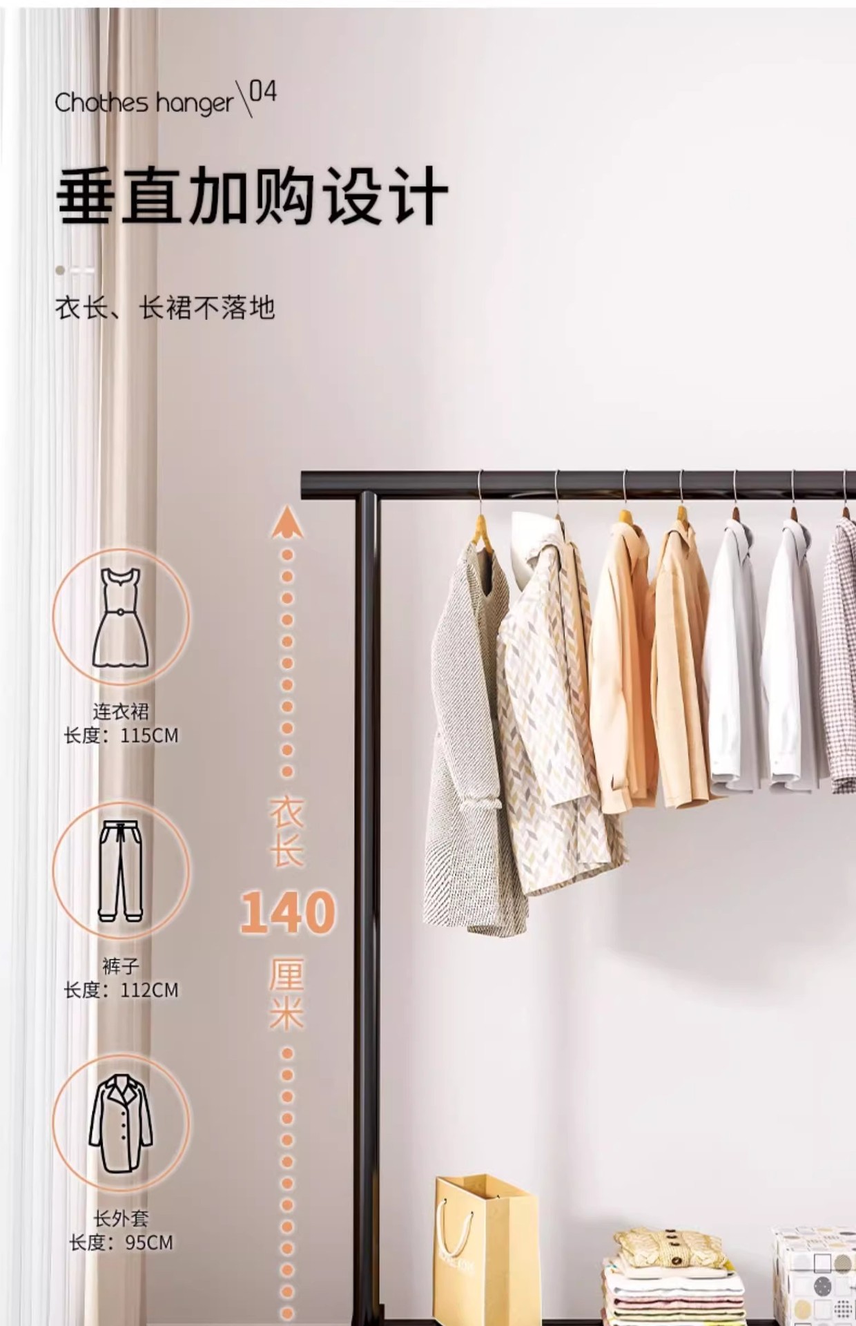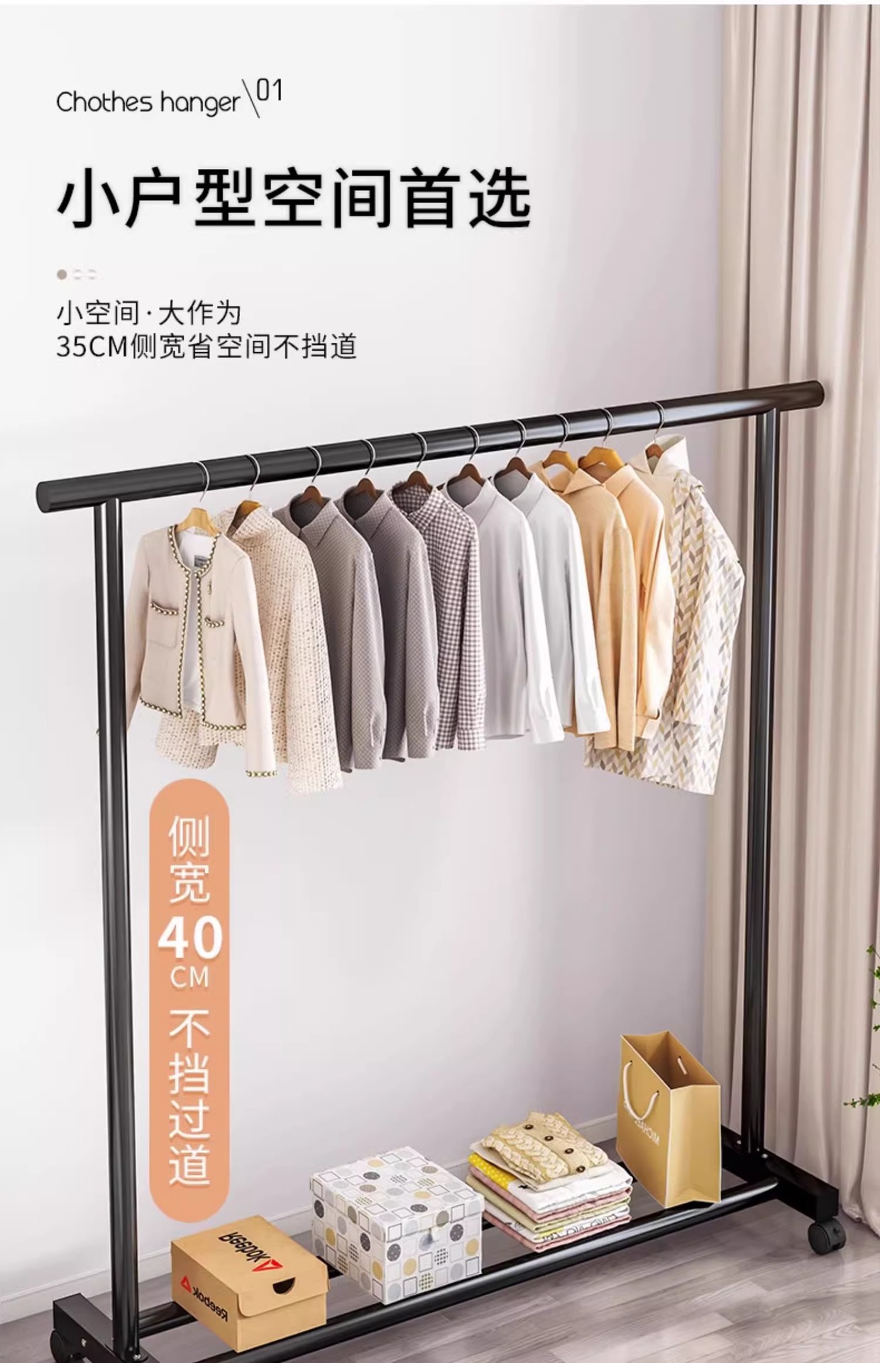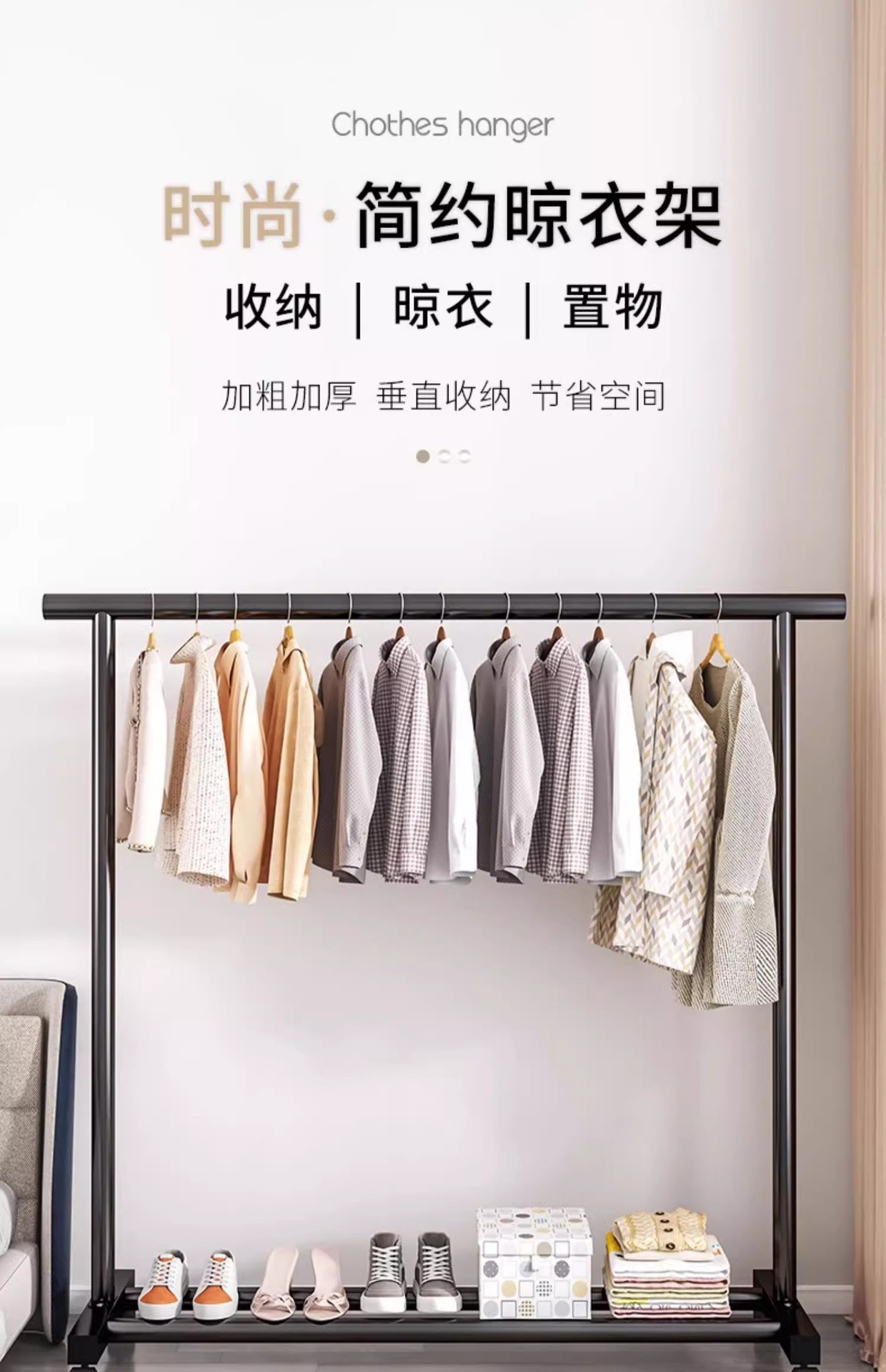 晾衣架落地阳台家用挂衣架卧室内宿舍出租房简易衣帽架子晾晒衣杆