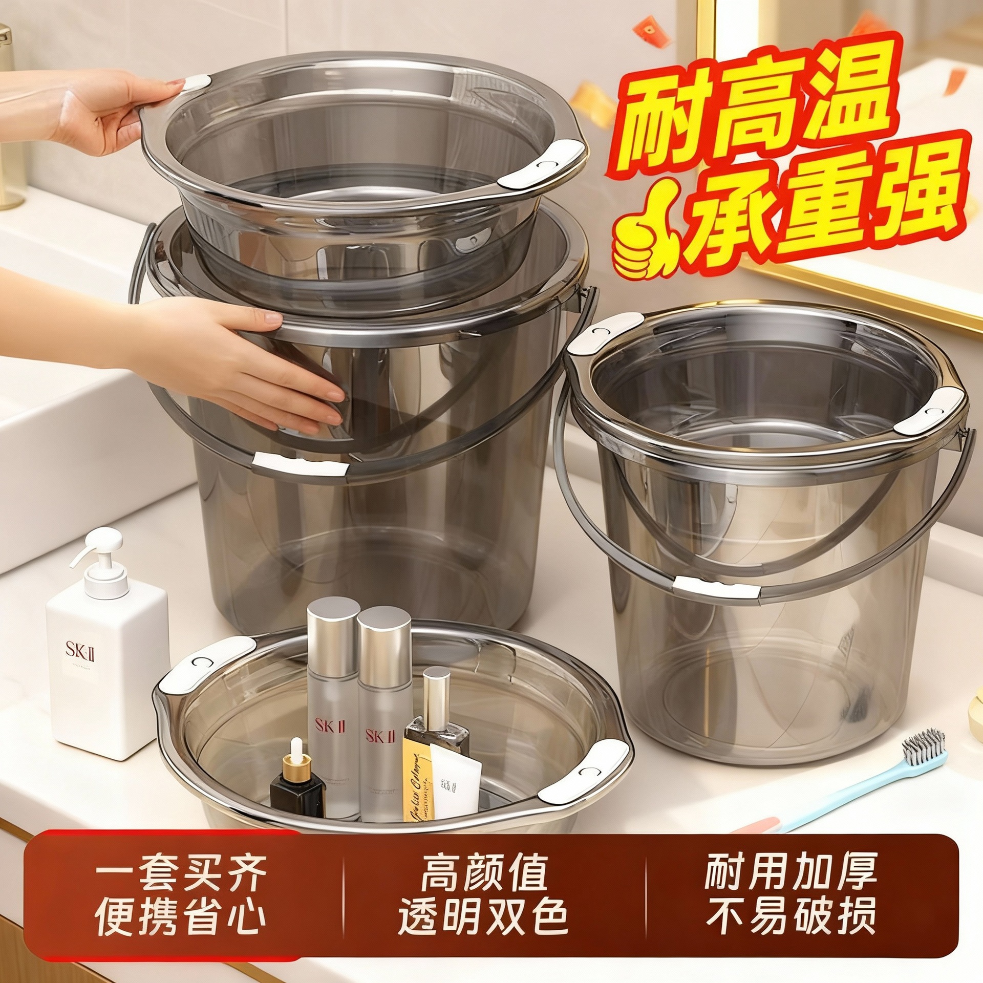 耐高温水桶宿舍塑料水桶泡脚桶租房蓄水桶加厚带提手洗衣桶大容量