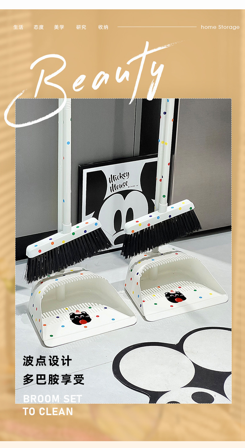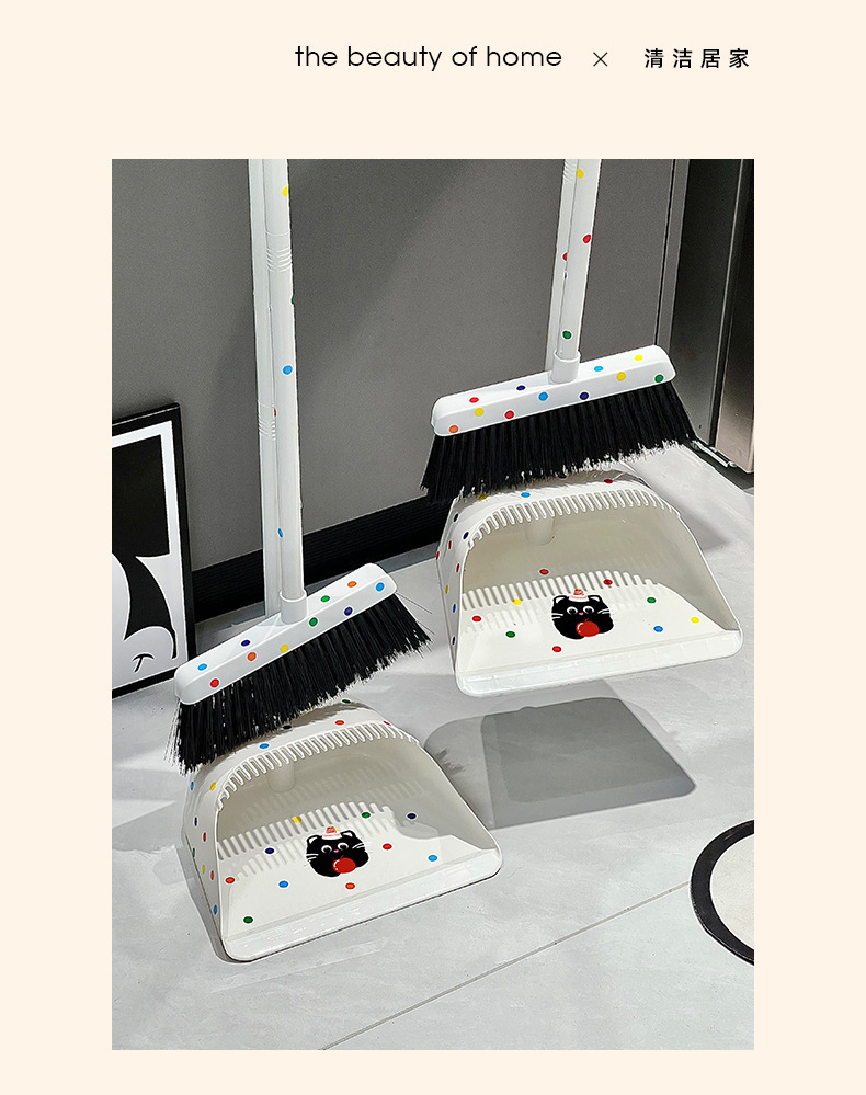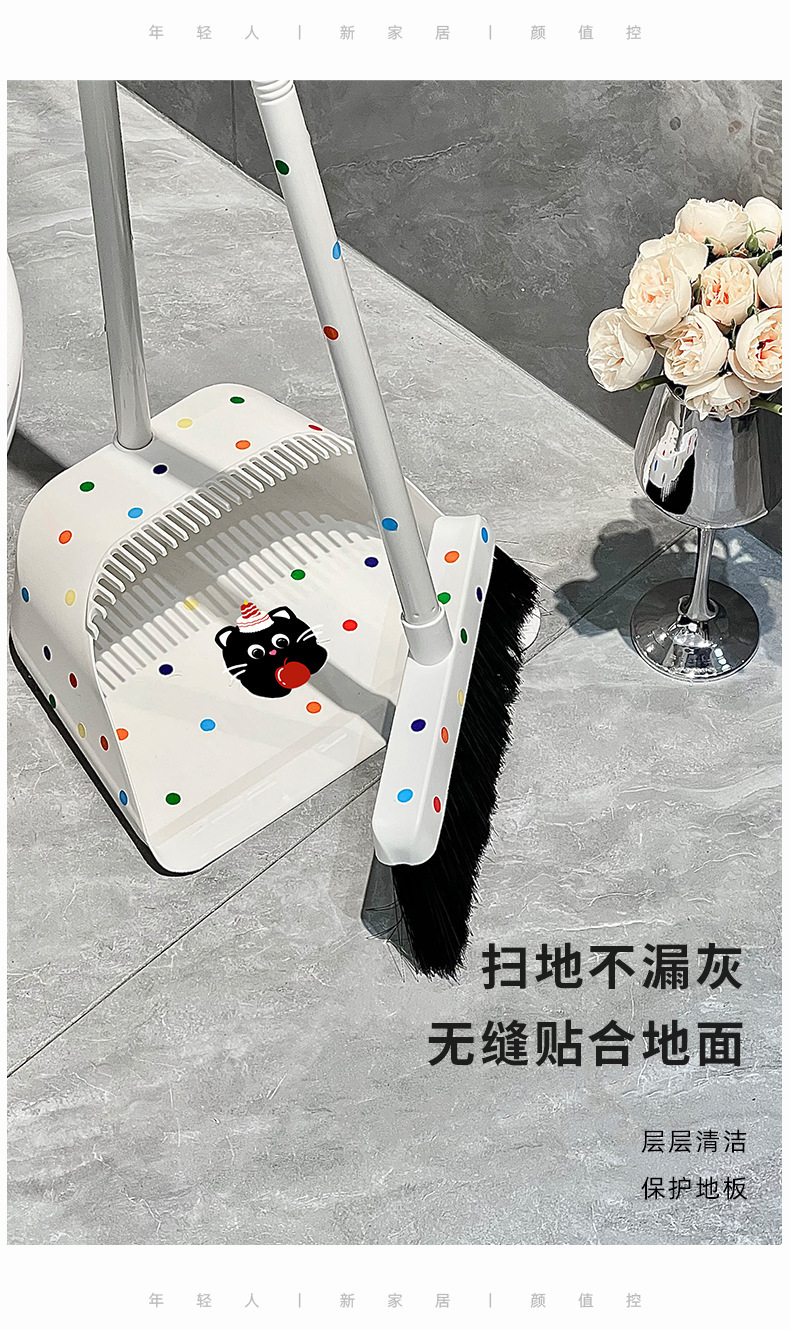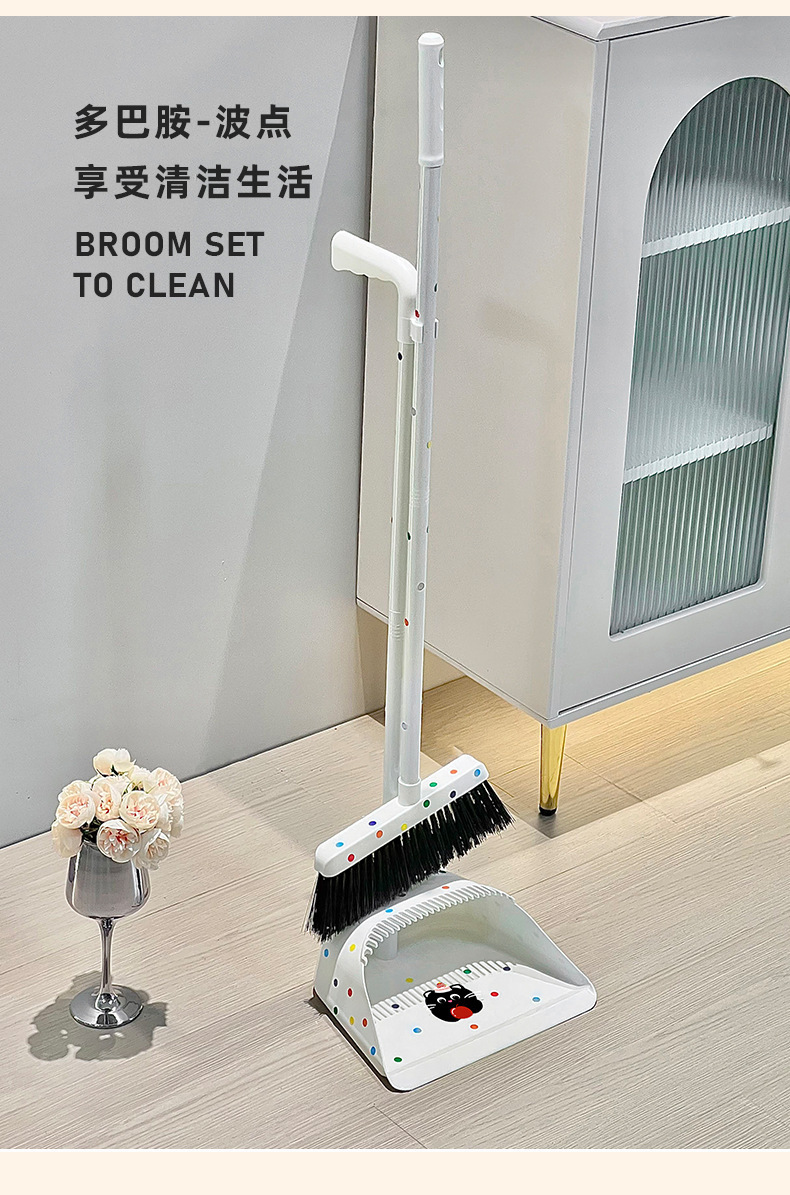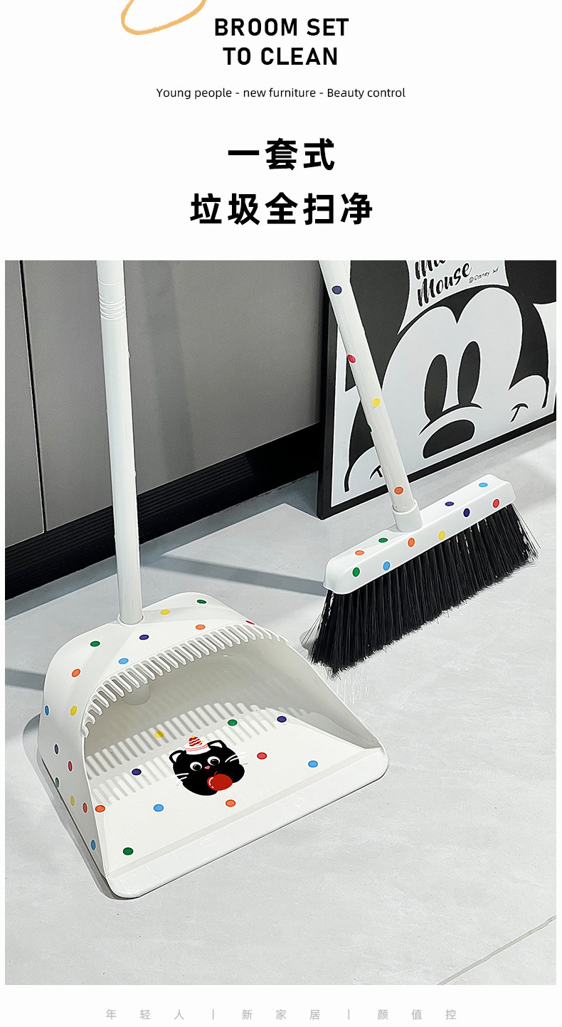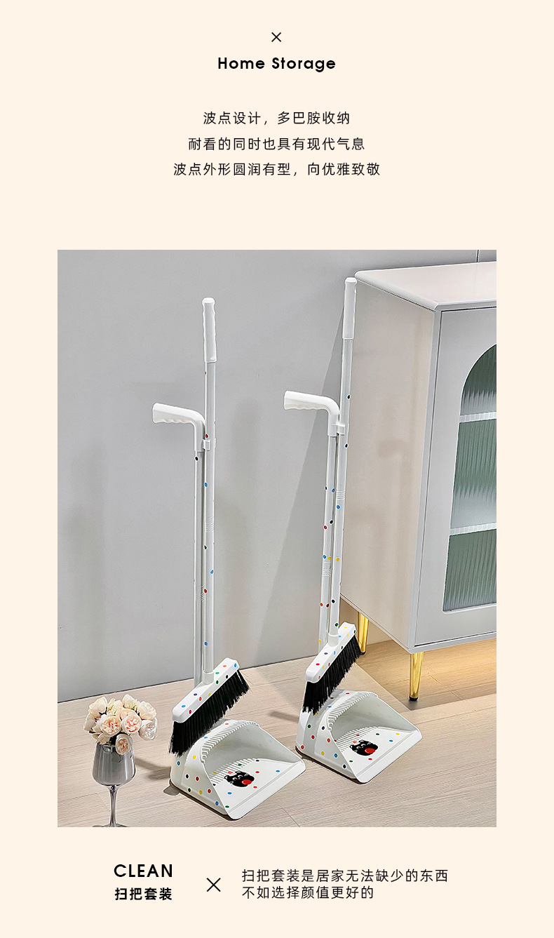 高颜值可爱卡通波点家用刮水扫把簸箕套装宿舍出租房扫帚畚斗套装