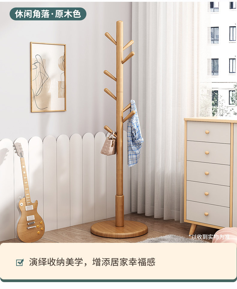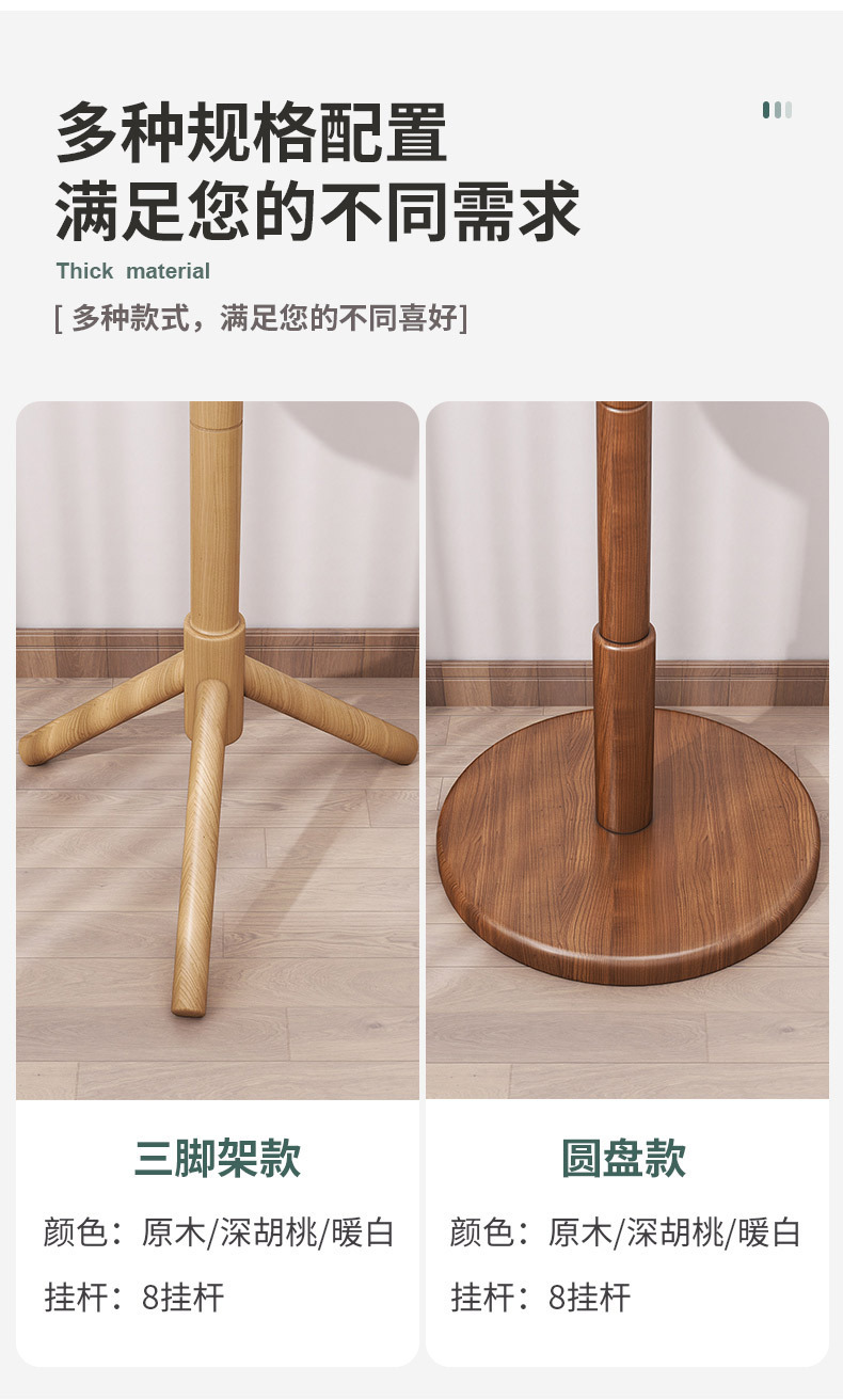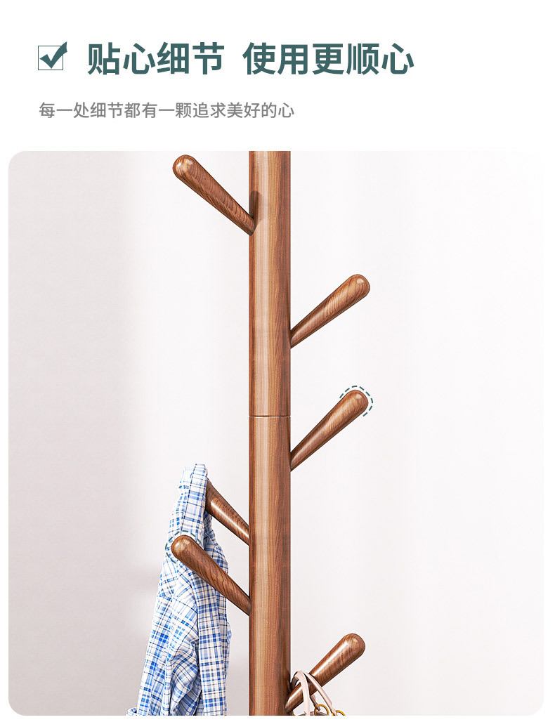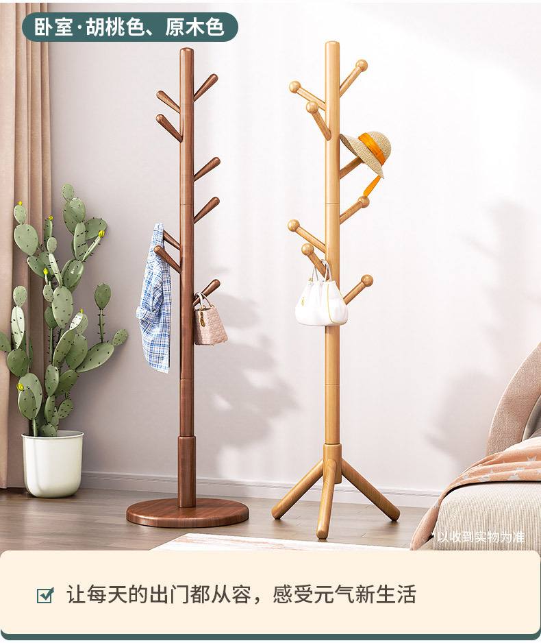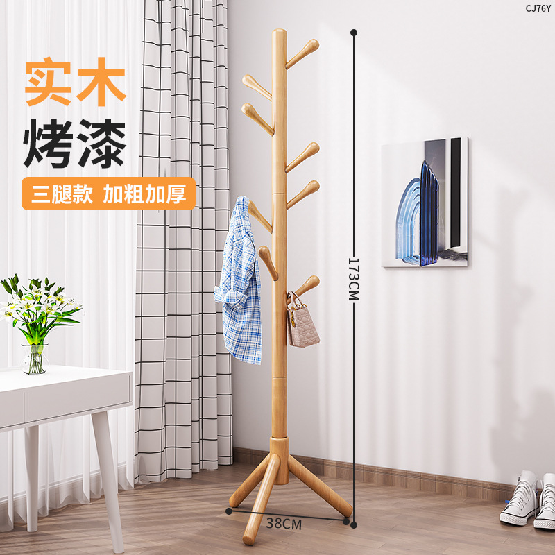 实木落地式衣帽架卧室挂衣架家用立式出租屋挂衣杆必备现代简约