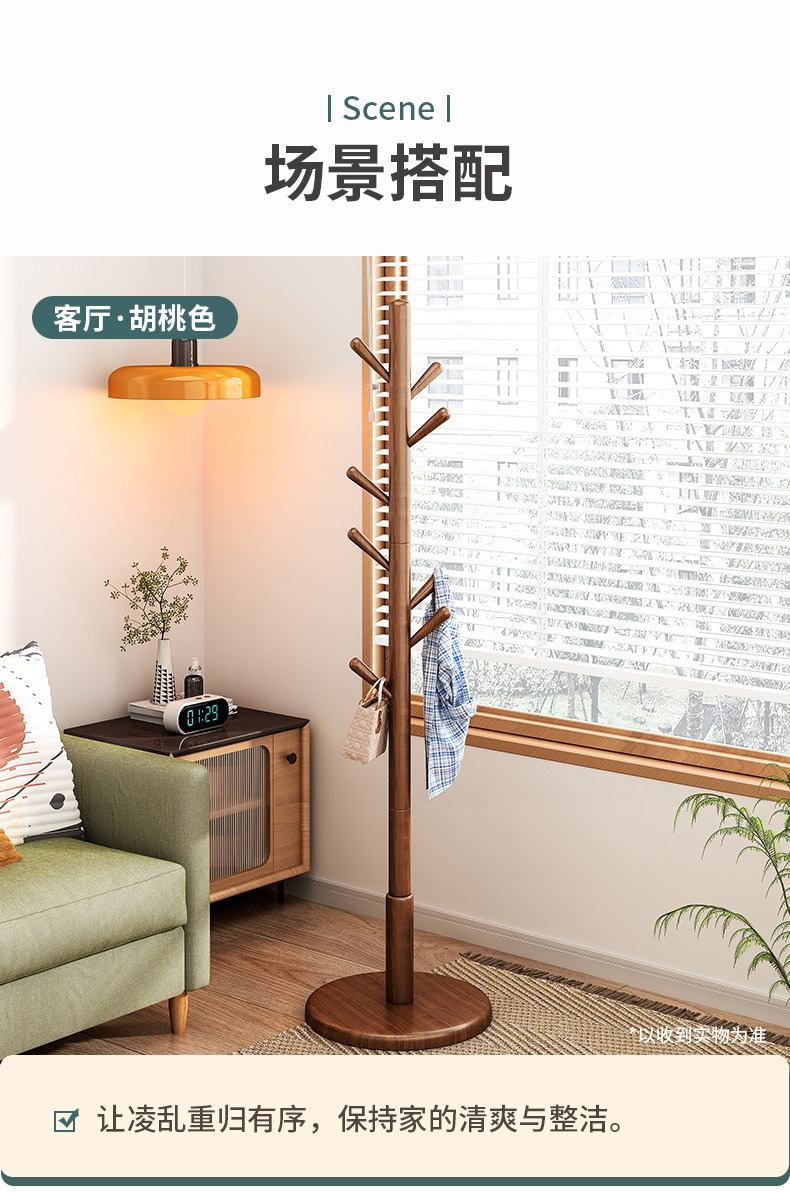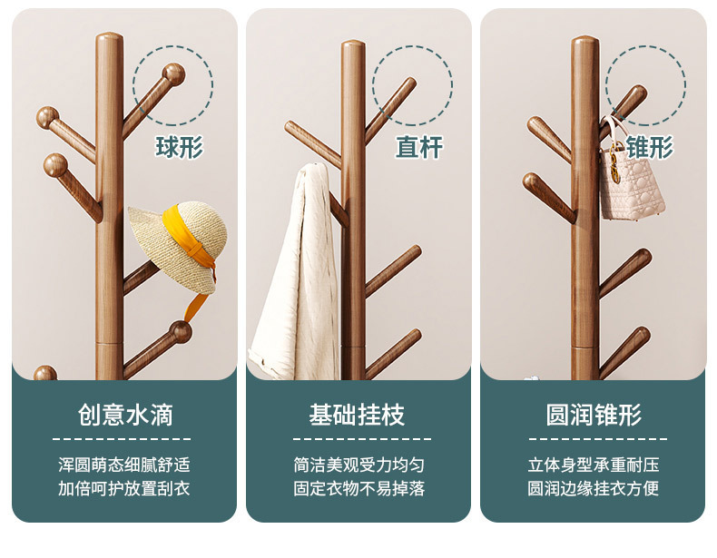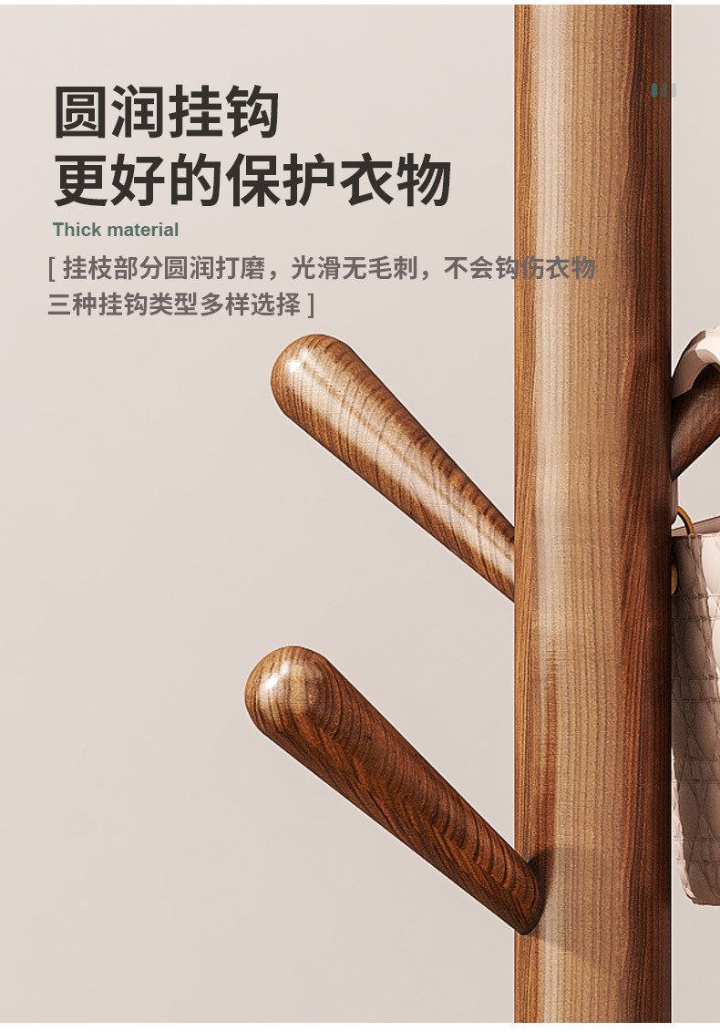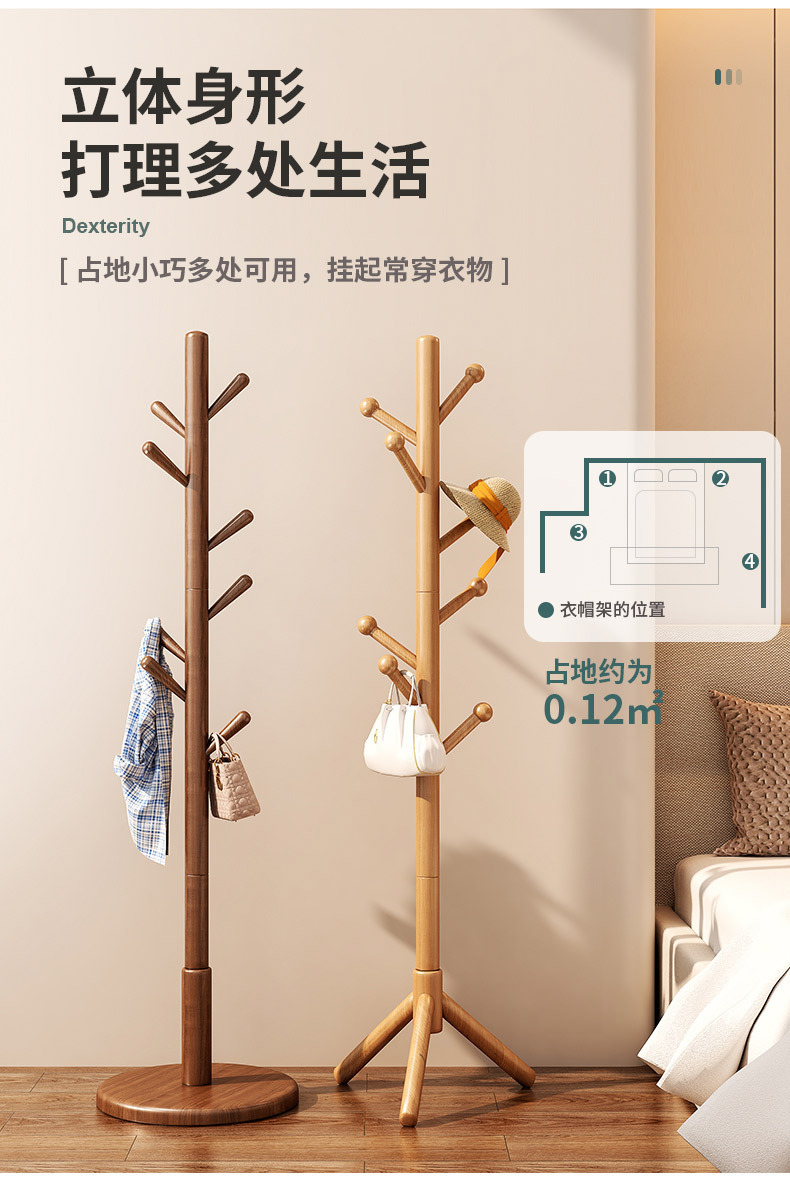实木落地式衣帽架卧室挂衣架家用立式出租屋挂衣杆必备现代简约