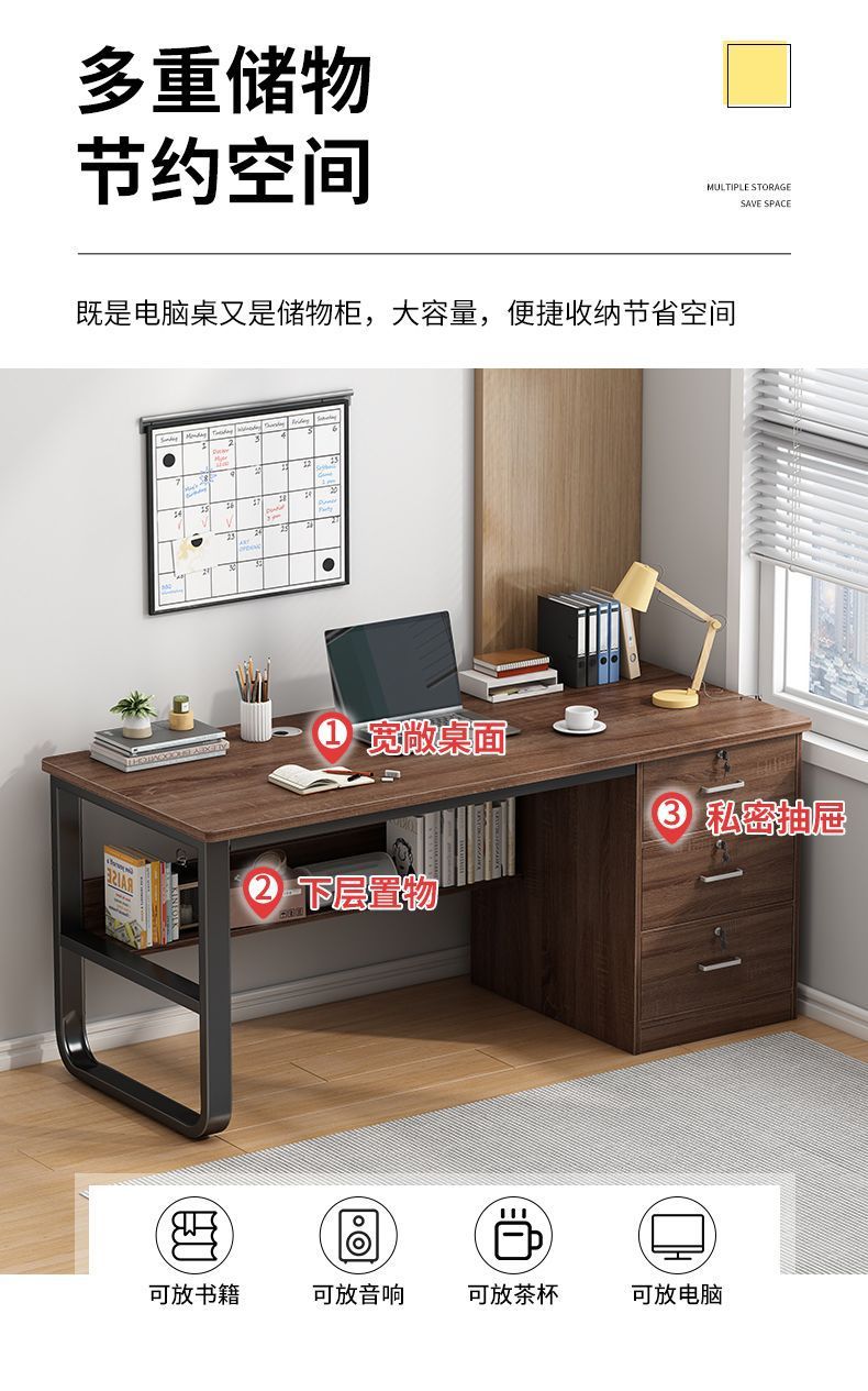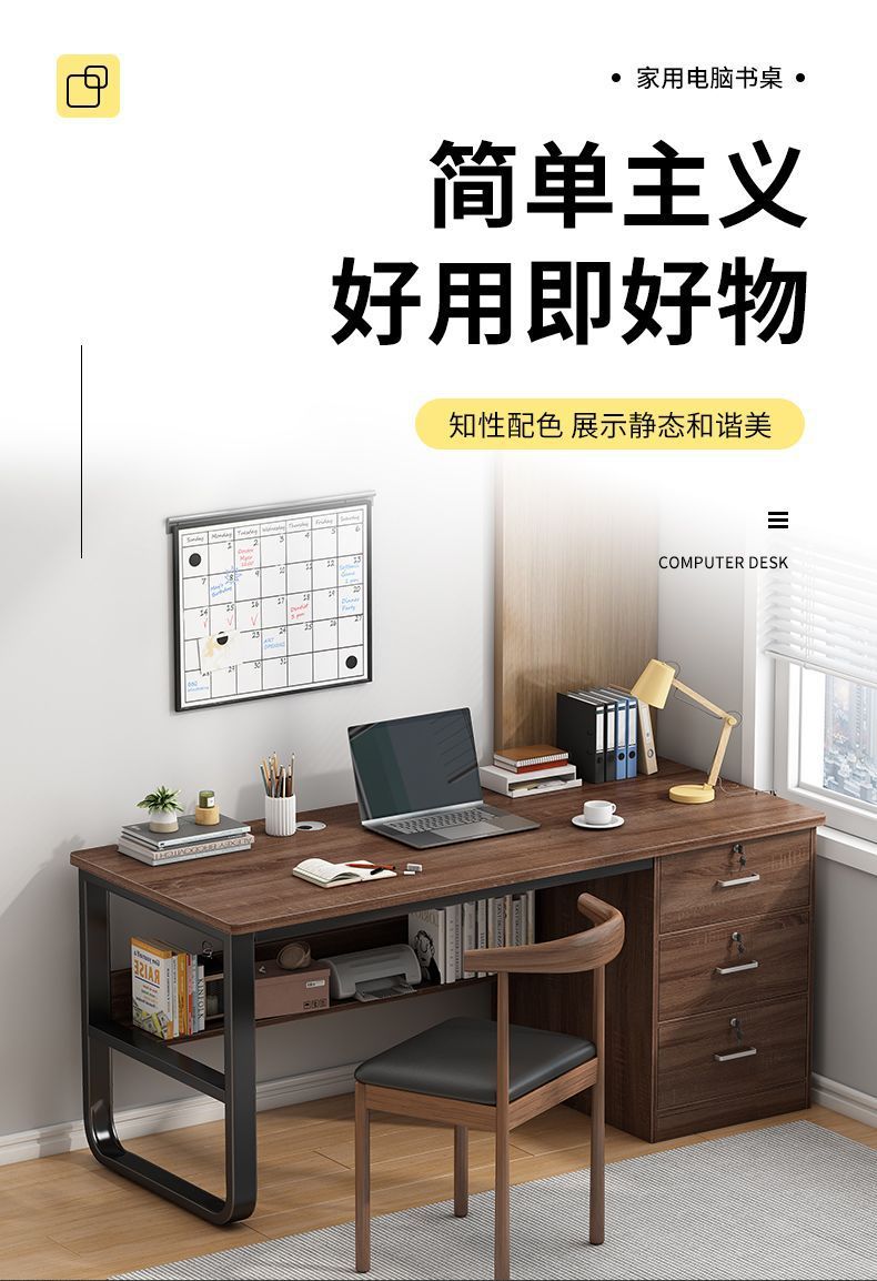 简易带抽屉办公桌出租屋电脑桌台式家用卧室书桌学生学习写字桌