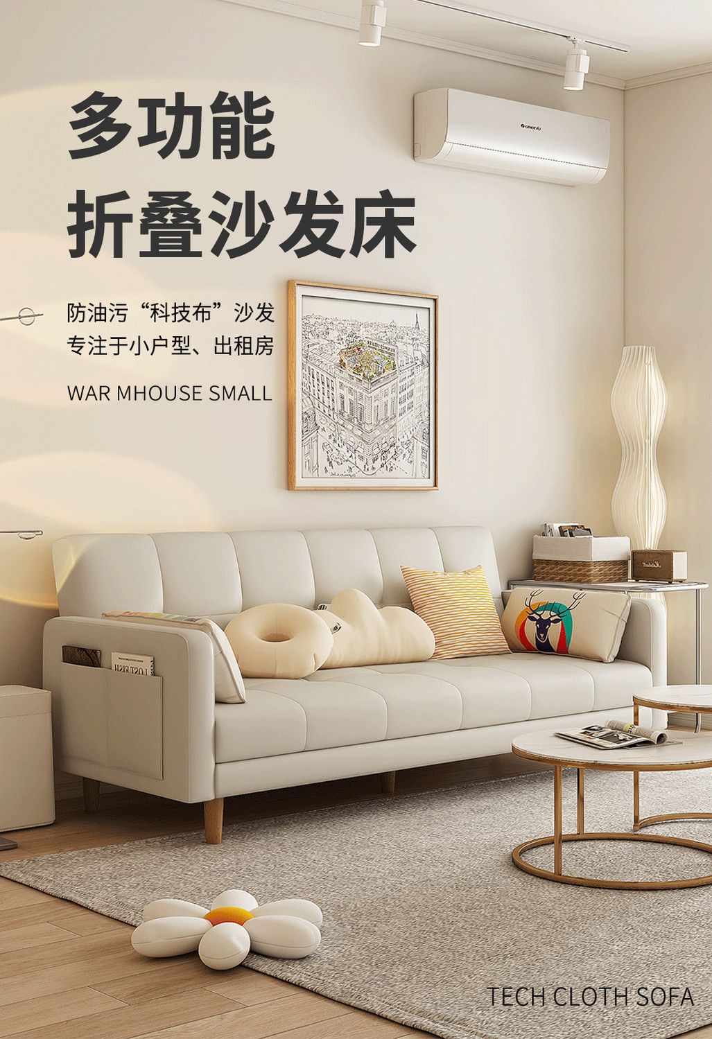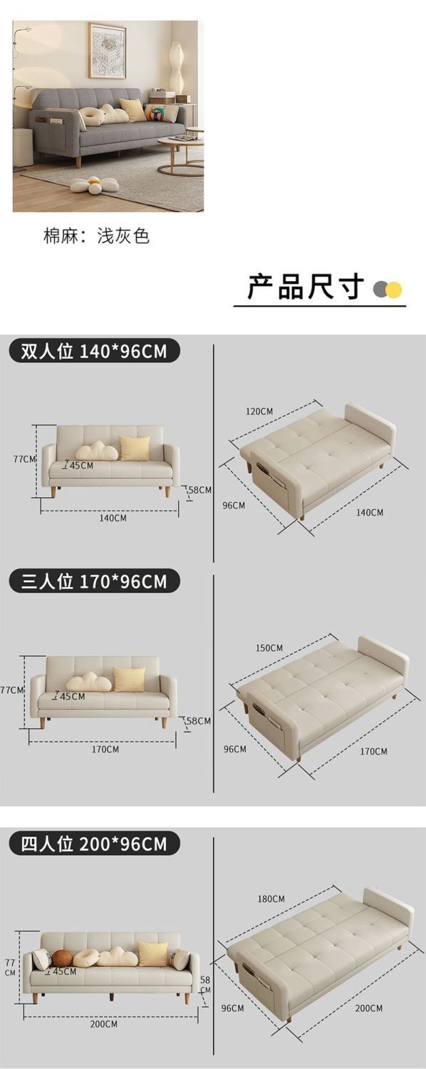 沙发小户型客厅沙发卧室简约现代出租房三人位折叠沙发床两用