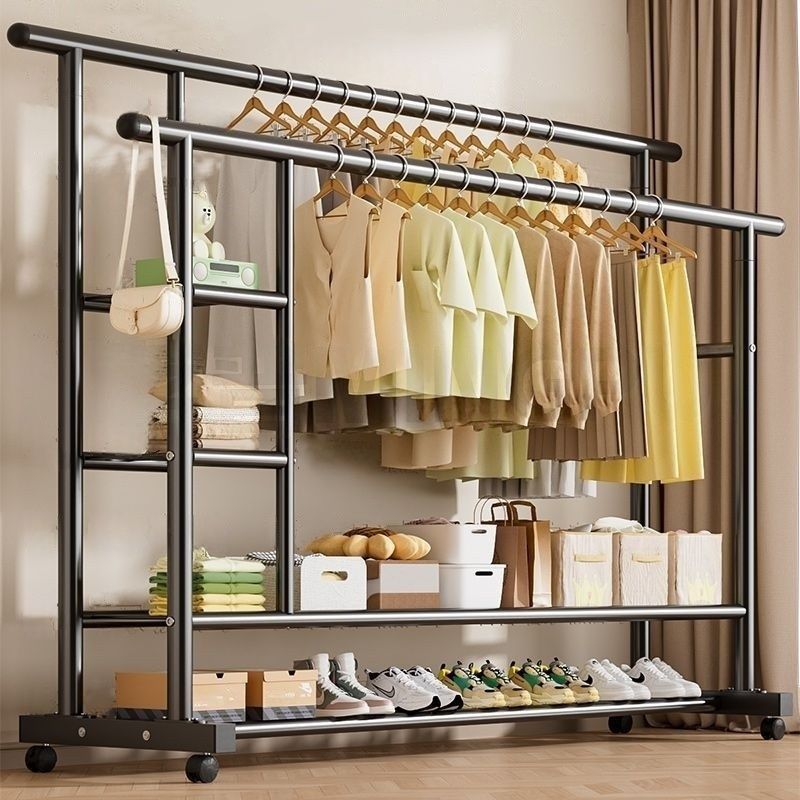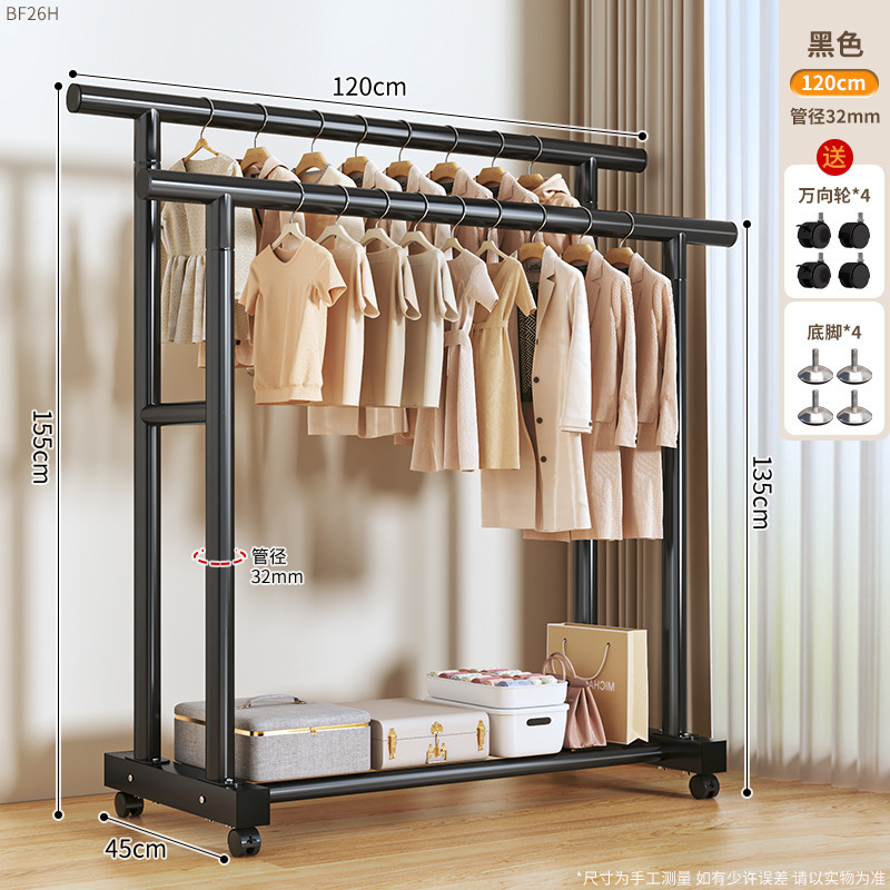 移动立式晾衣架家用挂衣架子宿舍出租屋加粗衣架落地式简易晾衣架
