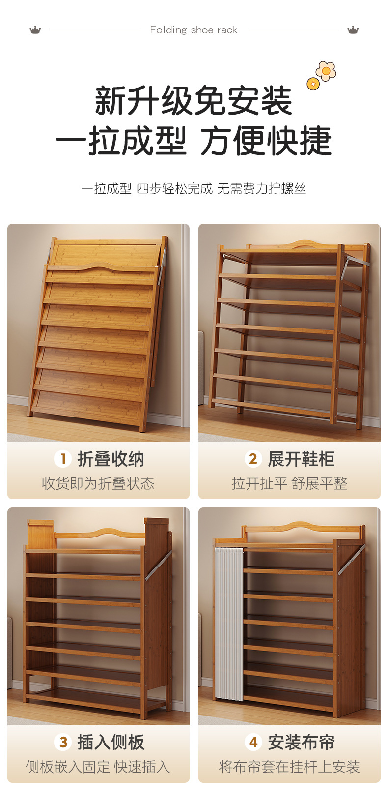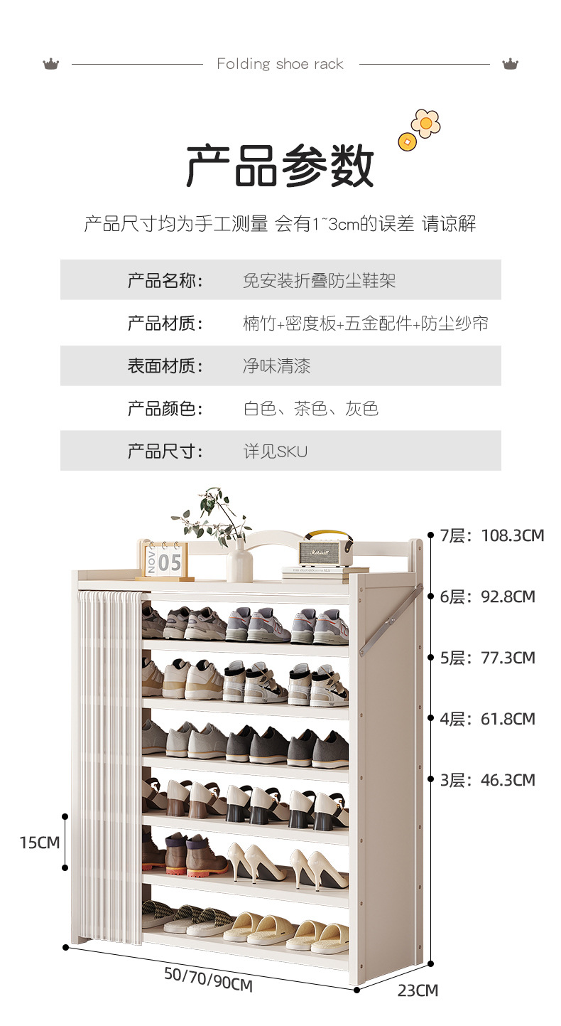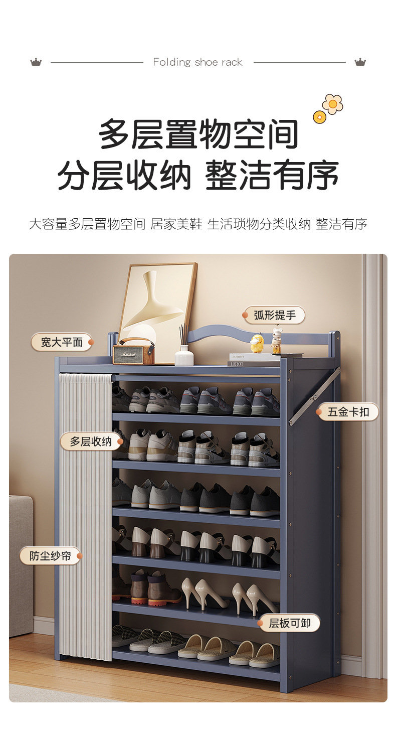 免安装简易入户防尘鞋柜折叠一拉鞋架子多层家用门口出租房用鞋架