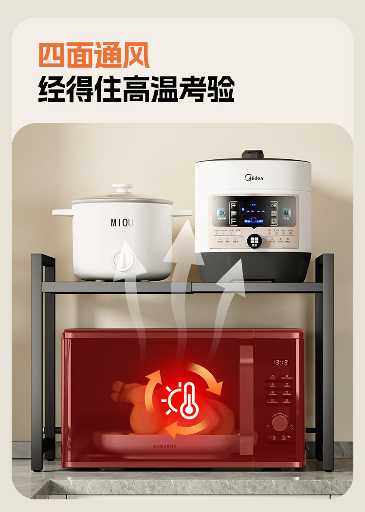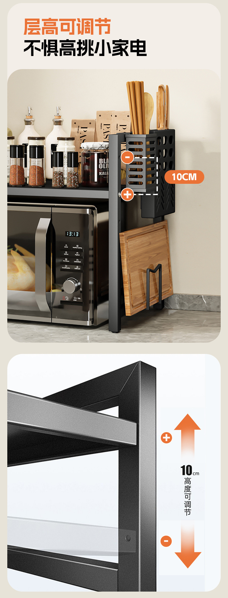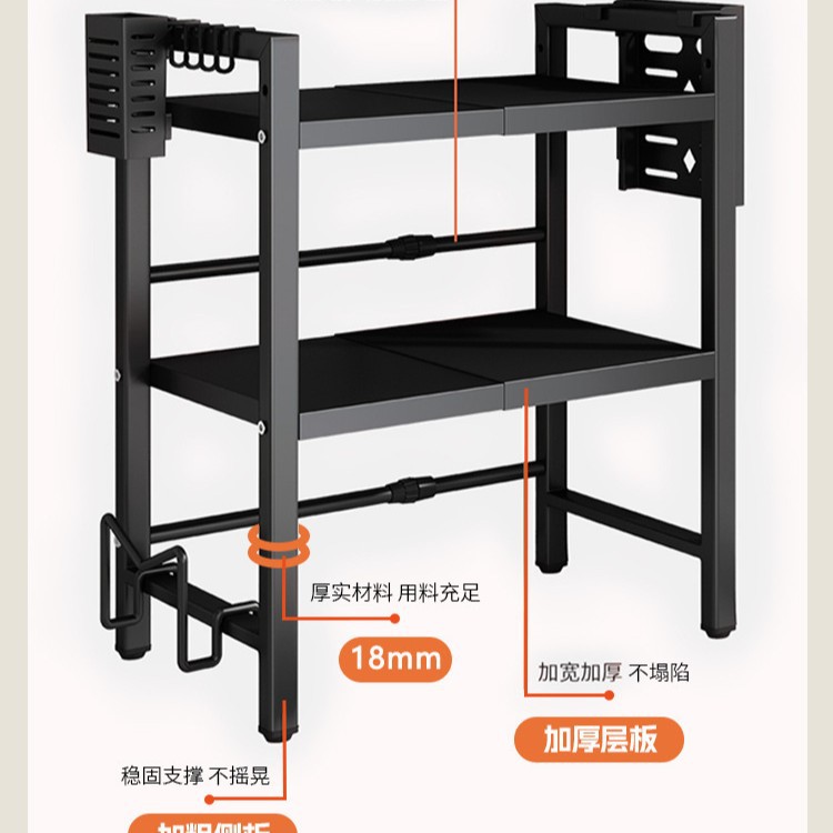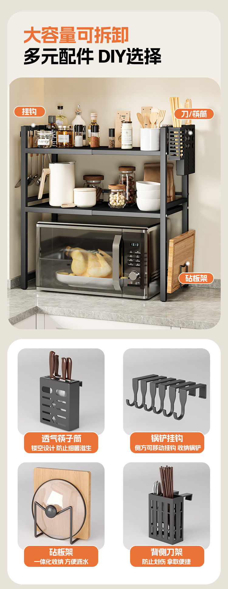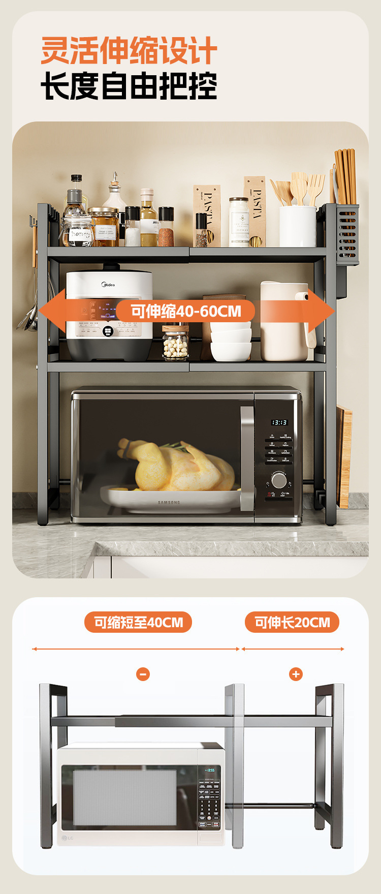厨房微波炉置物架 家用可伸缩收纳烤箱置物架 免打孔微波炉整理架