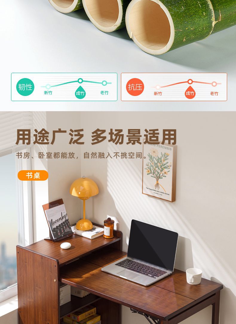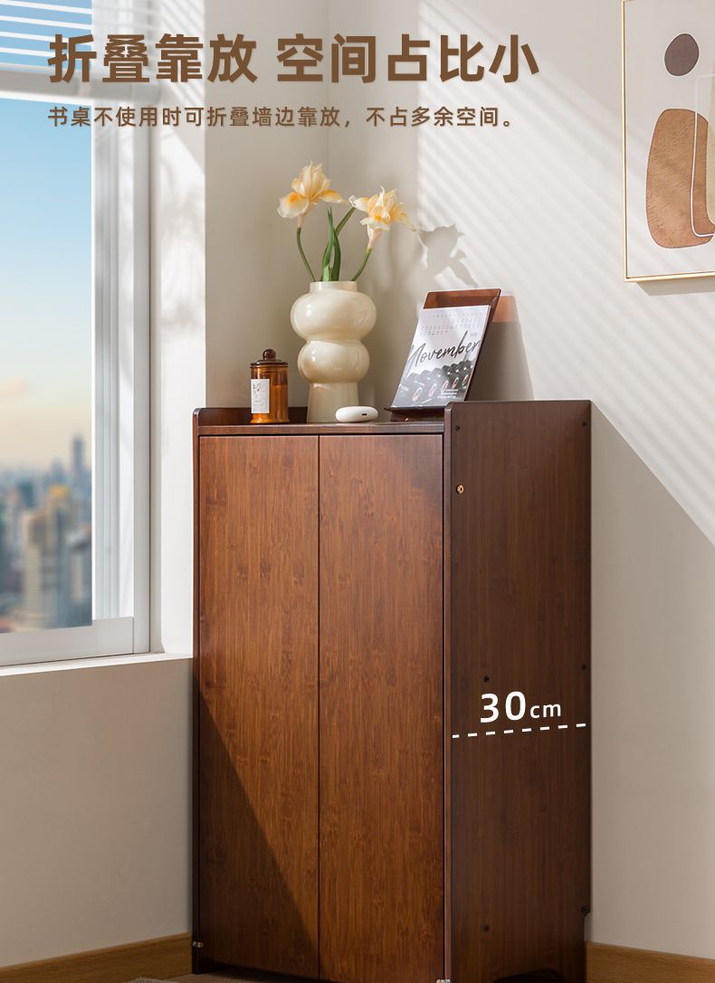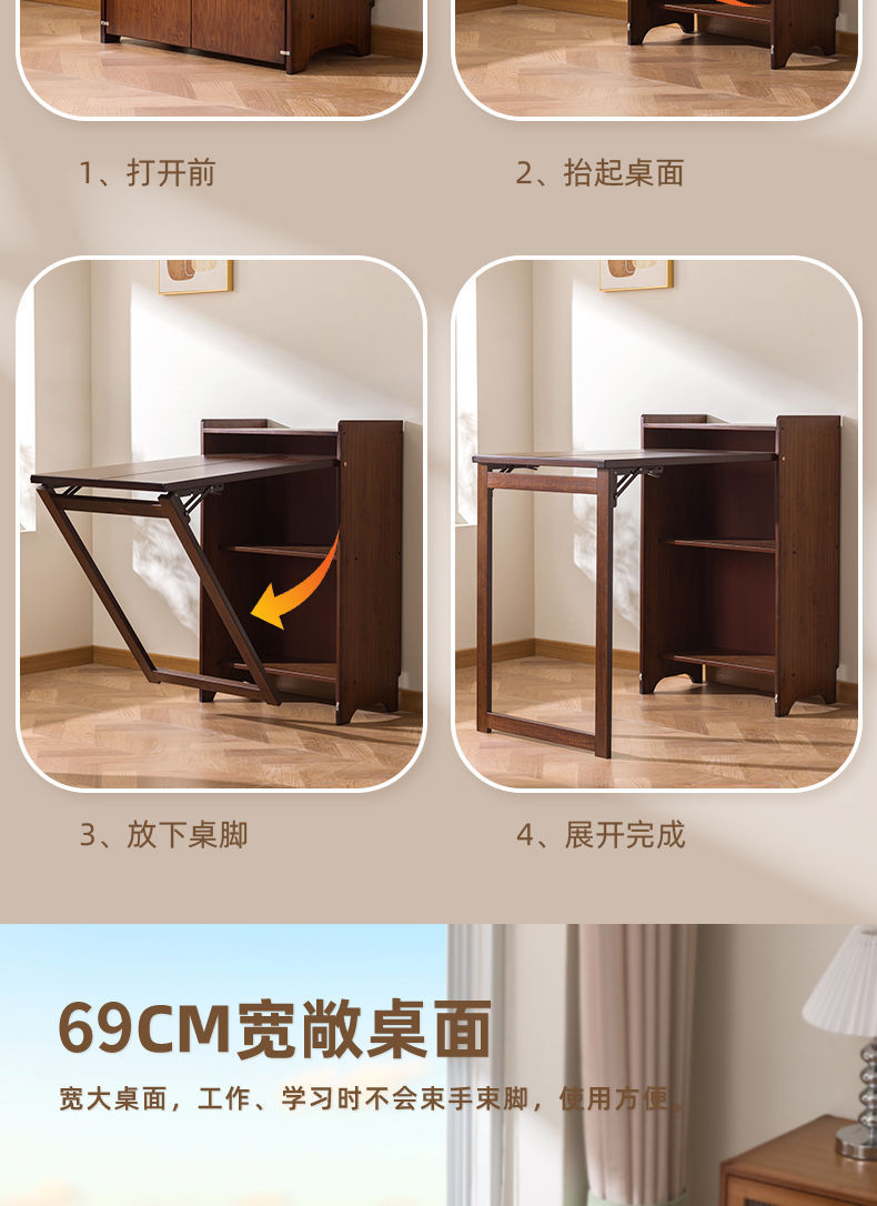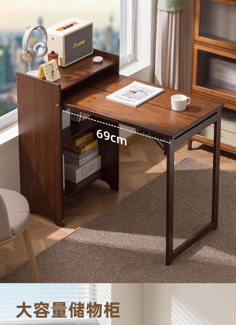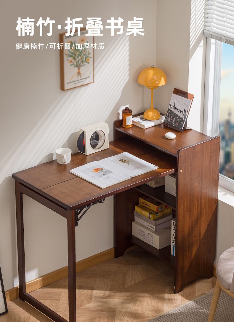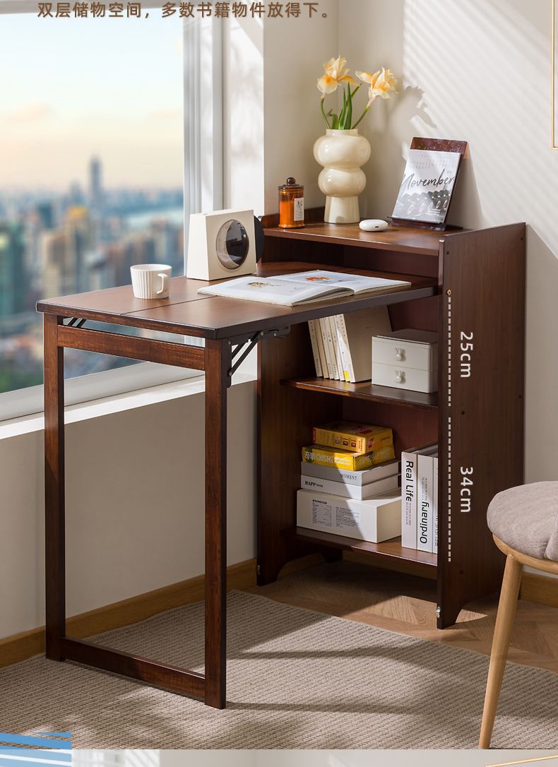 折叠书桌书柜一体家用小户型多功能电脑桌子工作台出租房简易餐桌