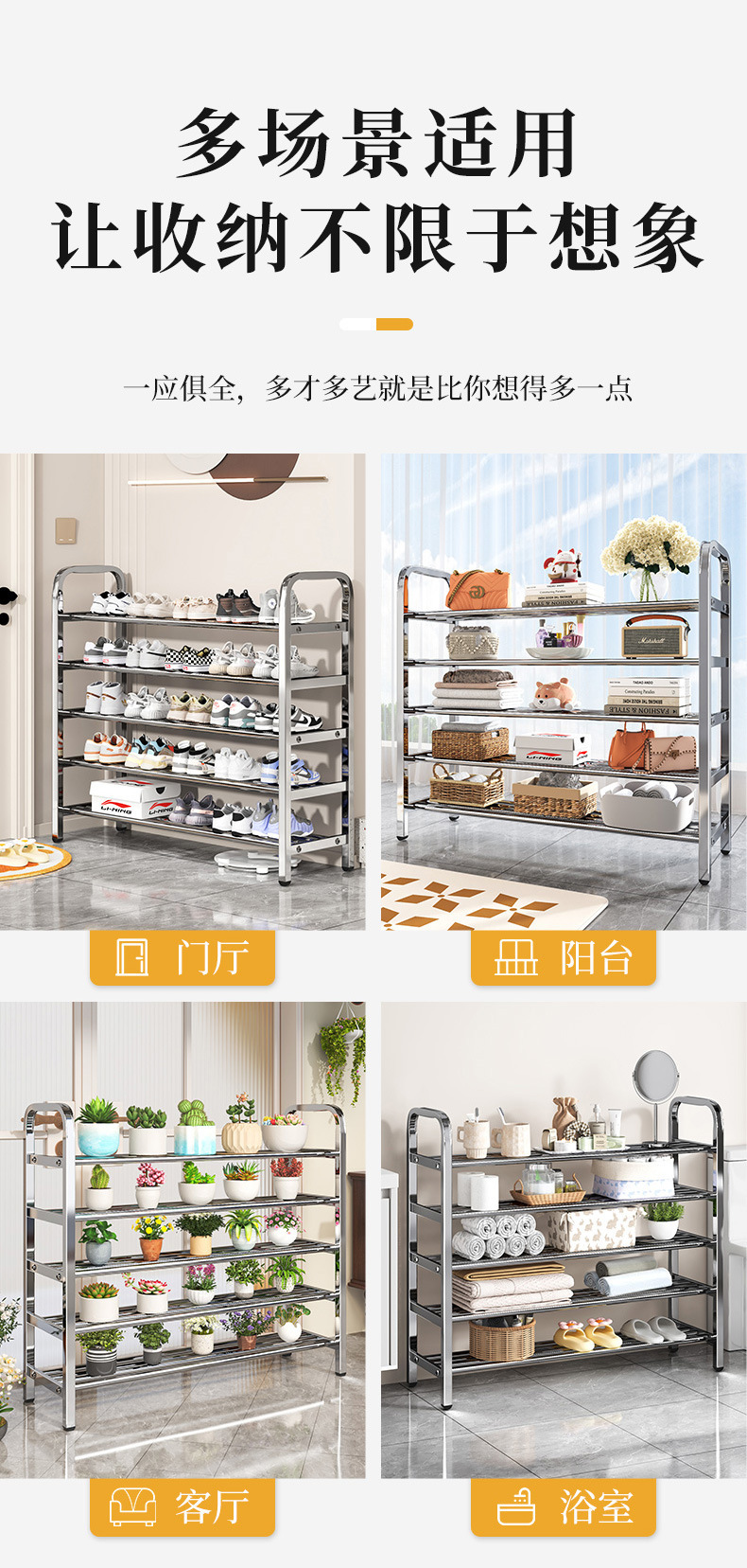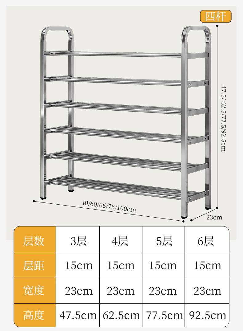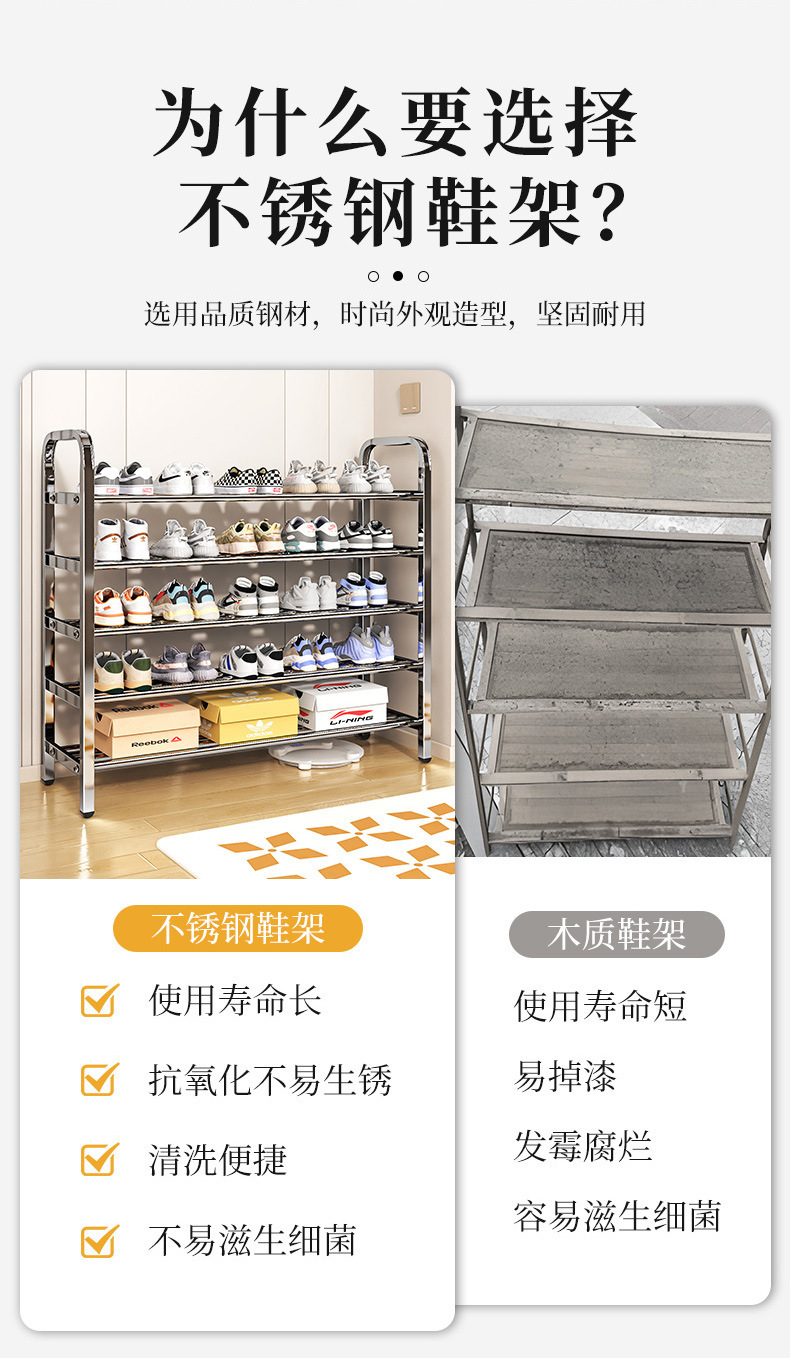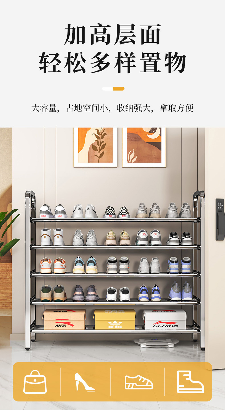 新款不锈钢简易鞋架家用多层室内鞋子收纳架宿舍门口出租房经济型