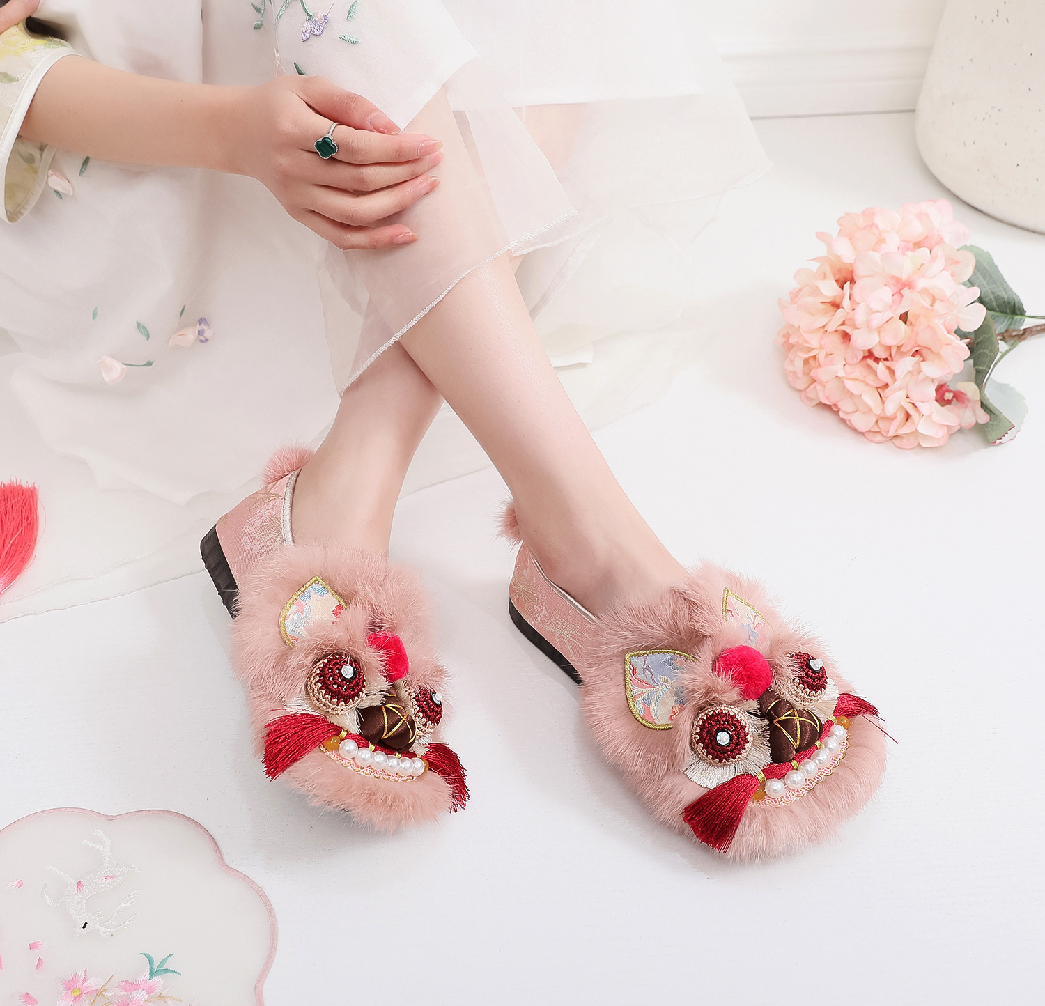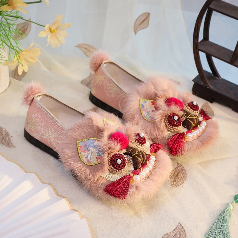 胭脂糯 单鞋平底虎头鞋手工制作布鞋国风复古女鞋非遗新中式鞋