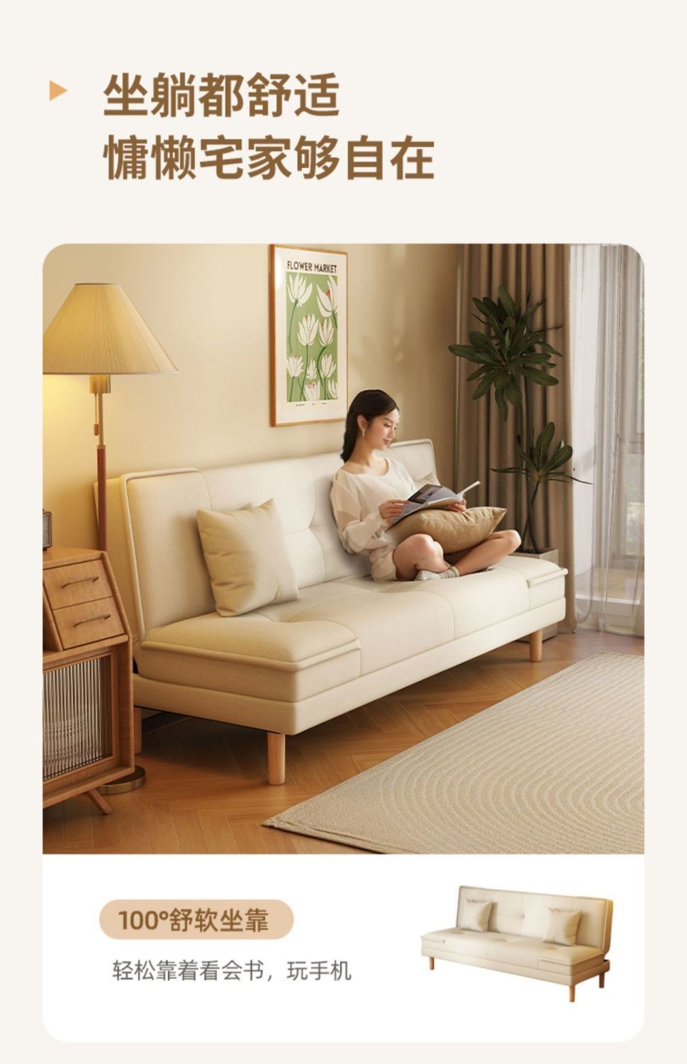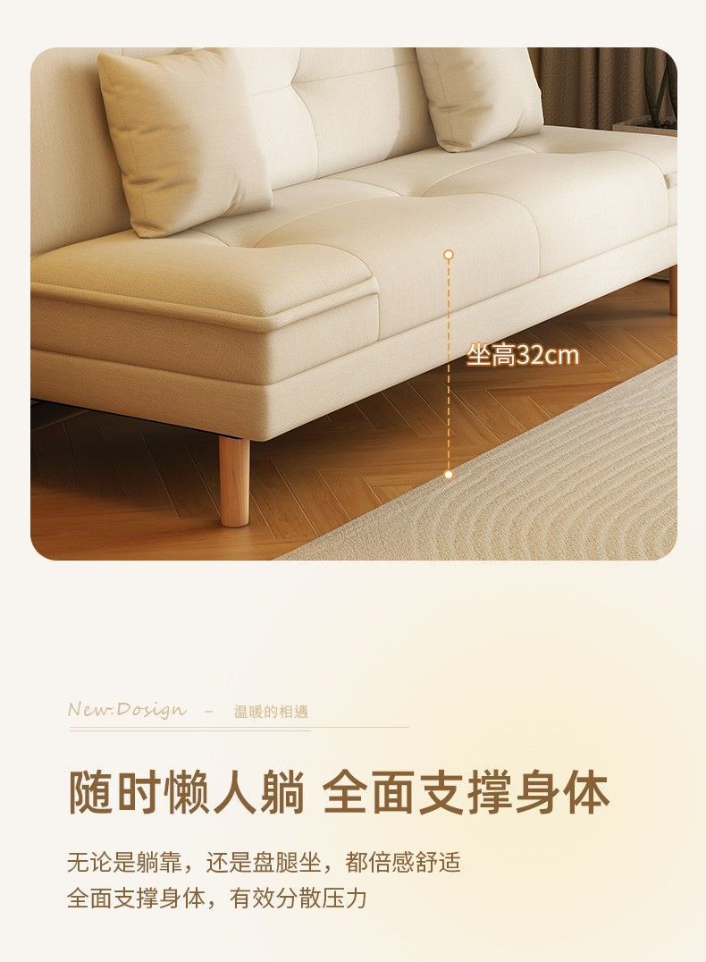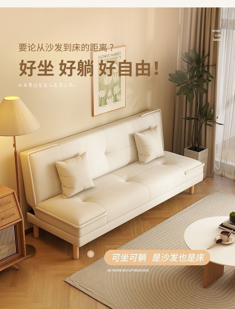 2025新款沙发床沙发出租房客厅卧室折叠实木两用简约布艺沙发公寓