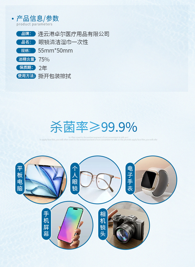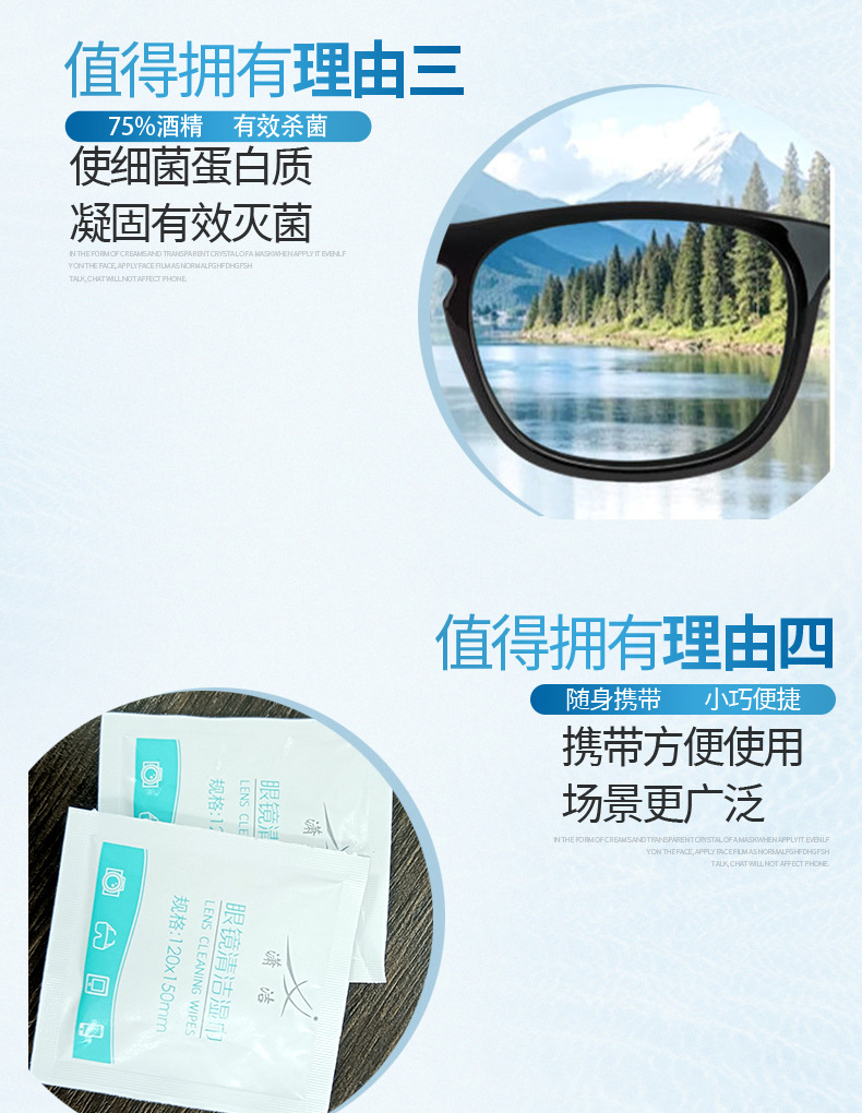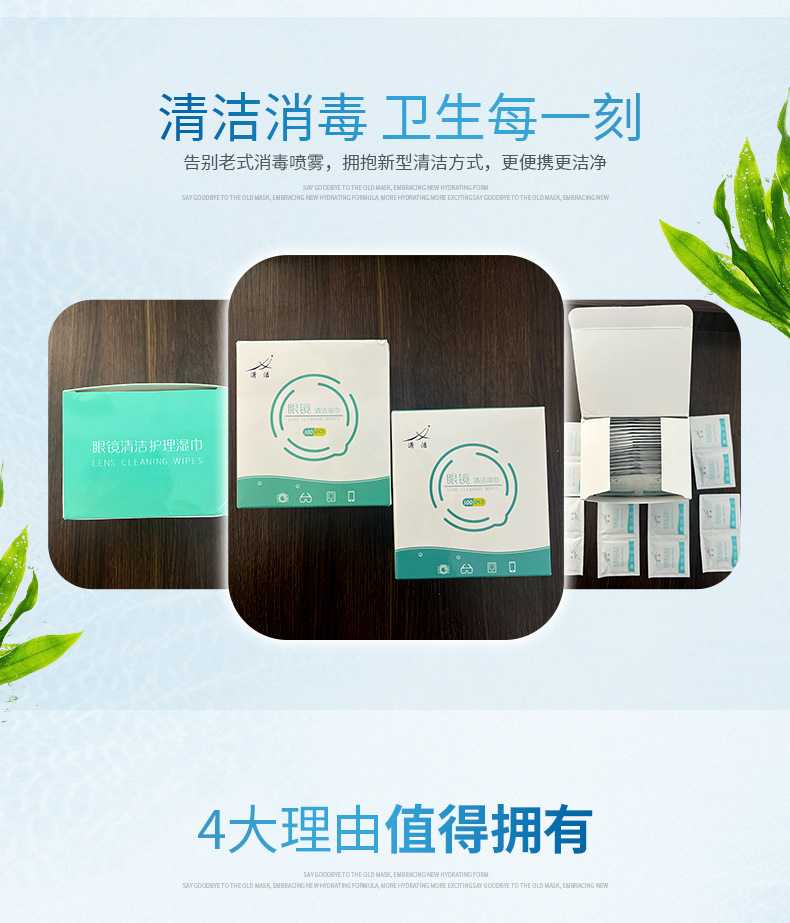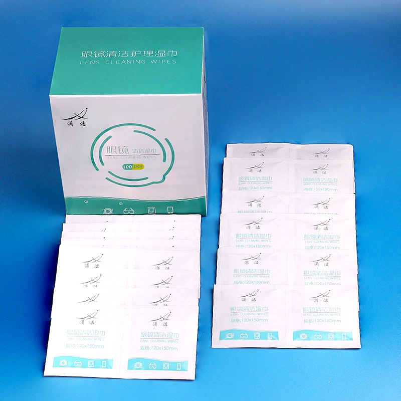 酒精湿巾75度擦镜片专用一次性清洁湿巾纸眼镜片湿巾盒装100片装