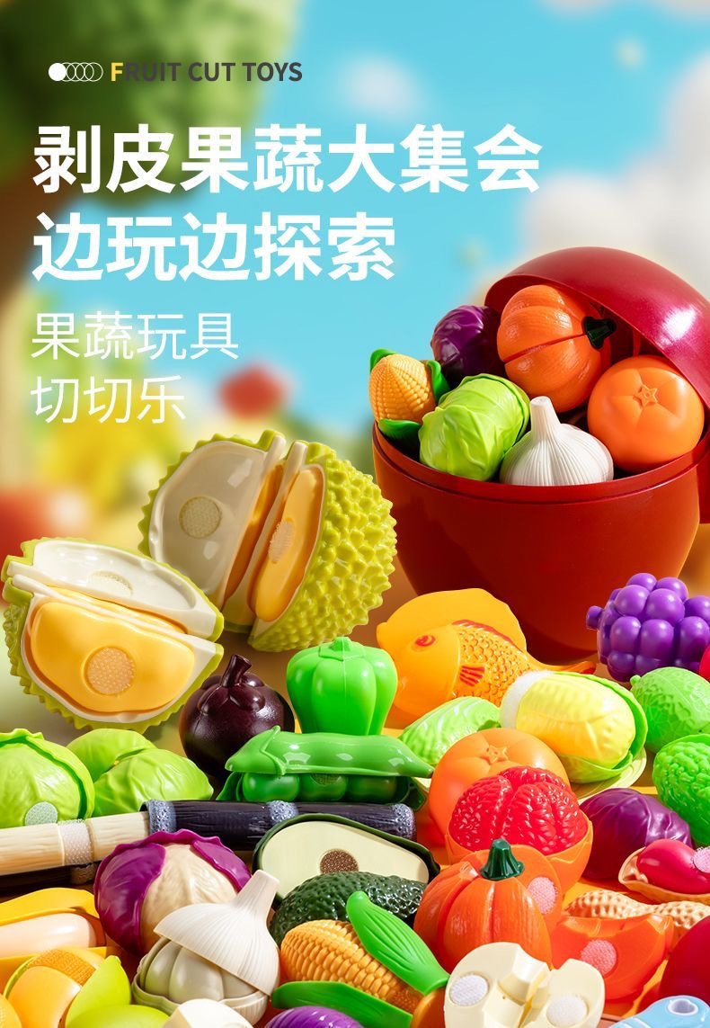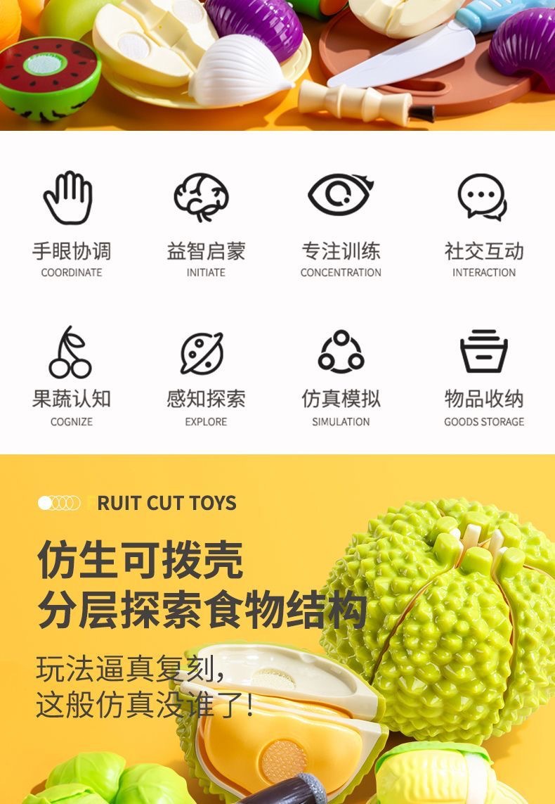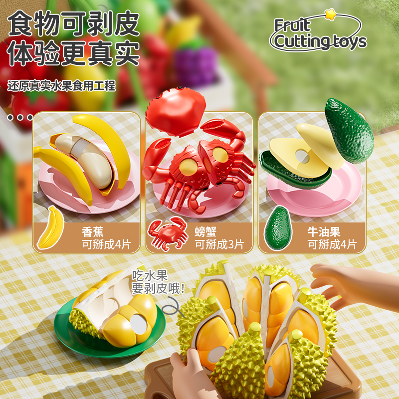 儿童水果切切乐玩具仿真蔬菜小孩可剥皮可啃咬果蔬榴莲女孩过家家