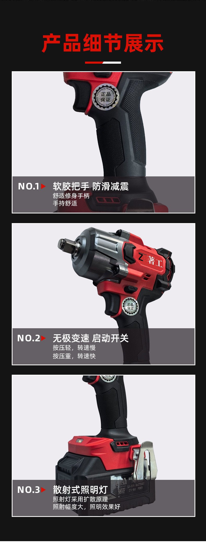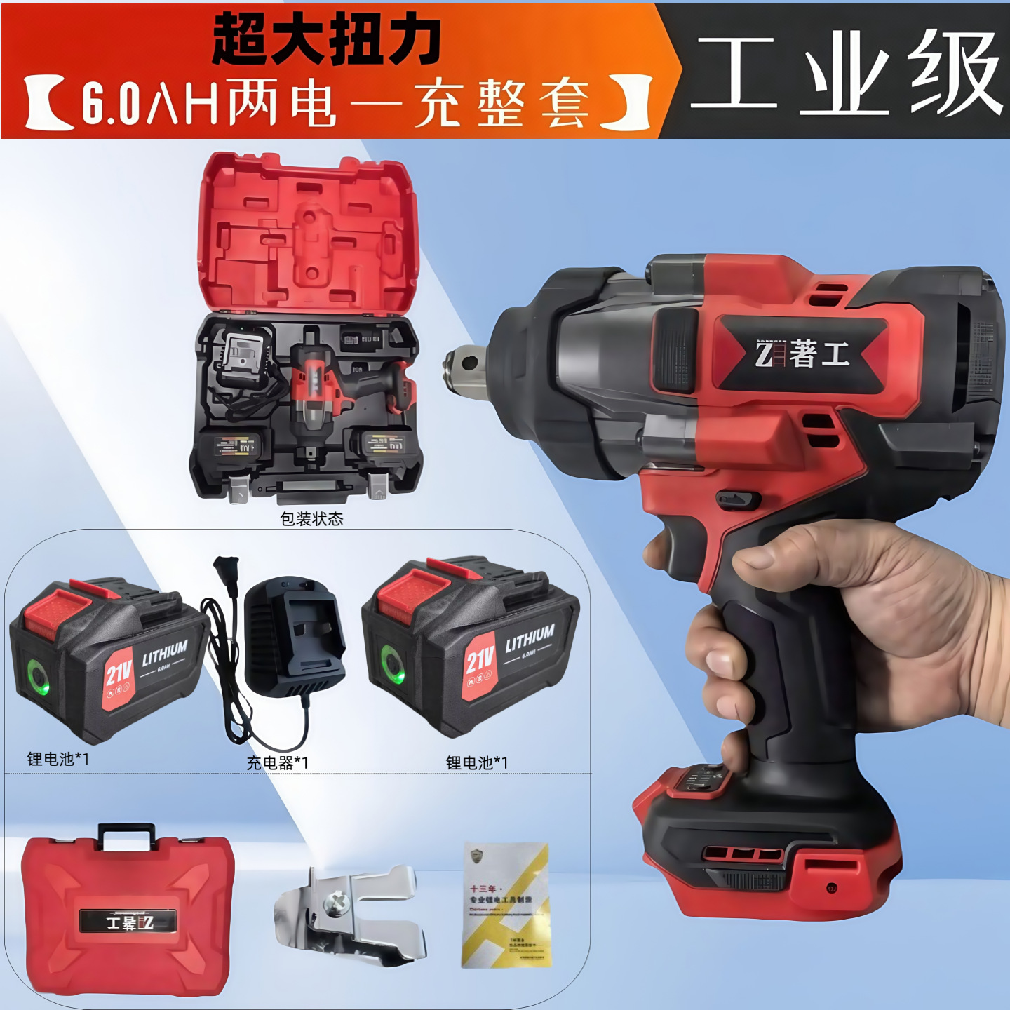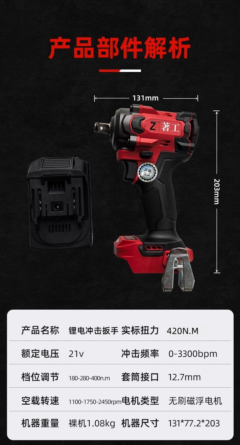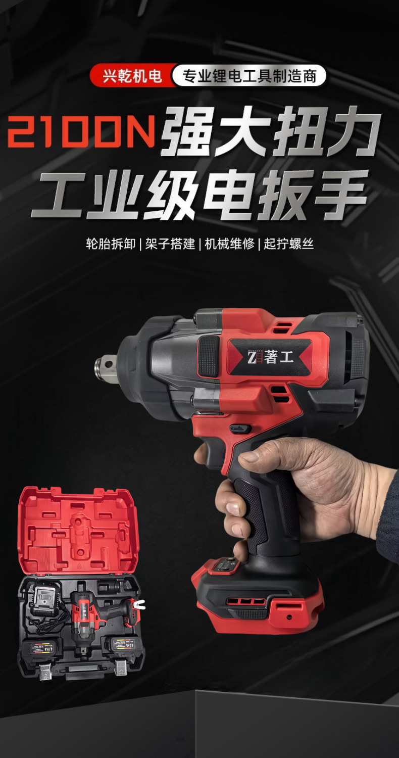 无刷锂电扳手充电式冲击大扭力锂电池汽车木工专用风炮锂电无刷