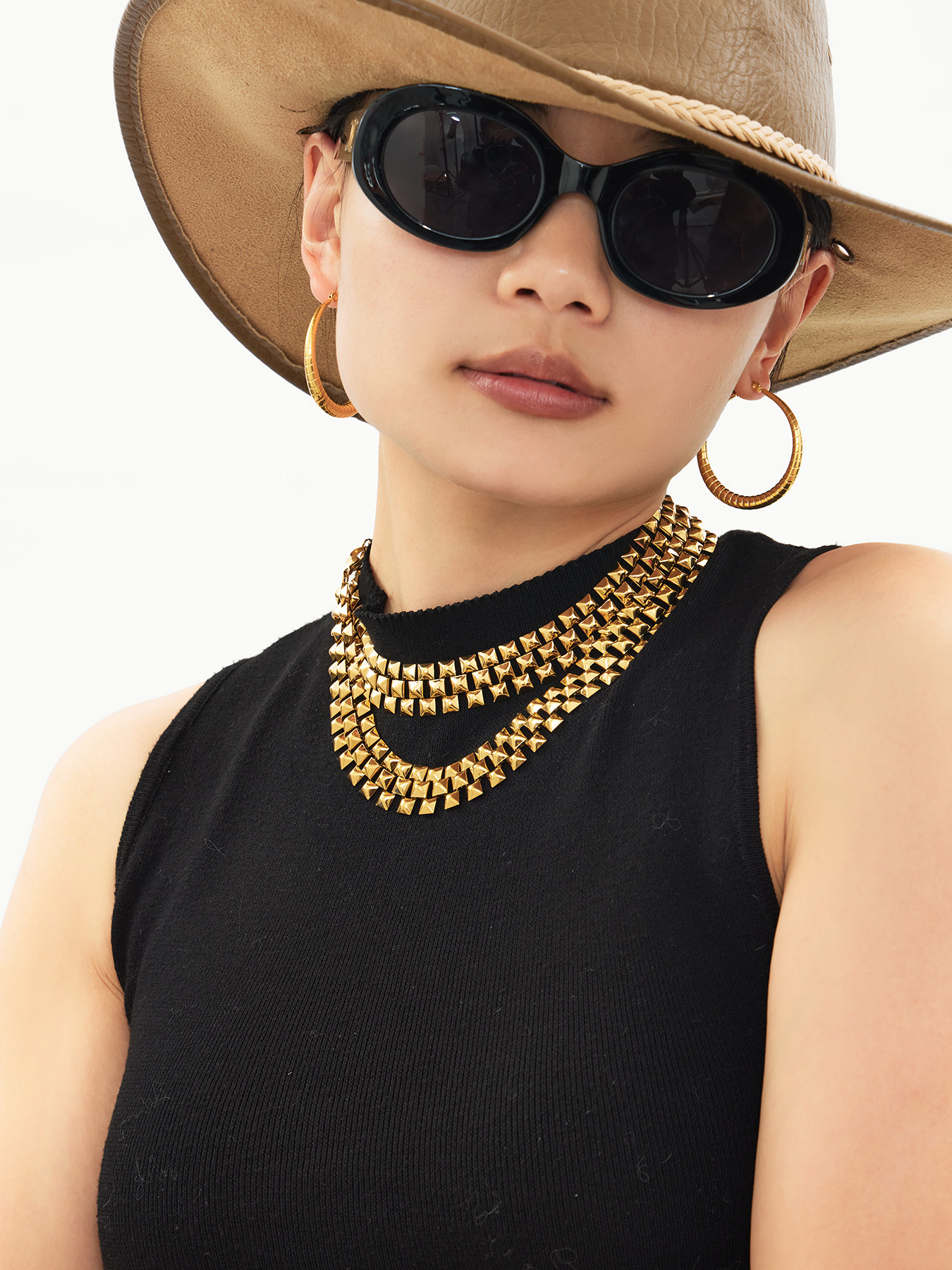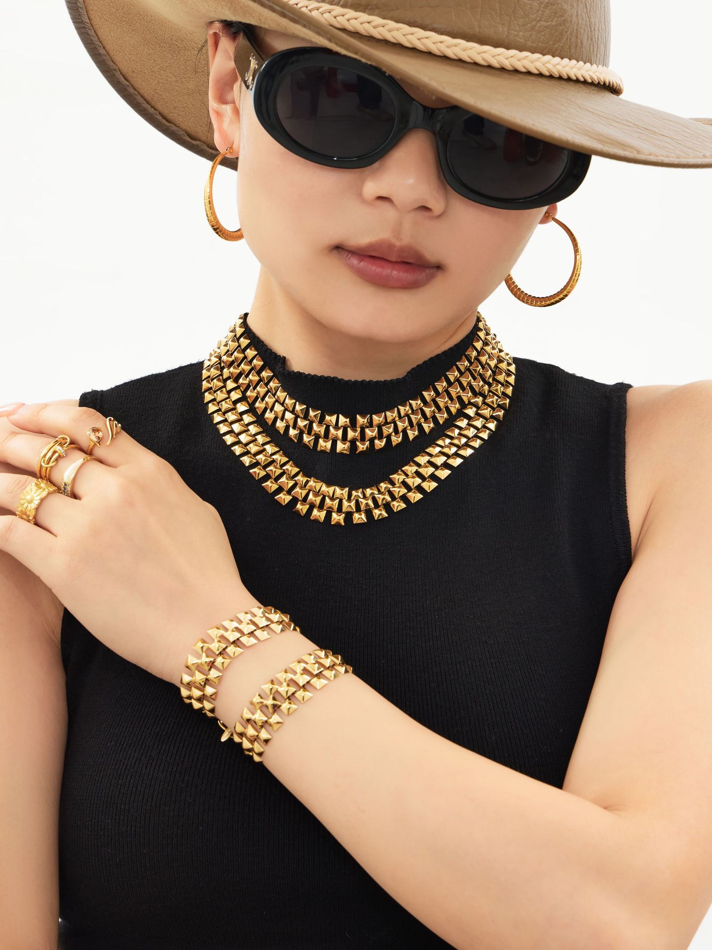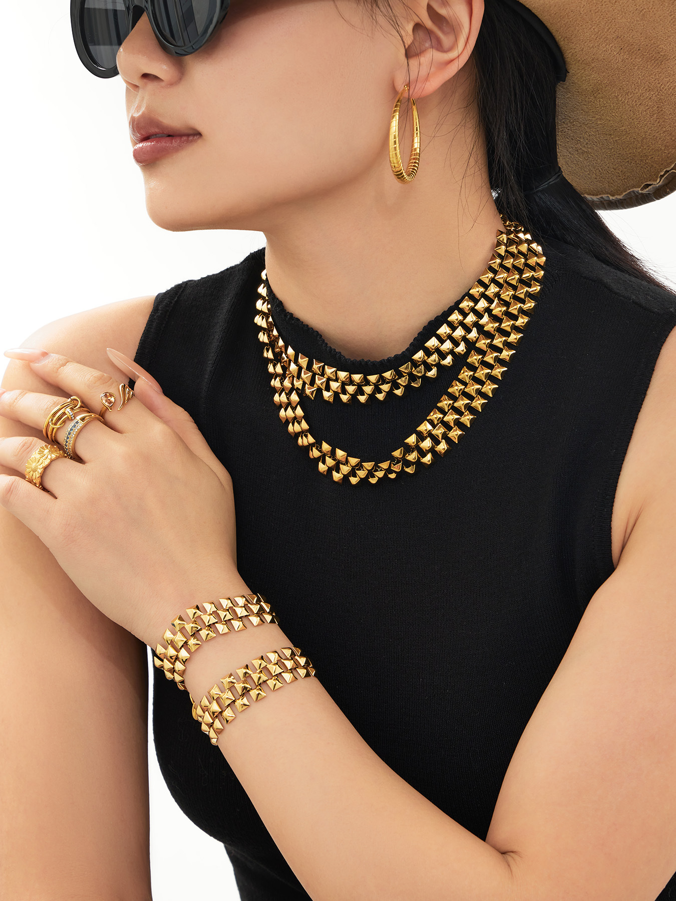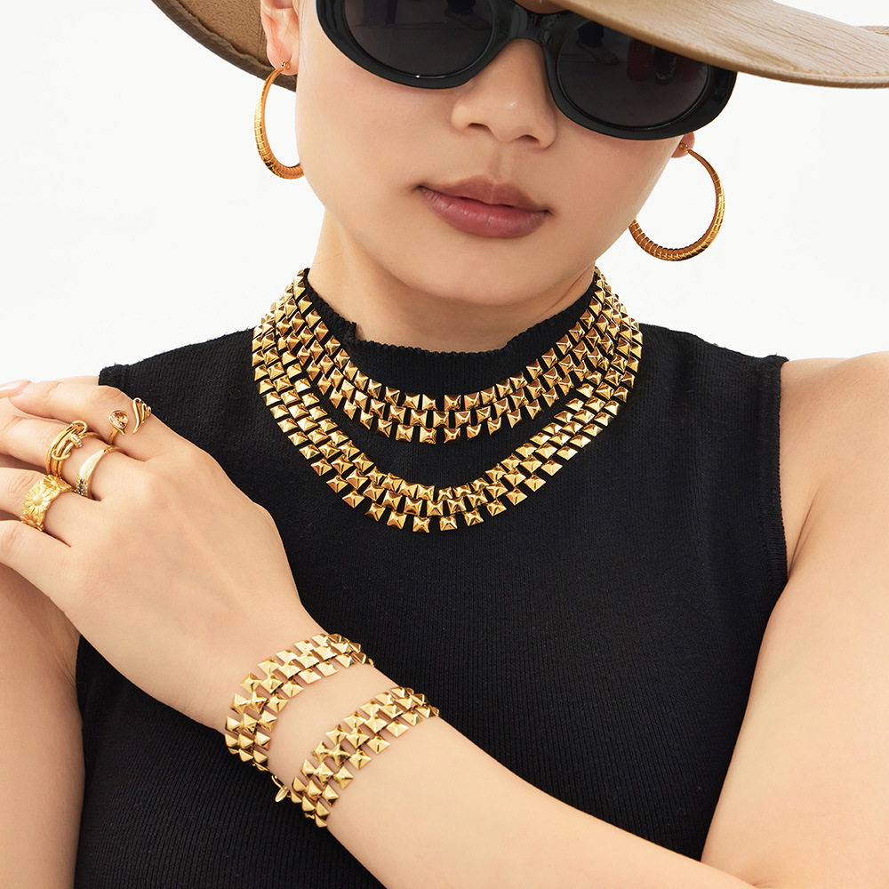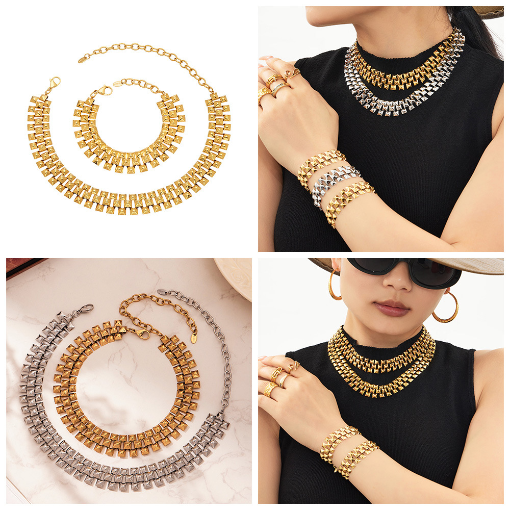 谜丽欧美INS风粗链不锈钢项链手链女小众设计高级感夸张首饰套装