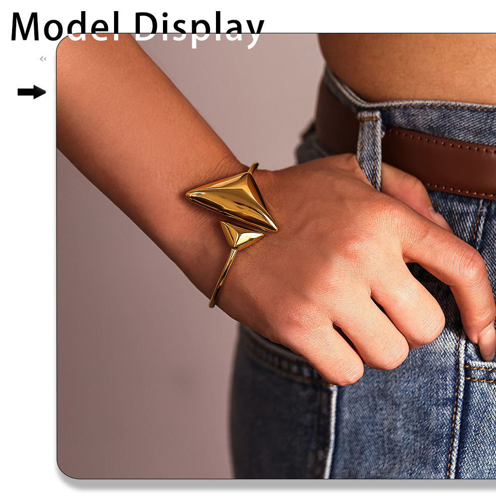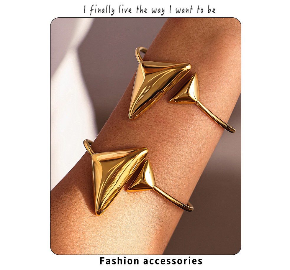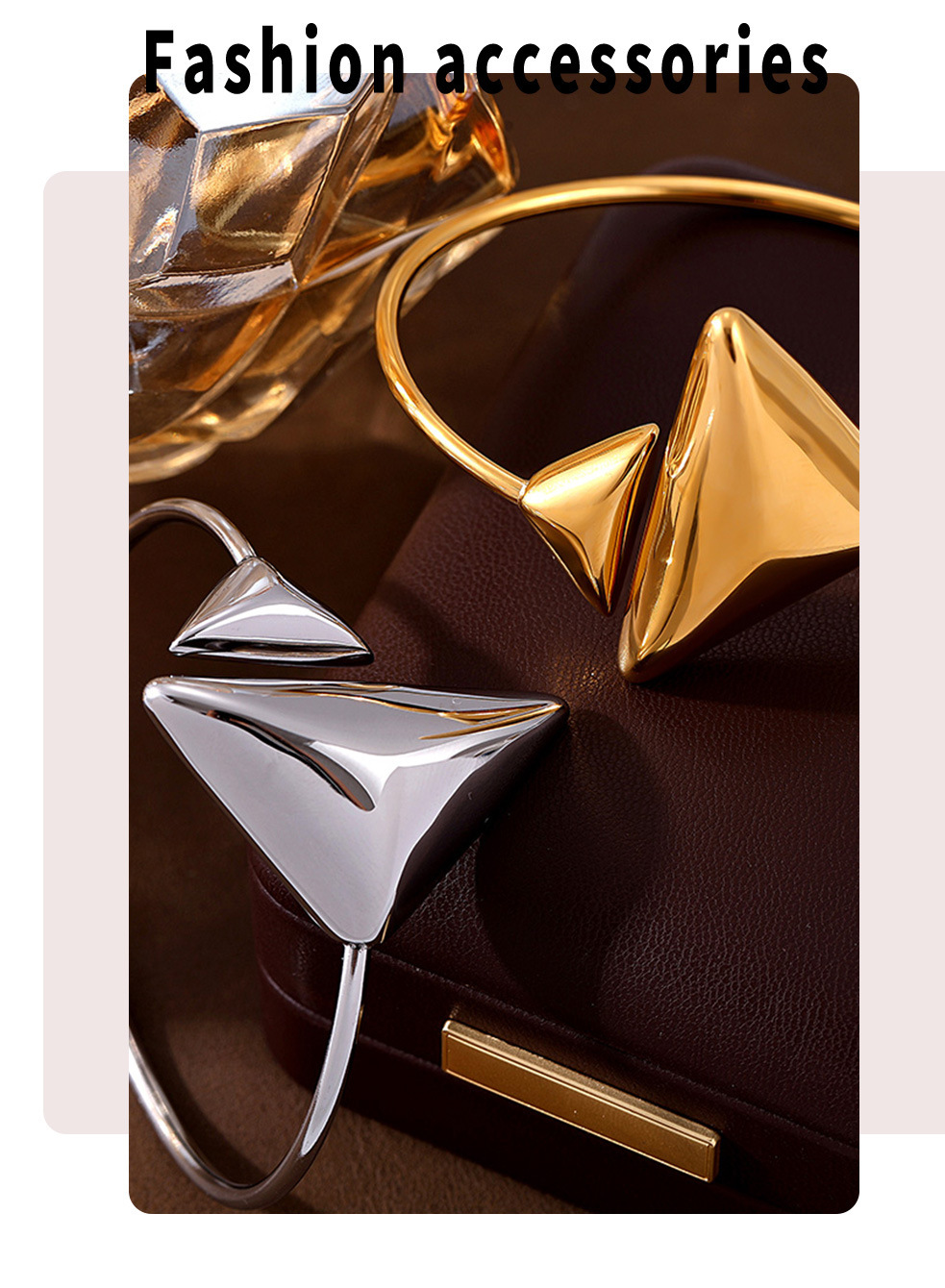 谜丽ins不锈钢弹簧大小三角开口配件手镯轻奢感简约镀18K真金保色