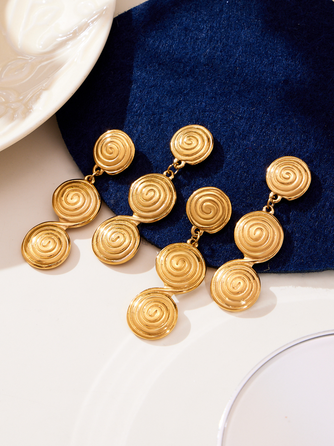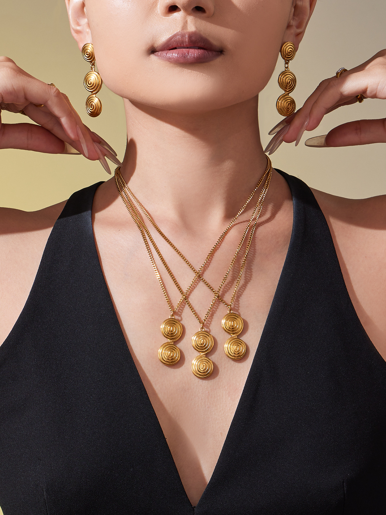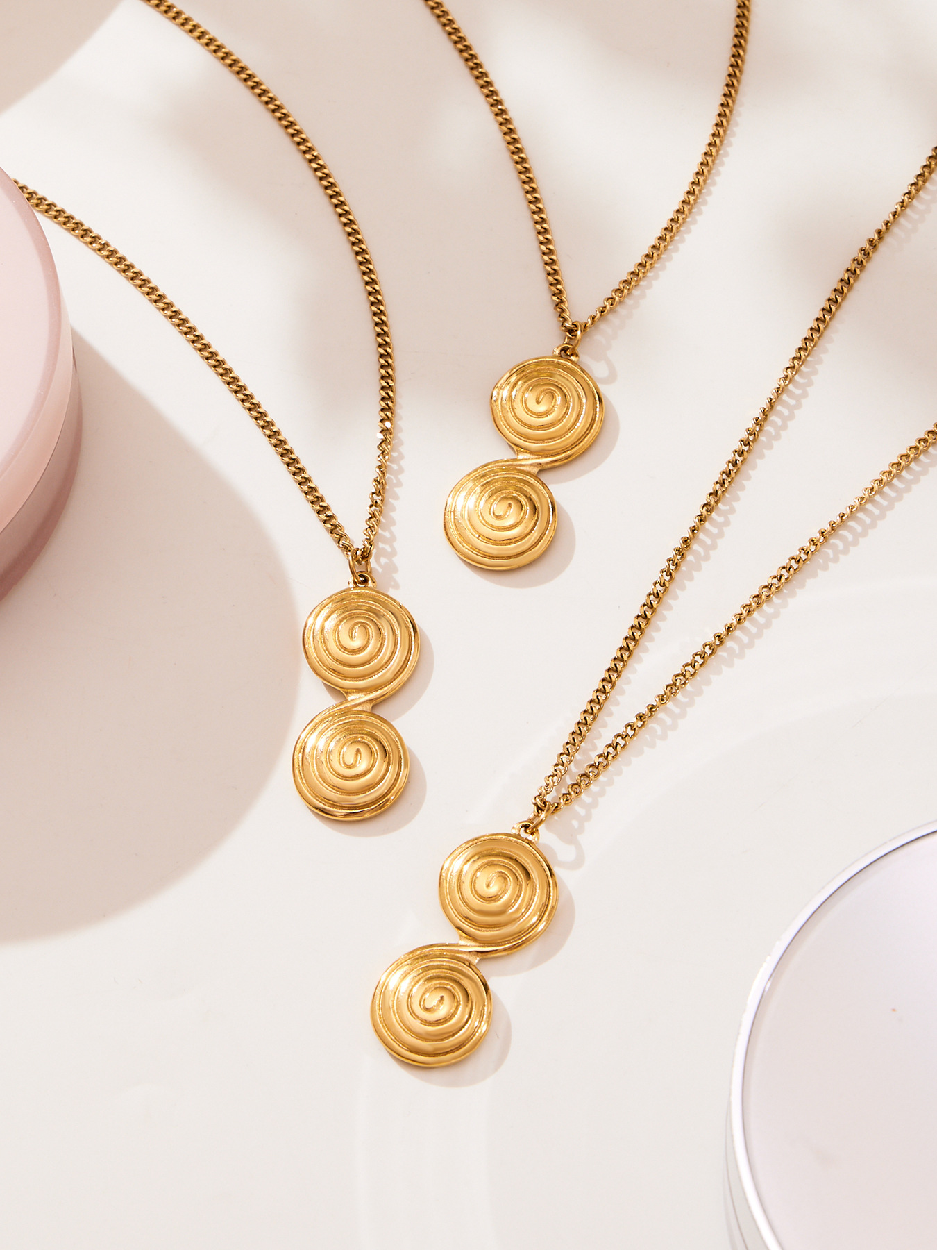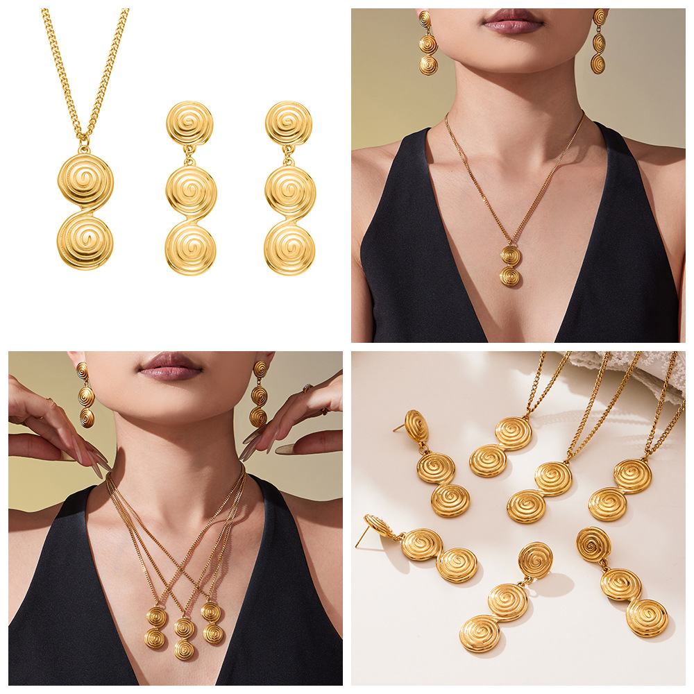 谜丽 极简风不锈钢螺纹圈圈耳环耳坠锁骨链 气质时尚珠宝首饰保色