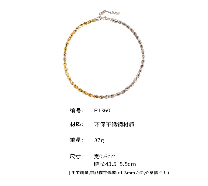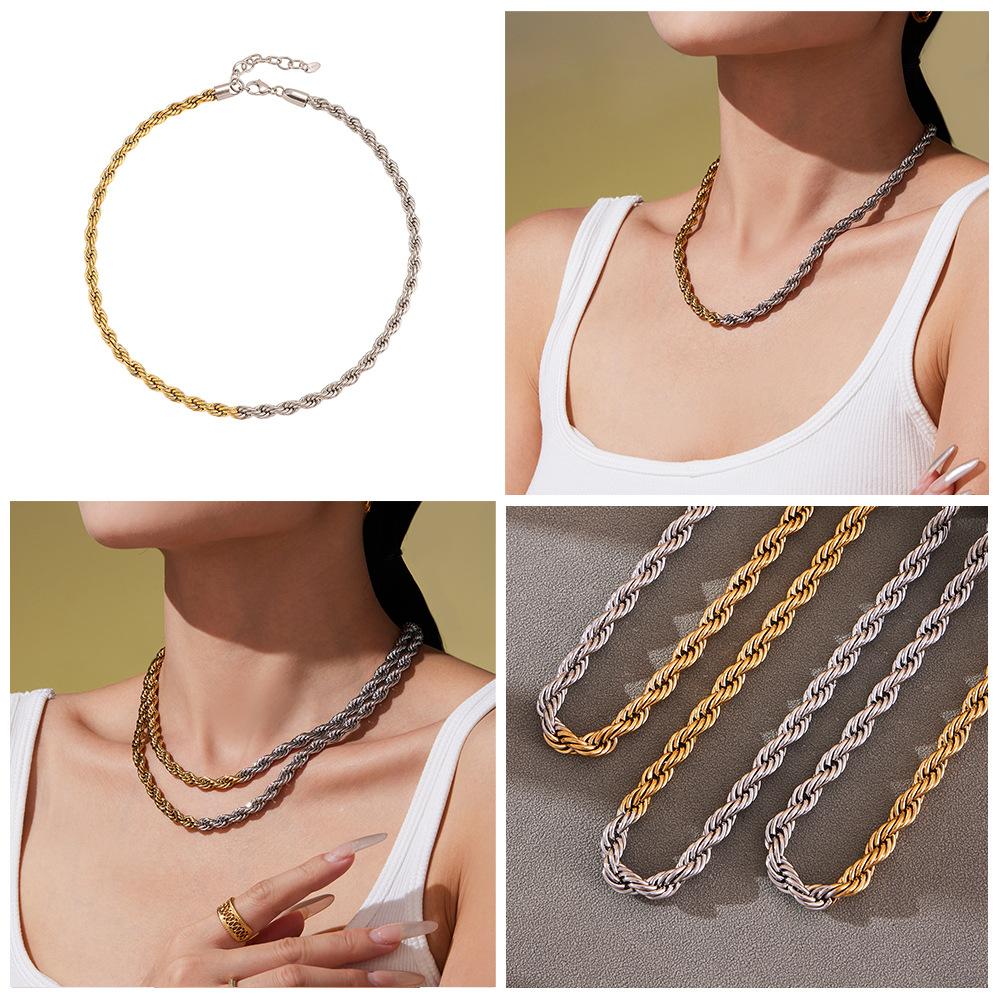 谜丽饰品环保钛钢加粗拼色麻花链夸张重工PVD镀金锁骨链跨境专供