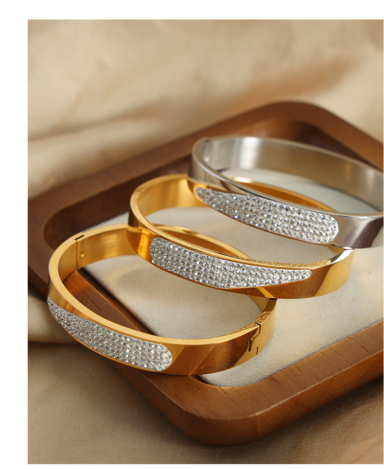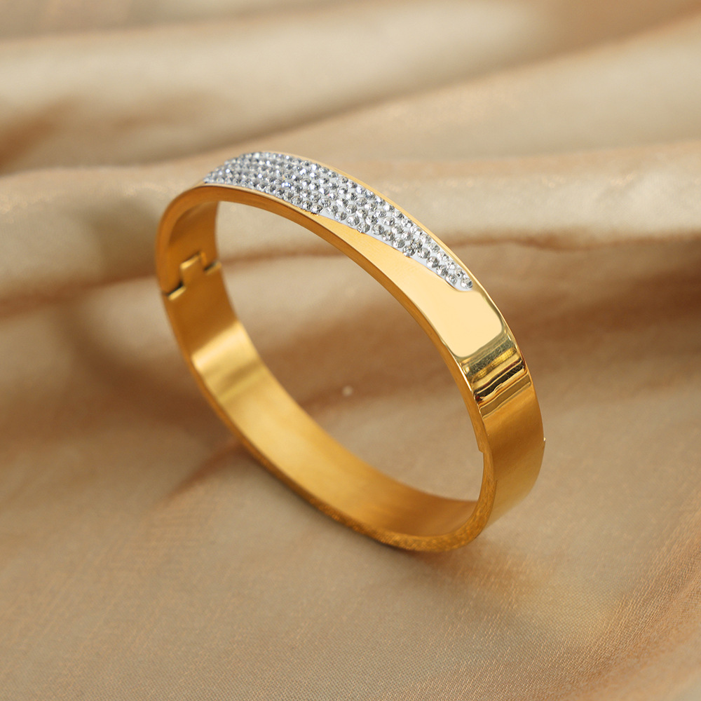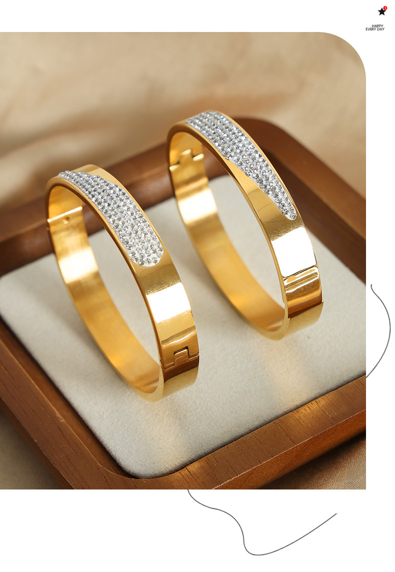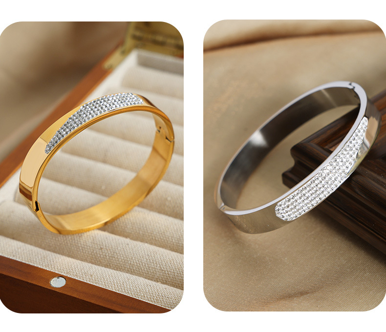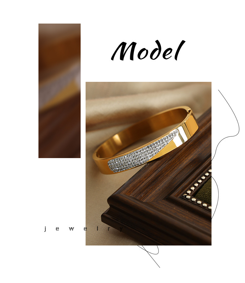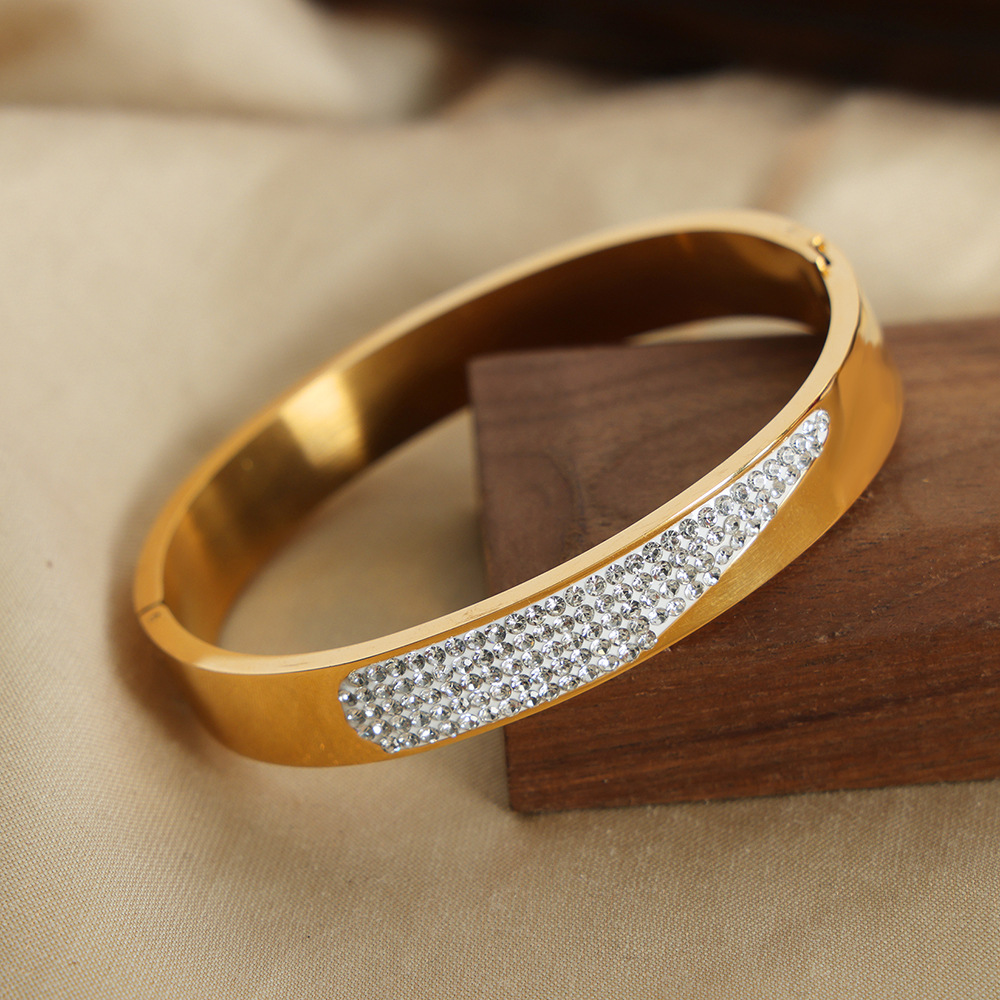 欧美新款高级感轻奢时尚小众设计个性钛钢镀金镶捷克钻手镯饰品女