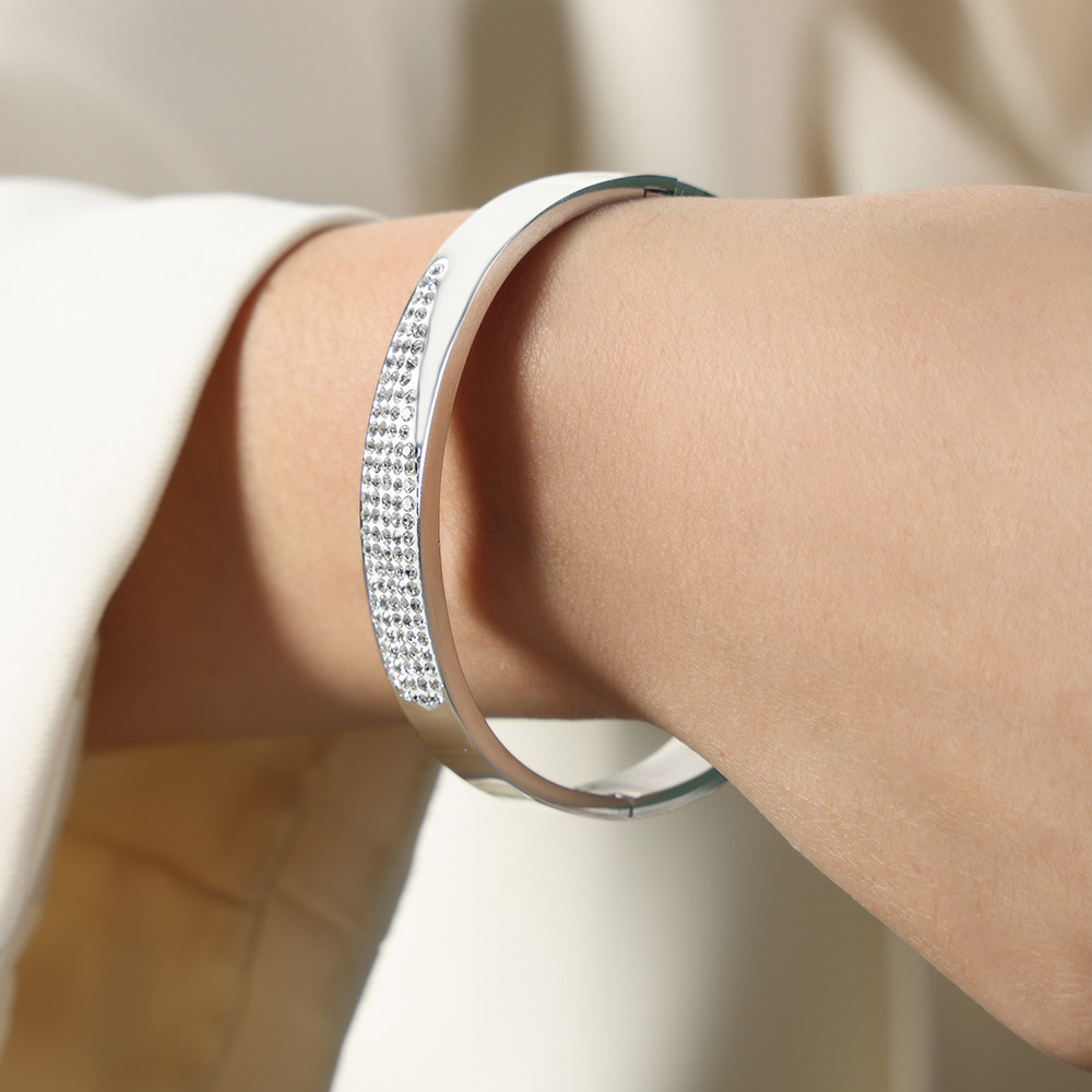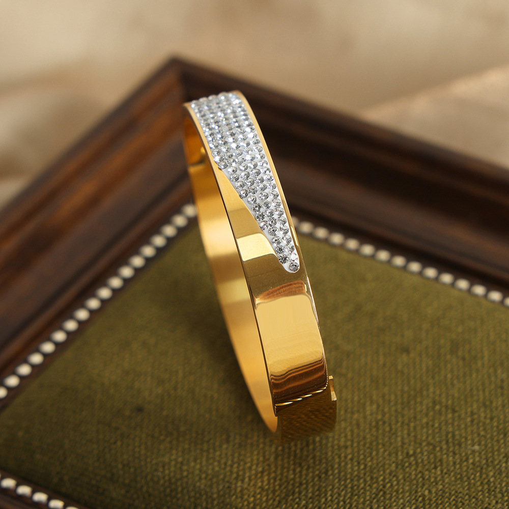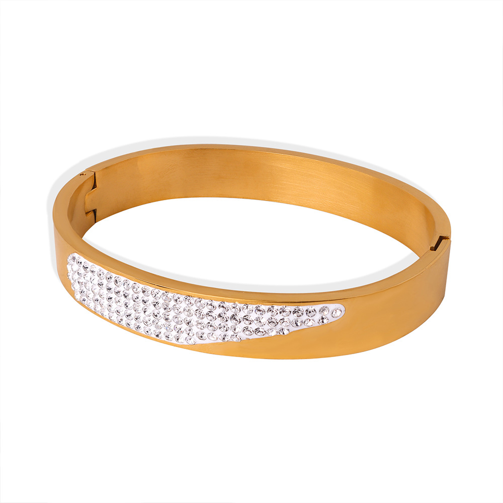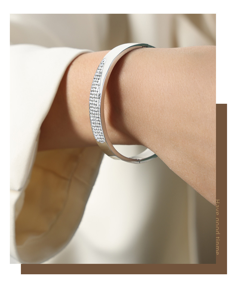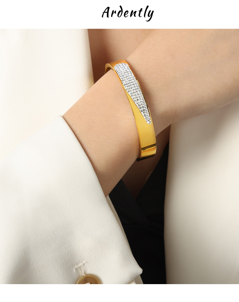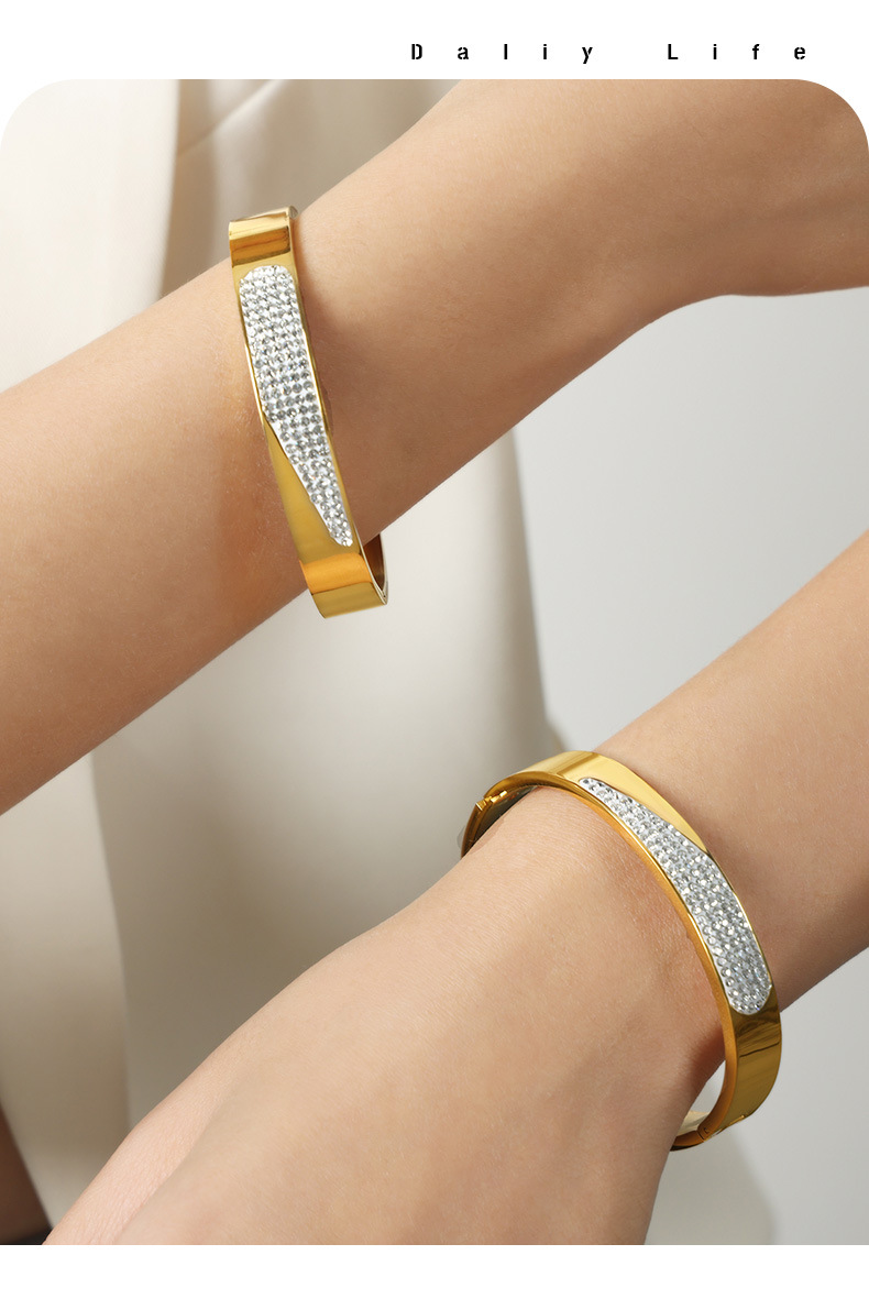 欧美新款高级感轻奢时尚小众设计个性钛钢镀金镶捷克钻手镯饰品女