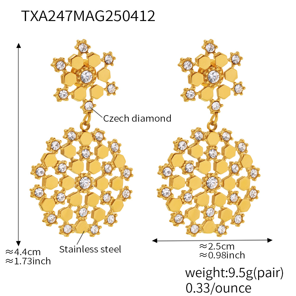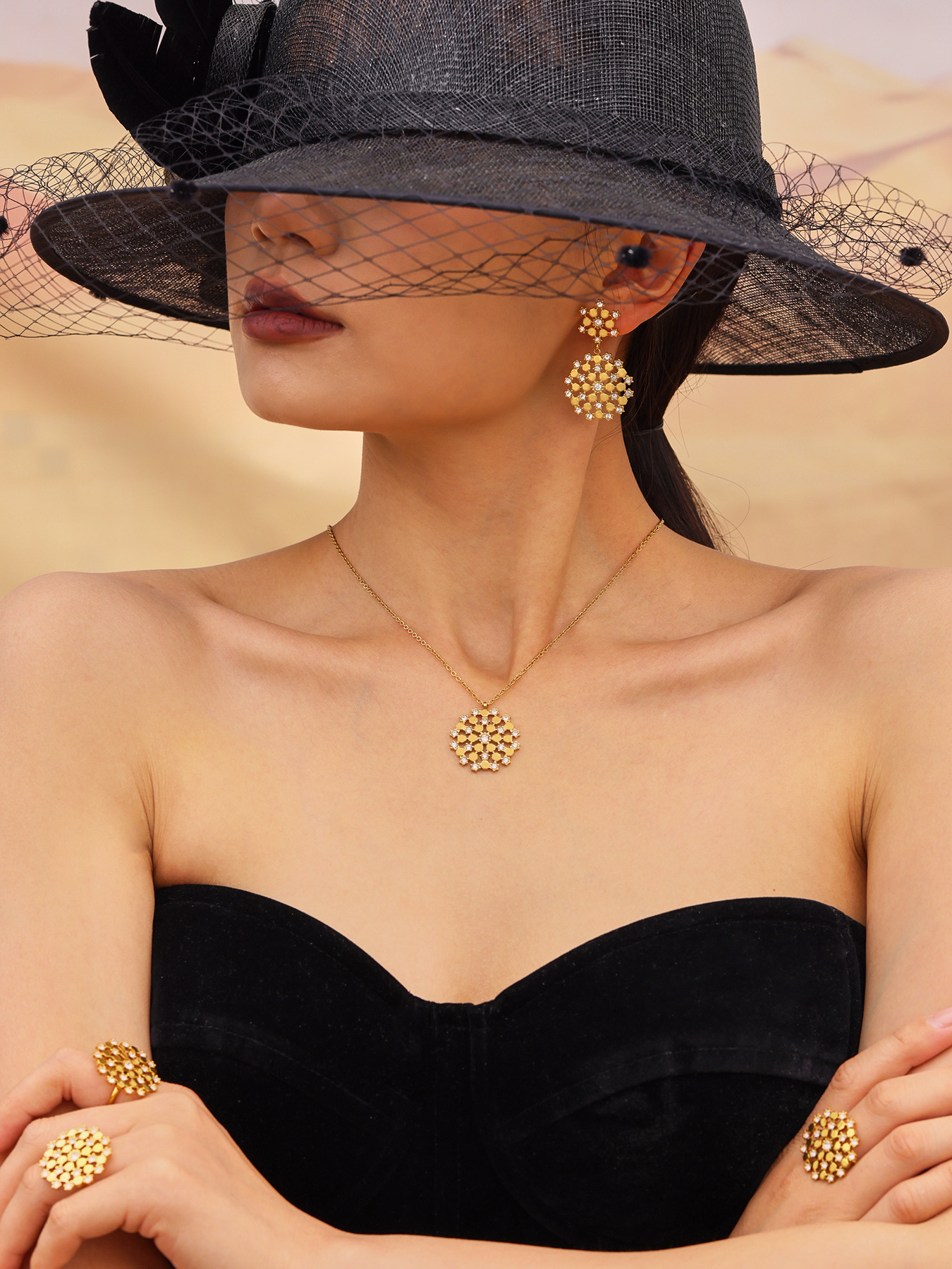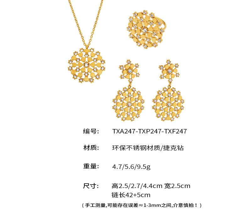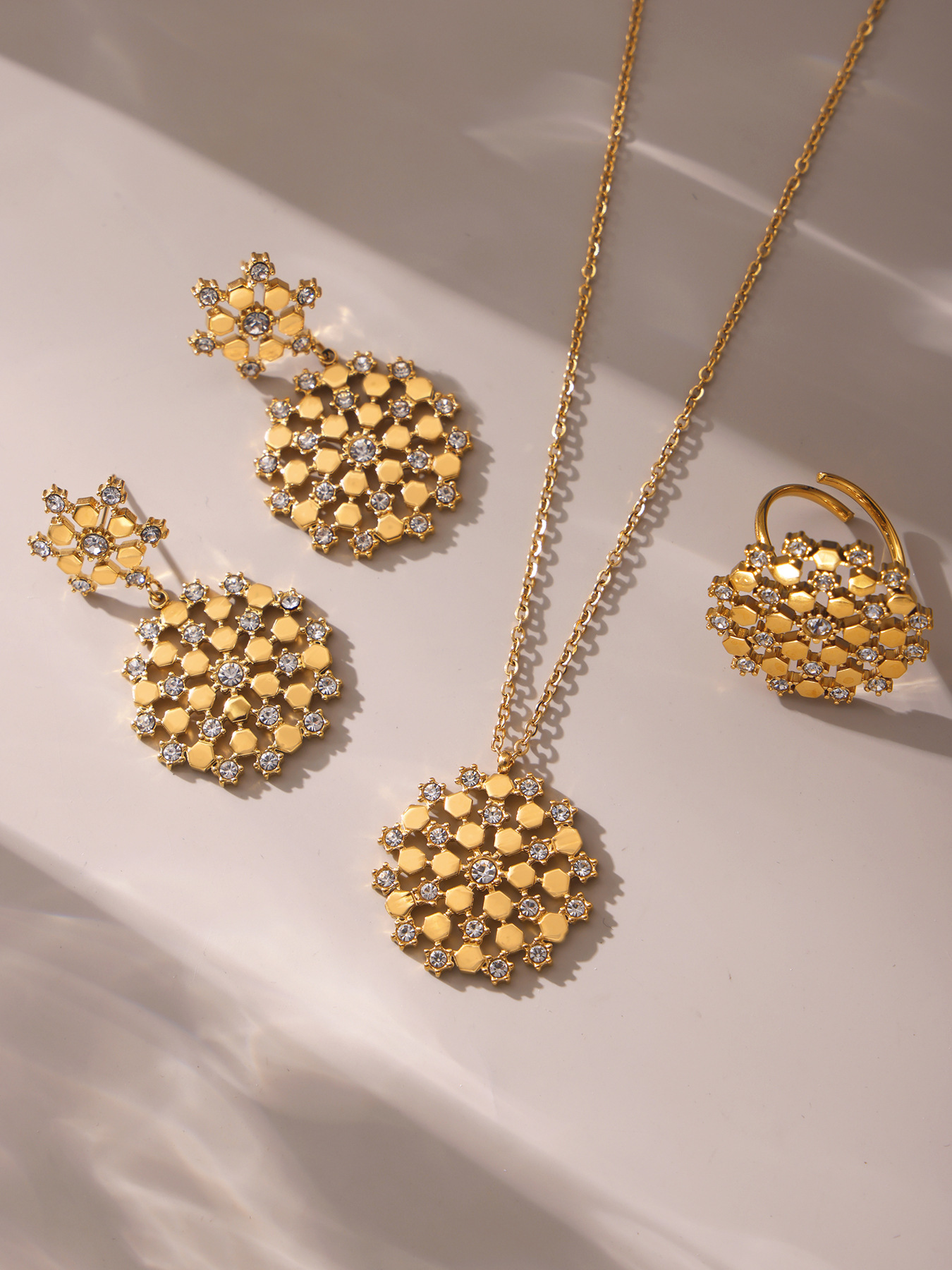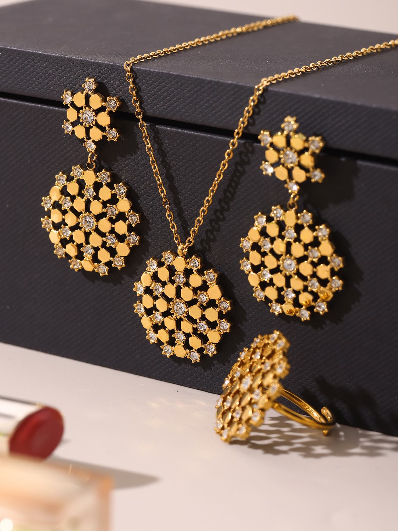 谜丽 不锈钢雪花捷克水钻超闪耳钉戒指项链套装18K真金不掉色