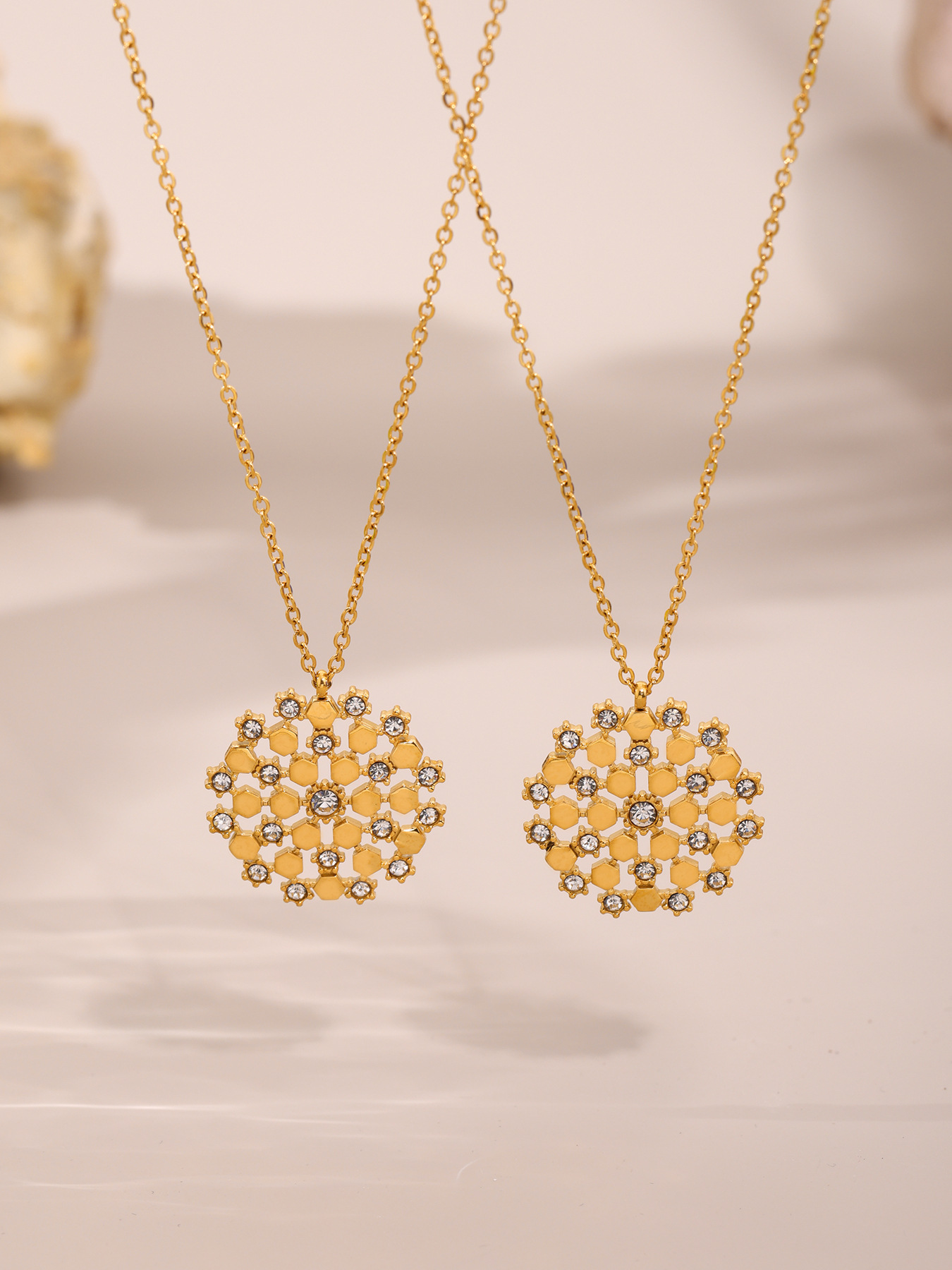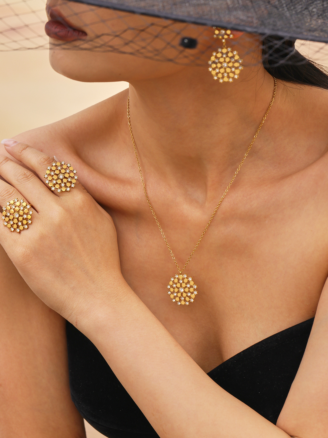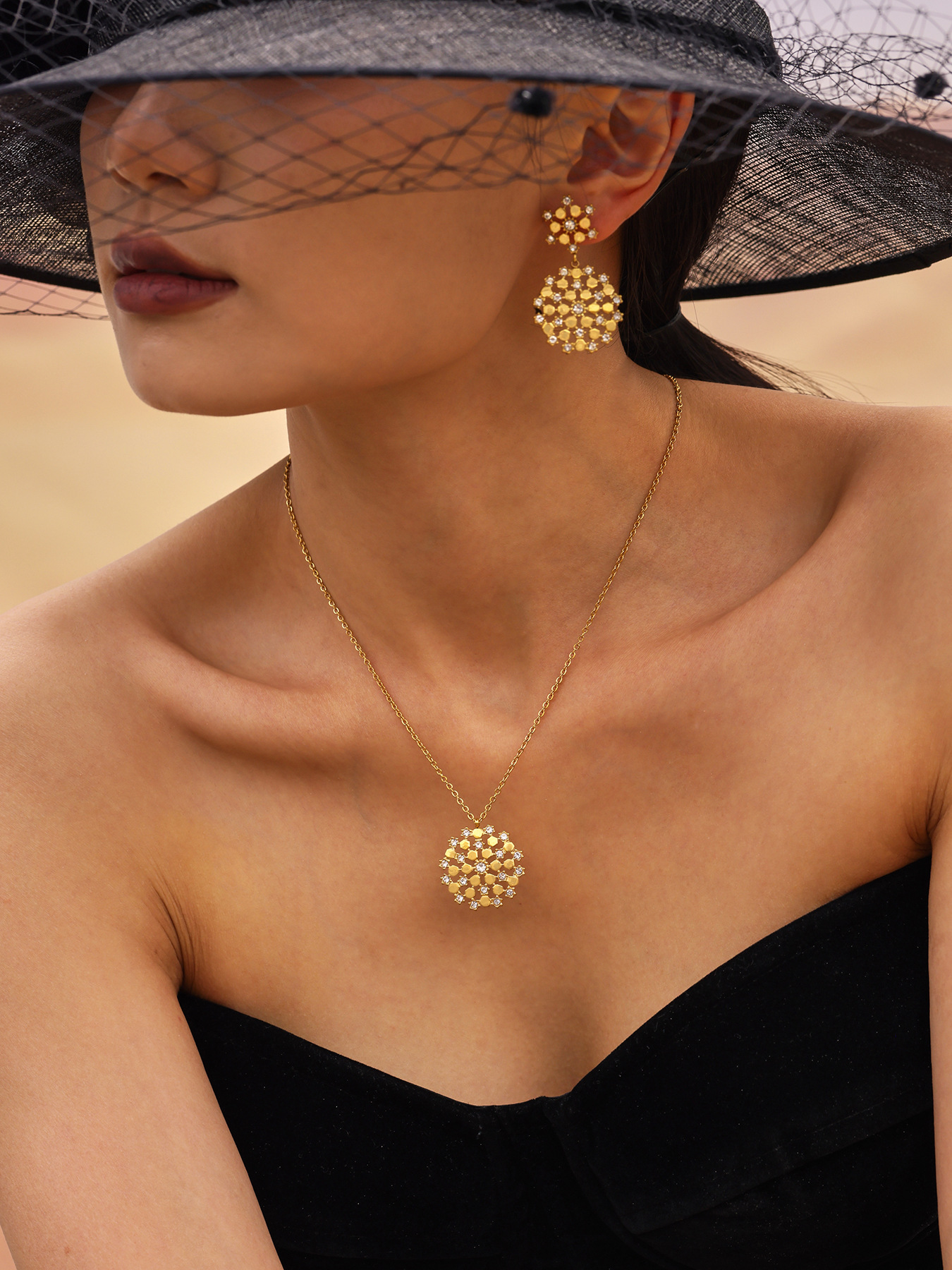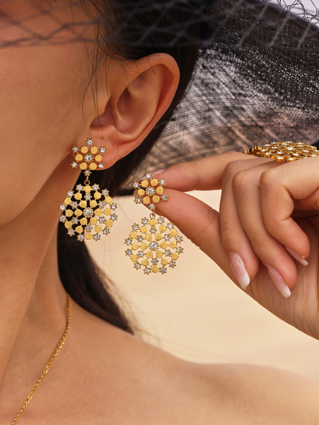 谜丽 不锈钢雪花捷克水钻超闪耳钉戒指项链套装18K真金不掉色