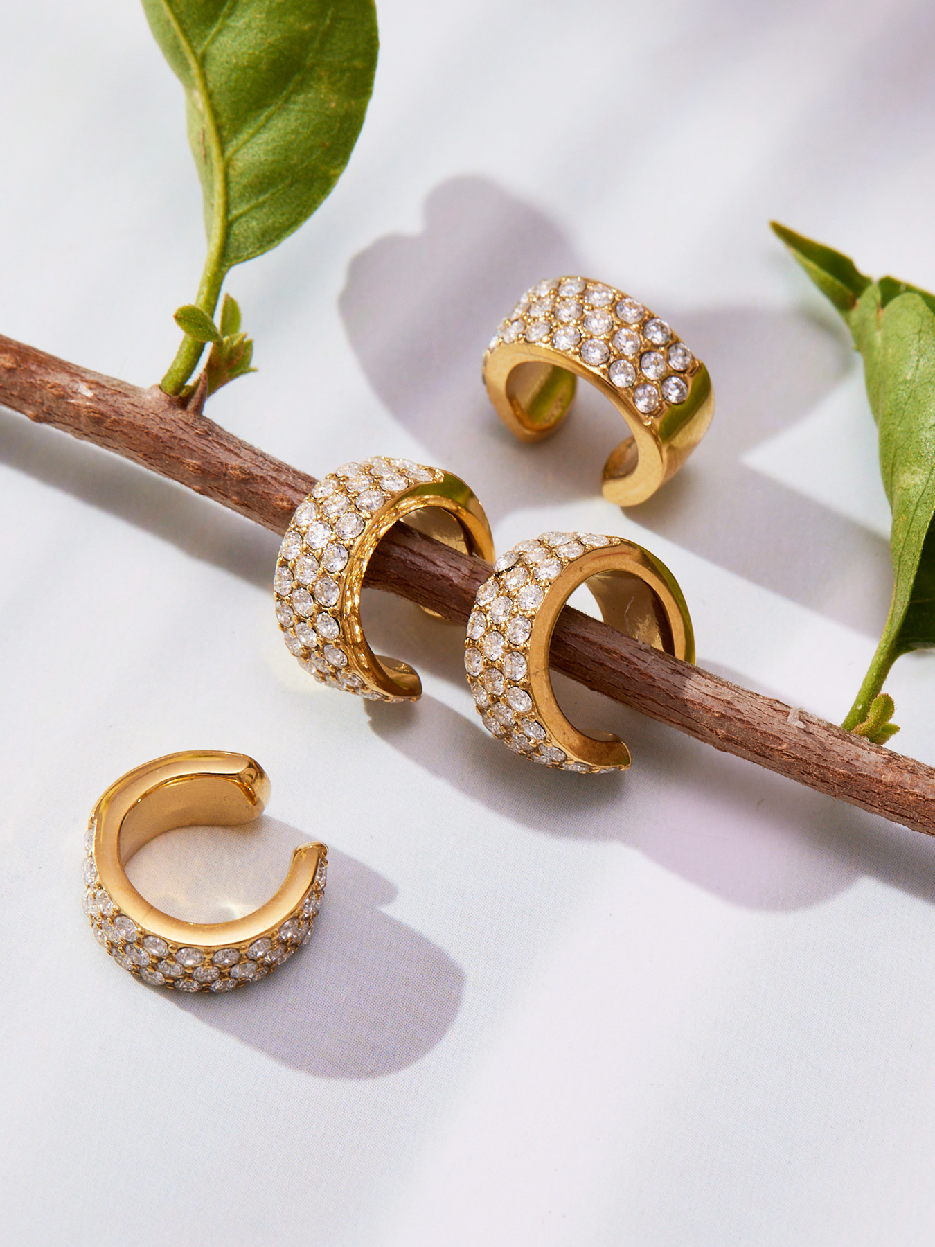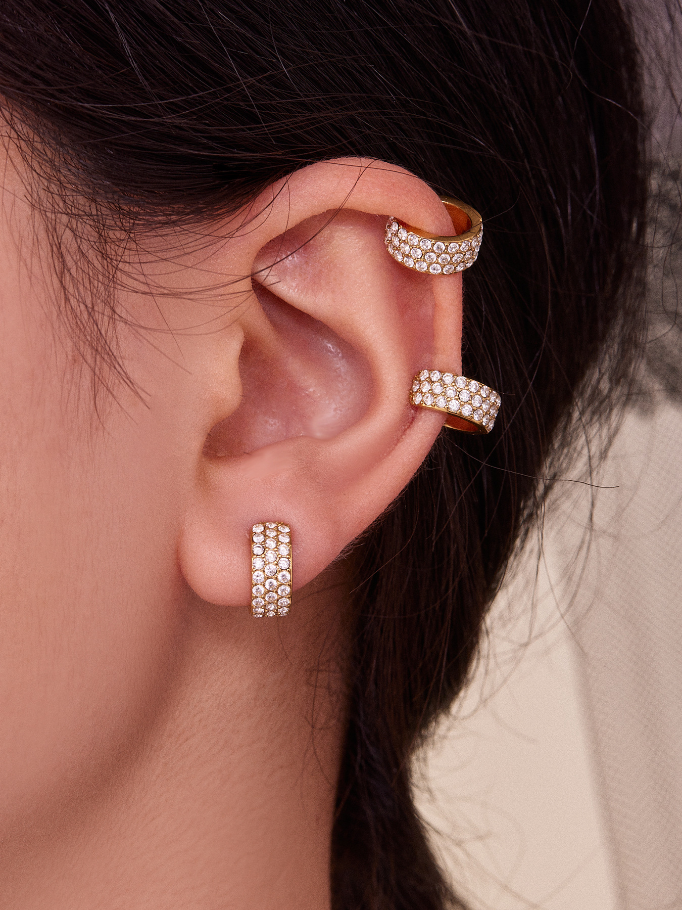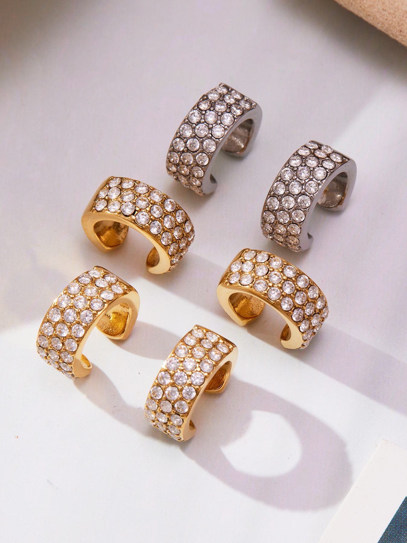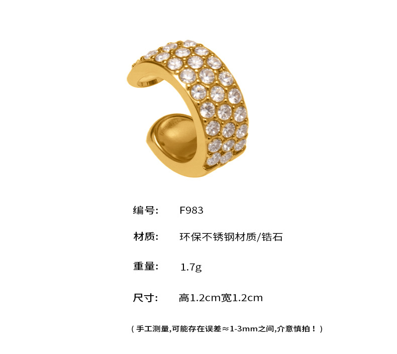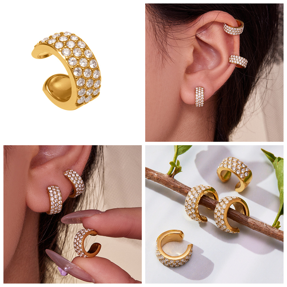 谜丽 超闪5A锆石C形不锈钢耳夹 镀18k真金跨境简约百搭耳饰不掉色