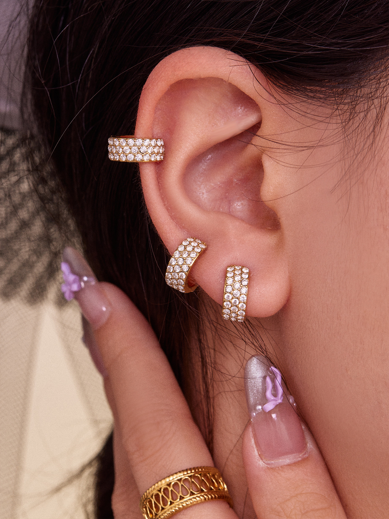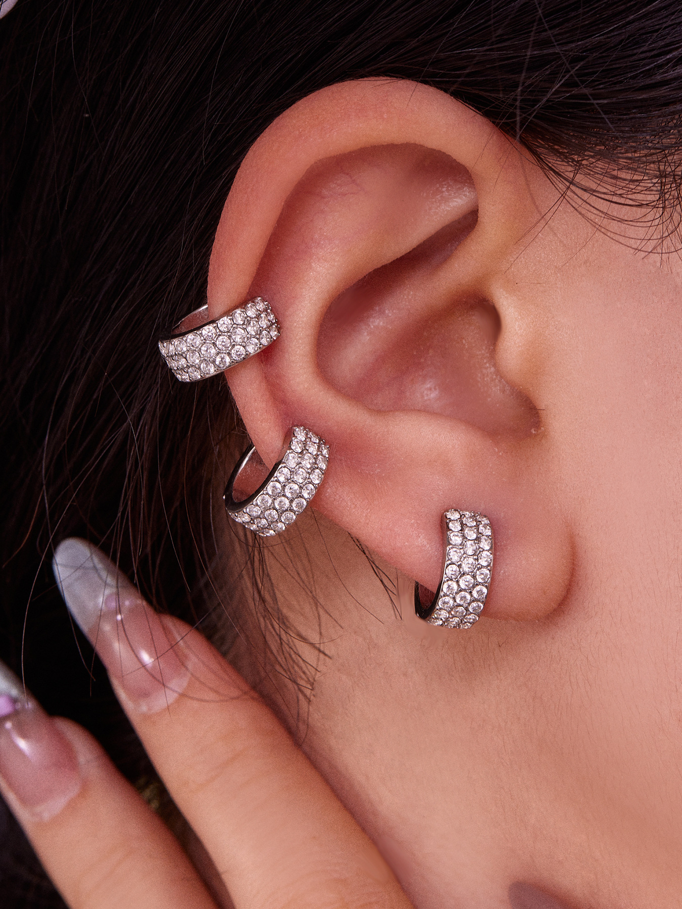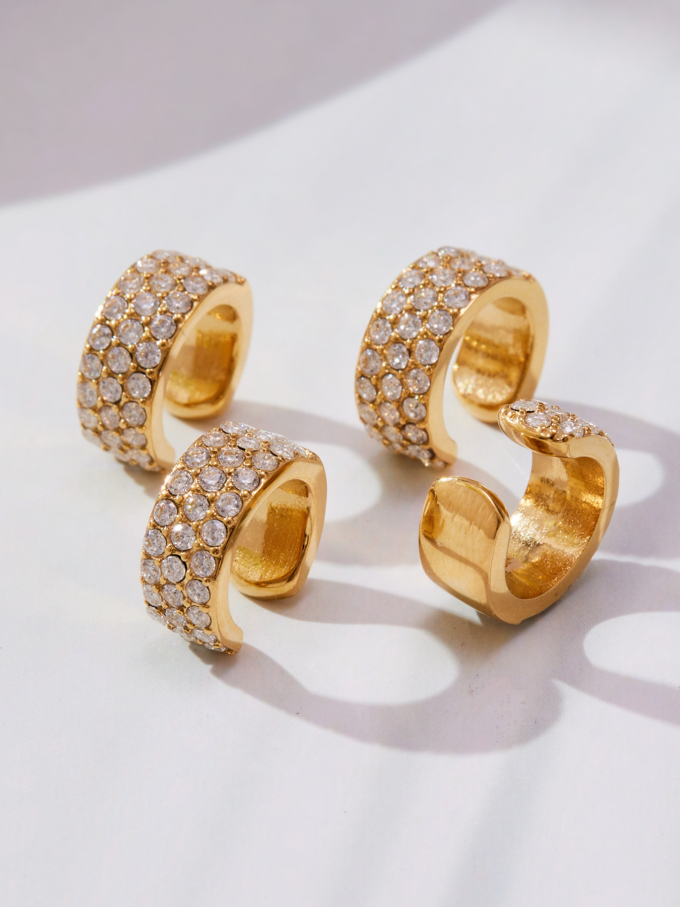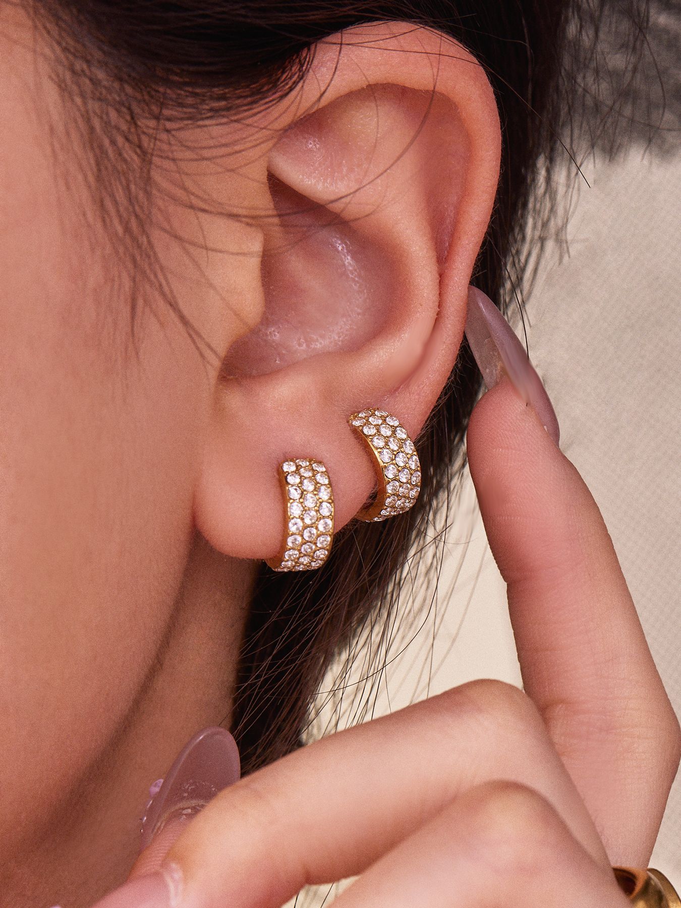 谜丽 超闪5A锆石C形不锈钢耳夹 镀18k真金跨境简约百搭耳饰不掉色
